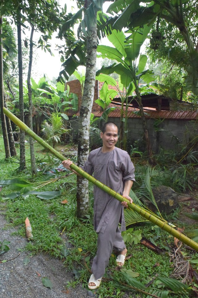 Thật vậy, chỉ có những con người dám từ bỏ tất cả những thứ vui thú của thế tục, sống cuộc đời thanh đạm, không vướng mắc mới có được những tiếng cười hồn nhiên như vậy. Mệt mà không thấy mệt, làm việc vất vả nhưng vẫn vui tươi, bởi các Thầy, các chú hiểu được rằng lao động chấp tác cũng chính là tu tập, là chuyển hóa thân tâm, là phụng sự, là hoằng pháp. Mọi lo lắng, ưu tư cho những hoạch định của viễn vọng tương lai xa xôi đều không có mặt nơi các thầy, các chú. Vì tất cả đều ý thức được rằng hạnh phúc không phải là một cái đích cho ta tìm tới, mà tất cả những điều đang xảy ra trong giờ phút hiện tại, tất cả những thứ ta đang làm trong phút giây hiện tại đều là những biểu hiện của hạnh phúc và đều có thể chế tác thành hạnh phúc. Thứ hạnh phúc này tuy đơn sơ, giản dị nhưng nó lại trở thành thiên thu, bất tận và không mang dáng dấp, mầm mống của khổ đau.