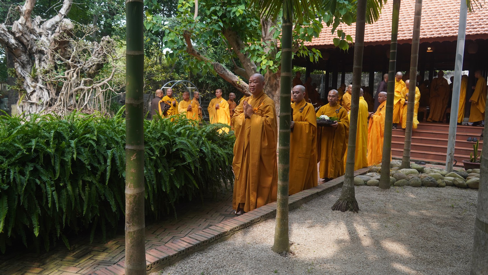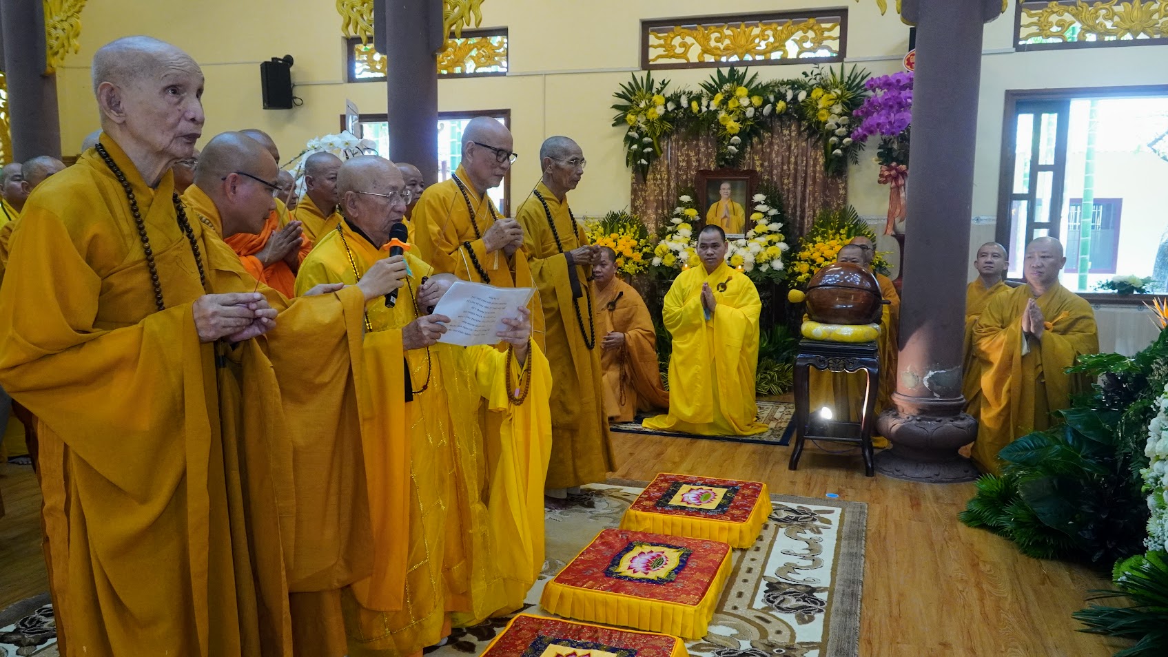 Sau Nghi thức dâng hương tưởng niệm, BTC cung thỉnh Chư Tôn đức về Ngũ quán đường. Đại diện Môn hạ, Thượng toạ Trưởng tử Thích Thiện Thuận dâng lời tác bạch về những lời dạy mộc mạc, chân tình của Ân sư. Đây chính là kim chỉ nam cho các thế hệ Đệ tử mai sau của Viện Chuyên Tu trên con đường tu nhân học Phật.