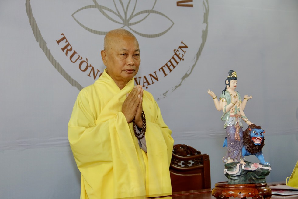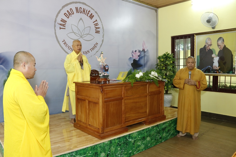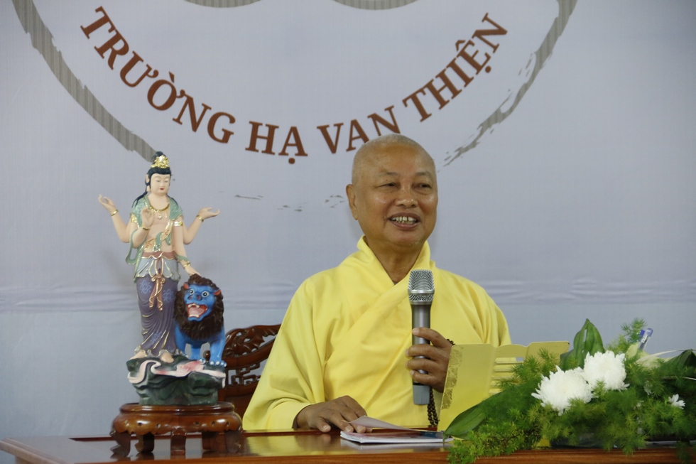 Sáng 19/06/2022, Hòa thượng Thích Phước Cẩn – Phó Viện trưởng Viện Nghiên cứu Phật học Việt Nam, Giám đốc Trung tâm Phiên dịch Hán Nôm Huệ Quang, trụ trì tổ đình Phước Hậu tỉnh Vĩnh Long đã quang lâm hạ trường chùa Vạn Thiện, có buổi nói chuyện thân mật với chư tôn đức hành giả an cư về ý nghĩa An cư kiết hạ và phương pháp trì danh niệm Phật.