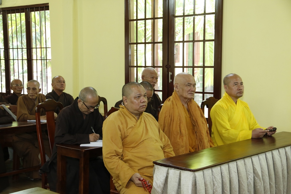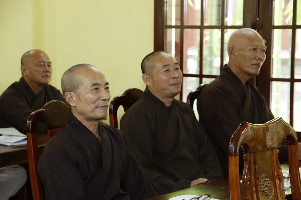 Trong buổi nói chuyện, Hòa thượng cũng kể về gương hạnh tu học của Tổ sư Khánh Anh (khai sơn Tổ đình Phước Hậu – huyện Trà Ôn, tỉnh Vĩnh Long) là một bậc thạch trụ của Phật giáo Việt Nam thời kỳ chấn hưng Phật giáo vào thế kỷ XIX. Tổ Khánh Anh trên tay thường mang một tràng hạt, những người đến chùa sinh hoạt, Tổ thường khuyên người niệm hồng danh Phật A Di Đà. Trong lúc bữa củi, quét lá, gánh nước… Ngài cũng khuyên người nhớ niệm Phật. Niệm hồng danh Phật là miệng niệm, ý để ý đến câu niệm Phật không có ý bung lung, nghĩ nhớ đến cái khác. Niệm như vậy gọi là nhất tâm, bất loạn. Phương pháp niệm Phật là phương pháp phổ thông người bình dân, người trí thức đều có thể áp dụng được.