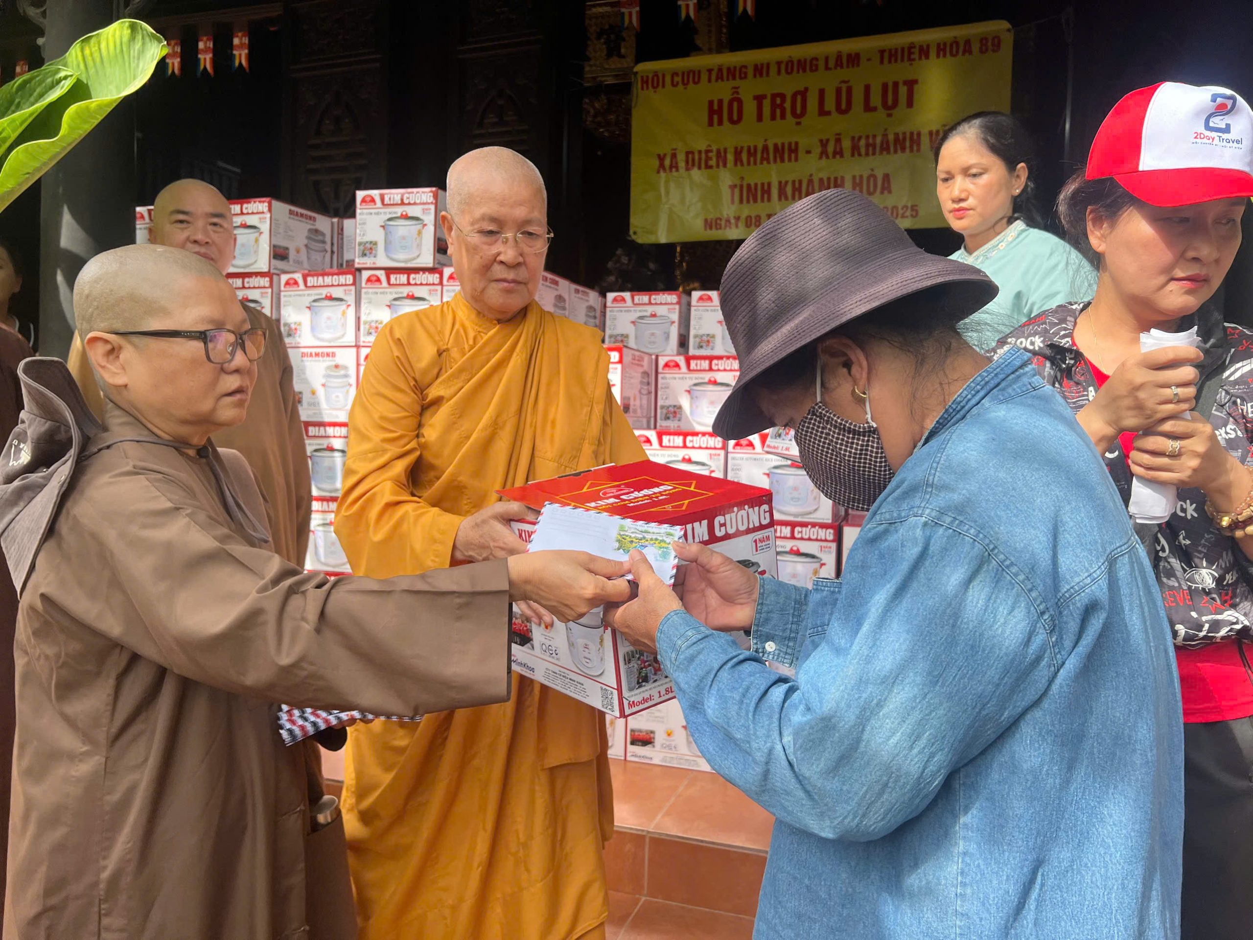 Ngày 08/12/2025, đoàn đã đặt chân đến những nơi còn đậm dấu vết của cơn thịnh nộ thiên nhiên. Với sự trợ duyên của Thượng tọa Thích Huệ Giáo, Thượng tọa Thích Tâm Phước, Thượng tọa Thích Tâm Hoà, Thượng tọa Thích Tâm Trụ và các Tình nguyện viên, những món quà đã được trao đi như những hạt giống lành gieo vào lòng người.
