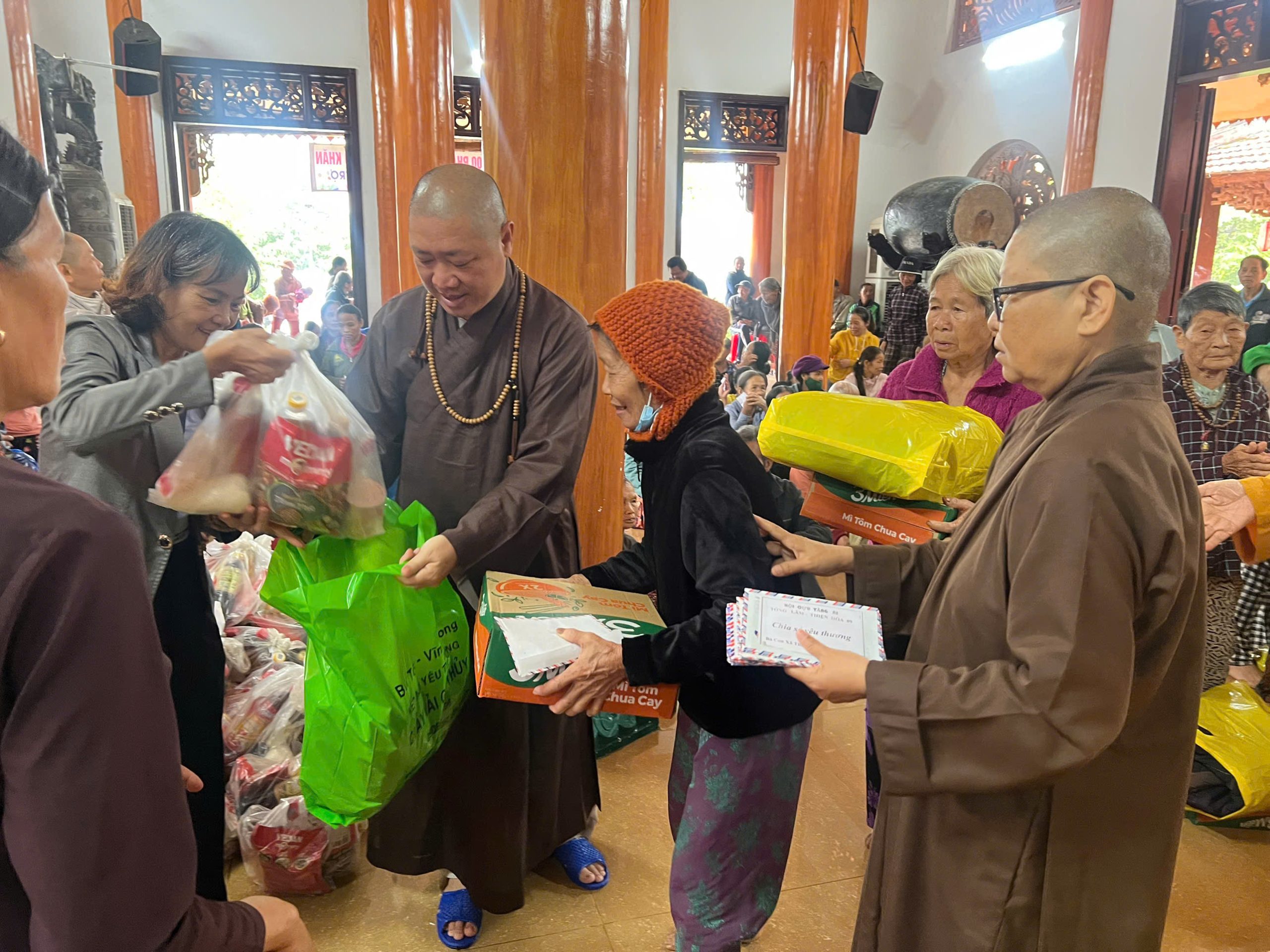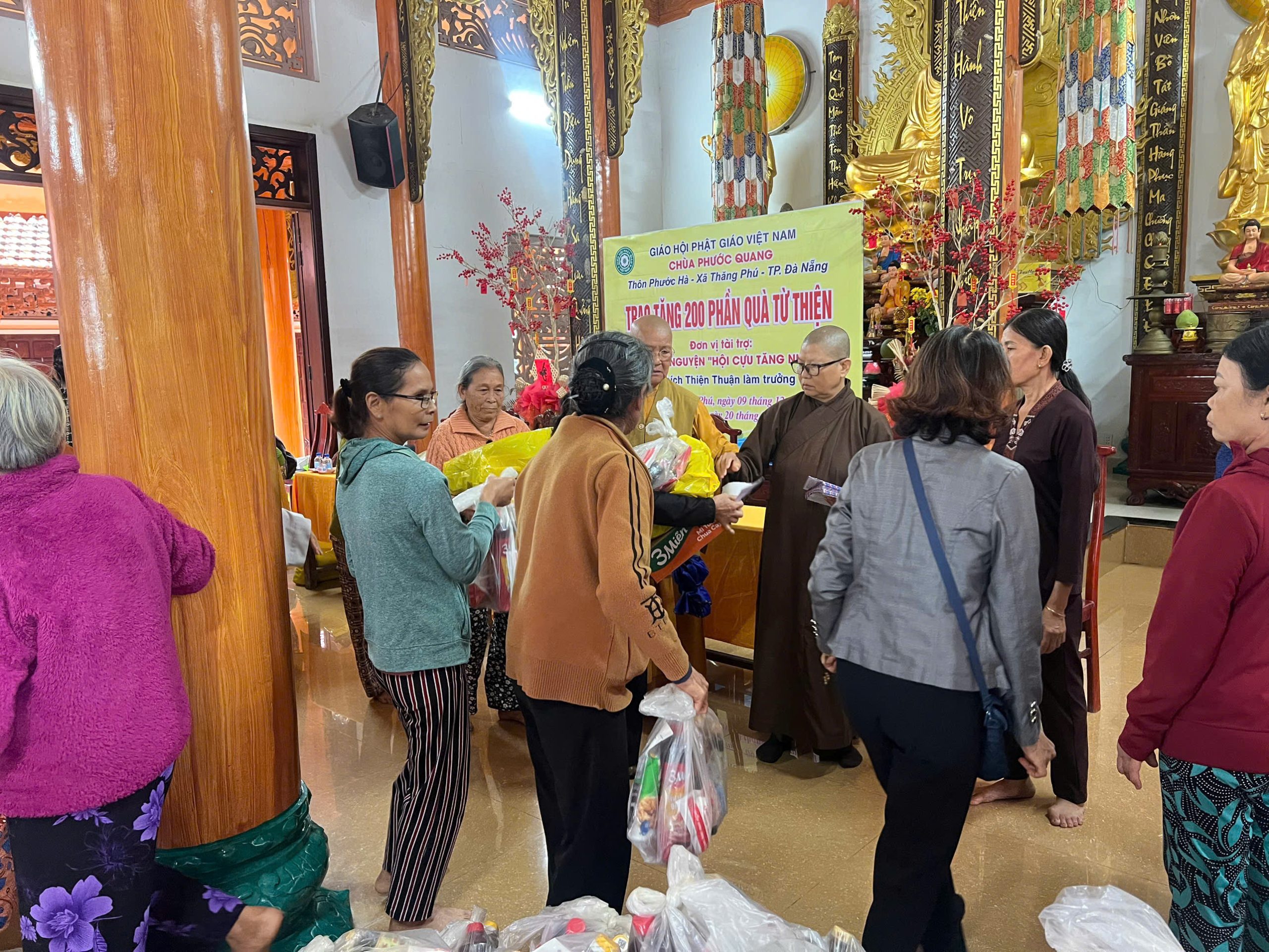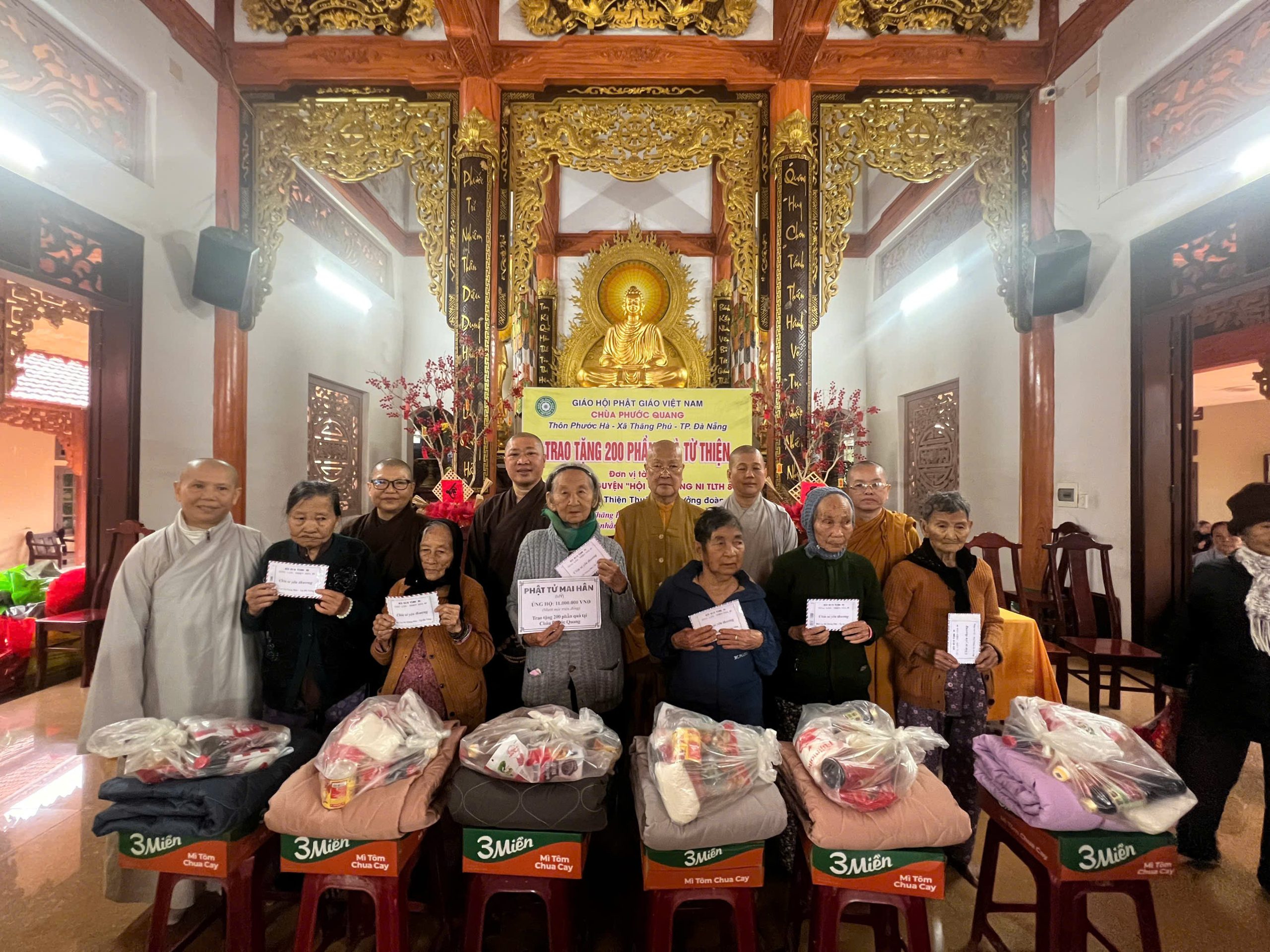 Ngày 09 – 10/12/2025, tiếp nối bước chân từ bi, Đoàn đã đến với Chùa Phước Quang (xã Thăng Phú, TP. Đà Nẵng) của Ni sư Diệu Thiện (A), mang theo sự quan tâm sâu sắc của chư Tôn đức để trao tặng 200 phần quà cho bà con khó khăn. Nhờ sự tiếp sức kịp thời từ Ni trưởng Phấn Liên (Tịnh xá Ngọc Phước), mỗi phần quà là một sự chu toàn.