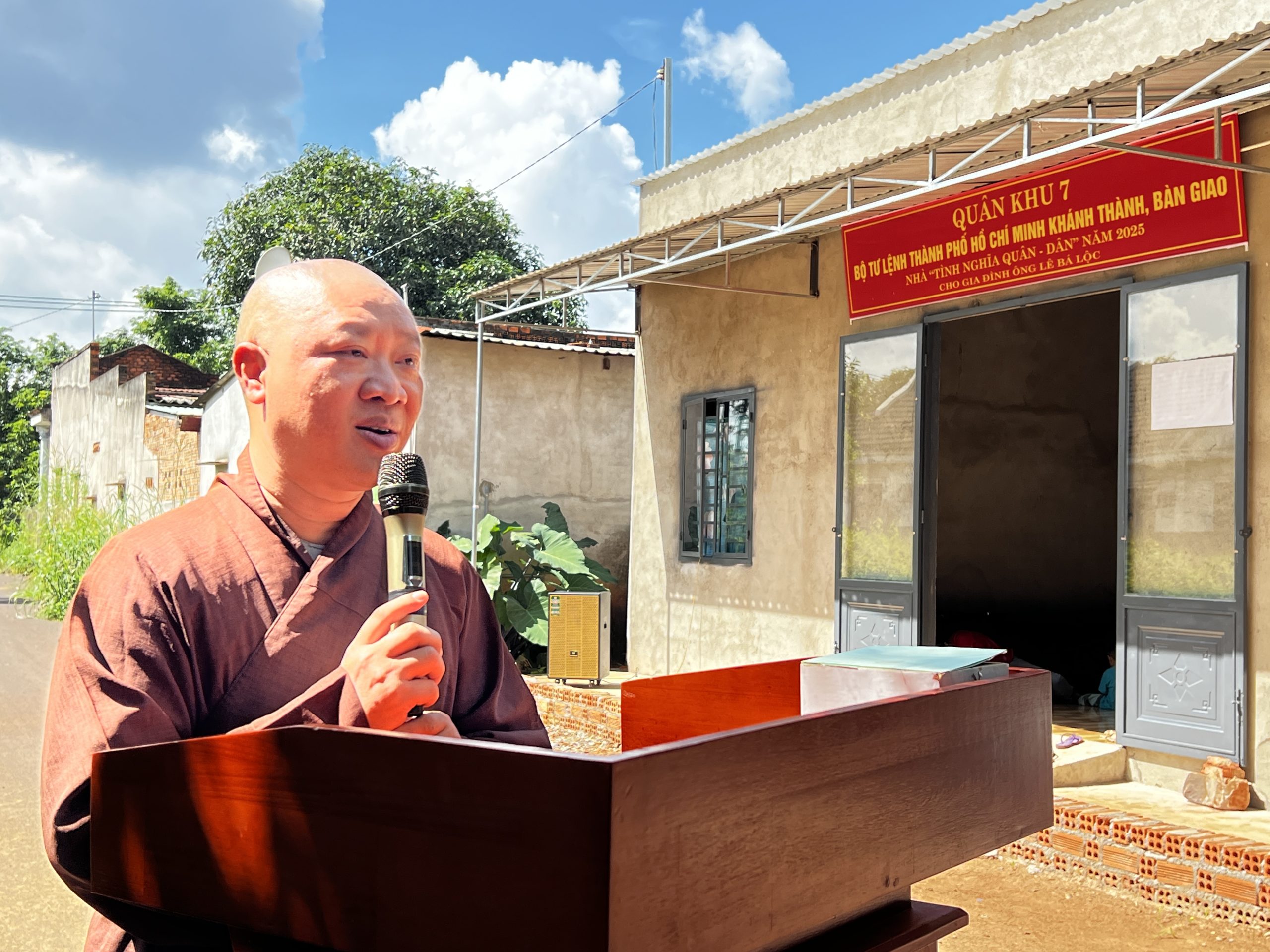 Thượng tọa Thích Thiện Thuận đã gửi lời động viên đến các quân nhân, đồng thời bày tỏ lòng tri ân sâu sắc đến những người lính đã hy sinh trong thời chiến và cống hiến trong thời bình để đất nước được bình yên. Thượng tọa cũng cảm ơn các mạnh thường quân đã ủng hộ Quỹ “Nhà tình thương10K” của Viện Chuyên Tu, một nhịp cầu nối dài yêu thương giữa đạo và đời.