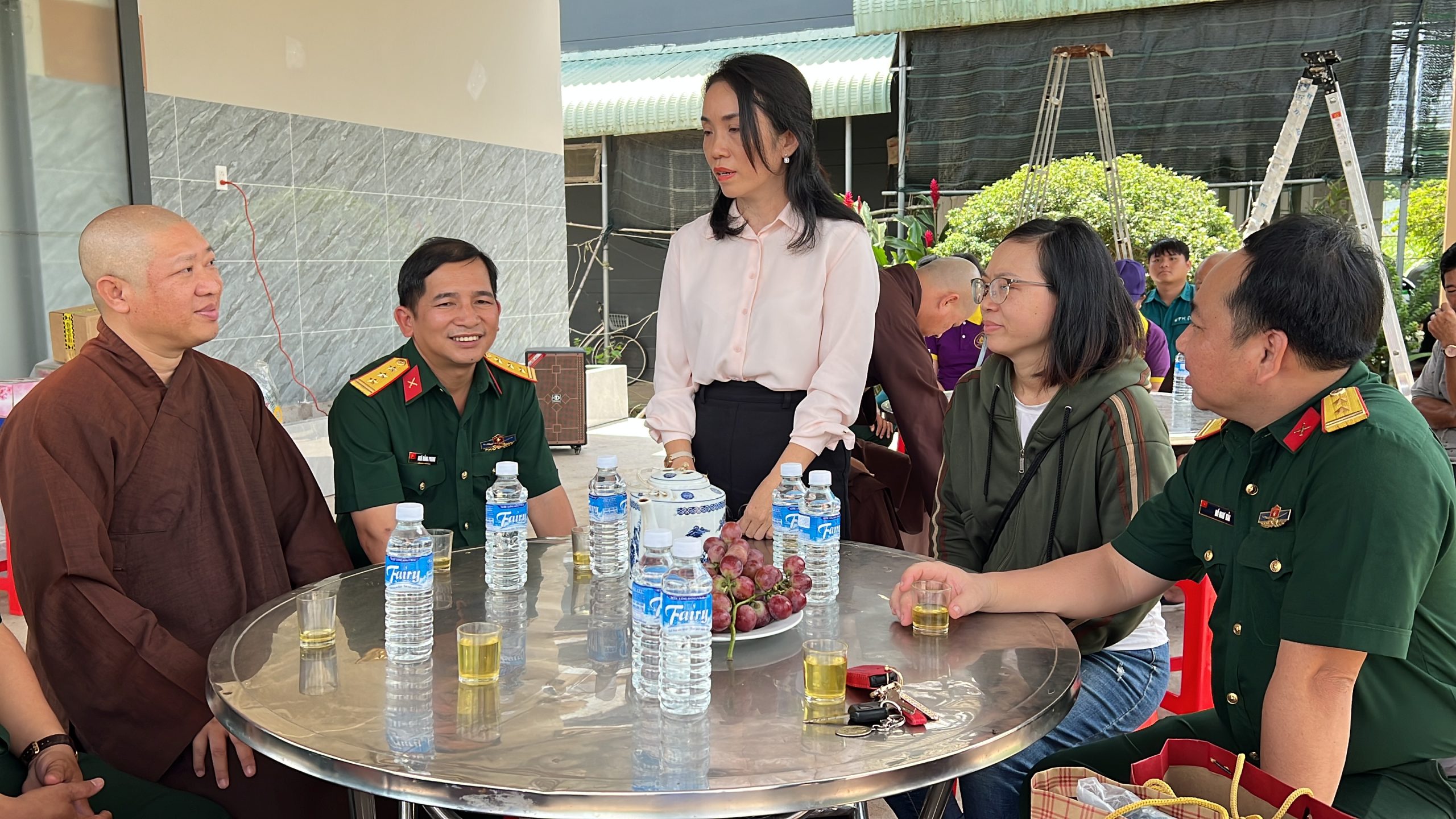 Thượng tá Ngô Hồng Phong chúc mừng hai gia đình đã có nơi ở mới khang trang, sạch đẹp. Ông mong rằng các quân nhân tiếp tục phát huy truyền thống, thực hiện tốt chủ trương của Đảng, pháp luật Nhà nước, và cùng nhân dân xây dựng quê hương ngày càng giàu đẹp.