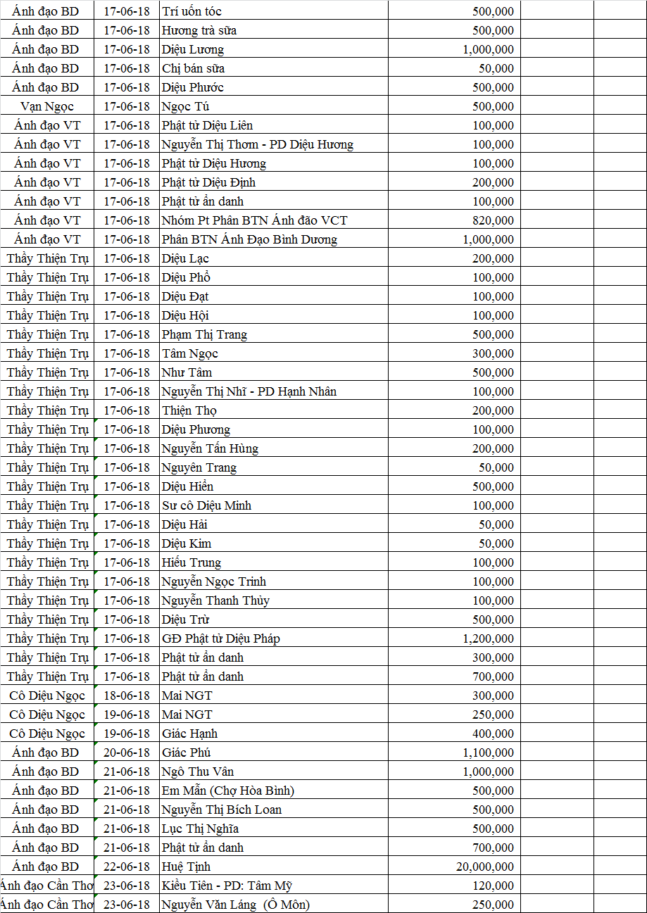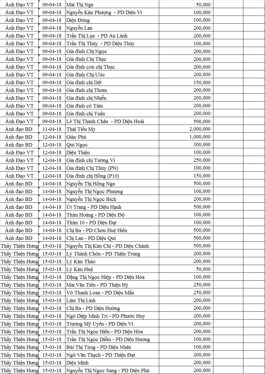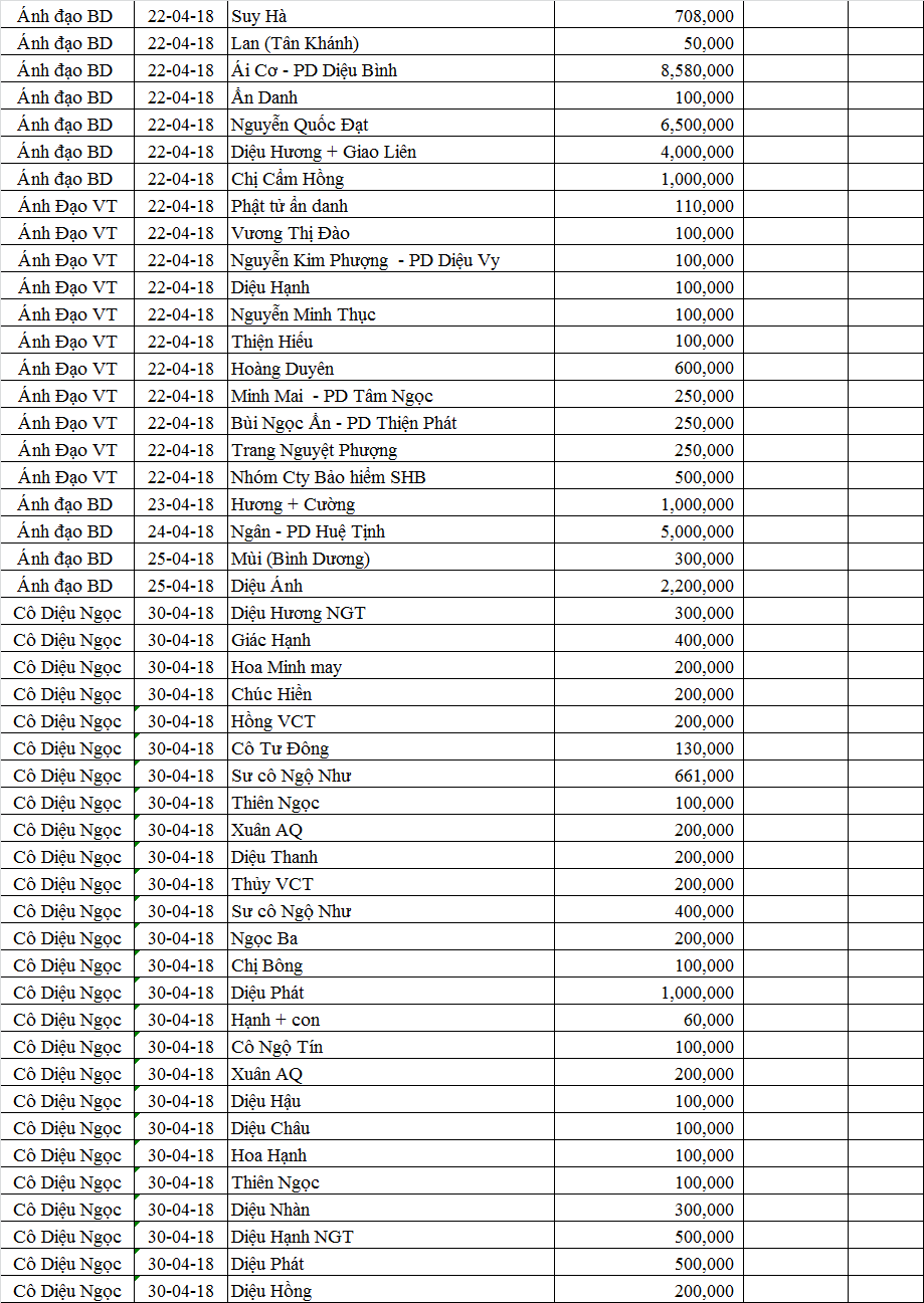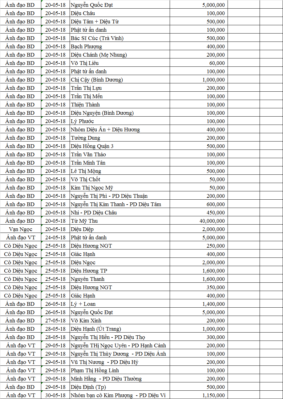 Ban Thiện nguyện Ánh Đạo Báo cáo Tài chánh Quý II – 2018