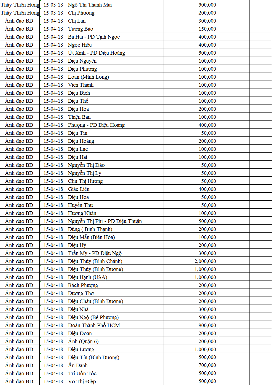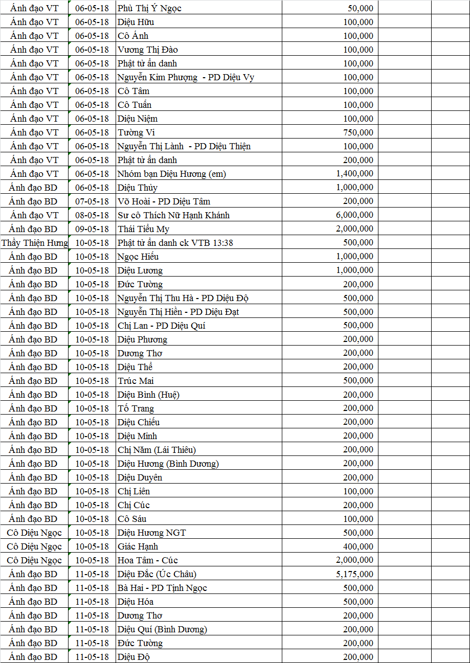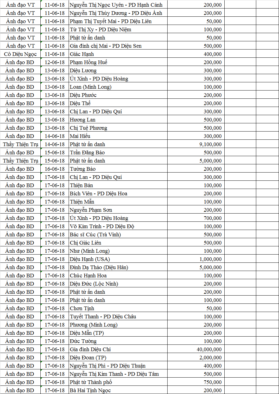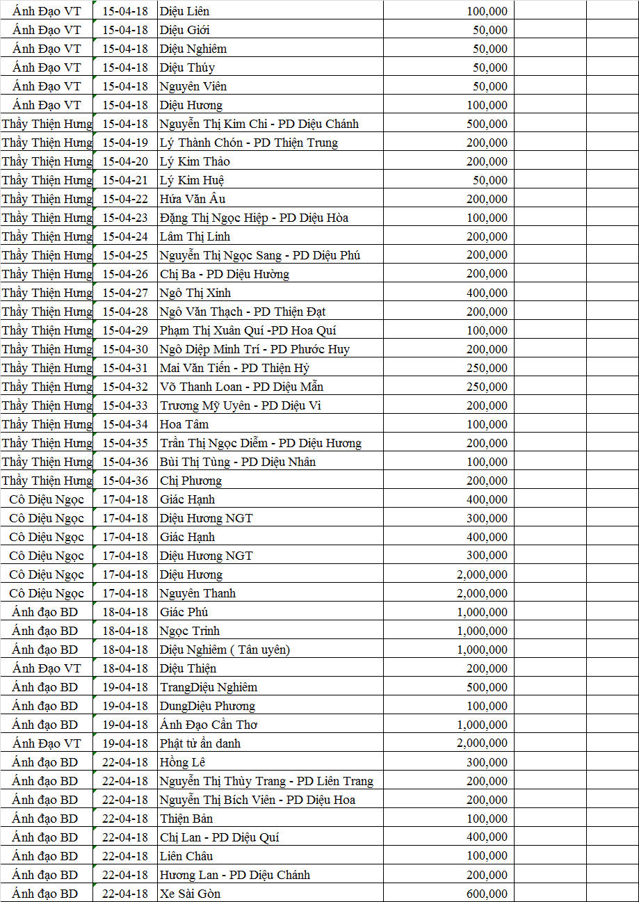 Ban Thiện nguyện Ánh Đạo Báo cáo Tài chánh Quý II – 2018