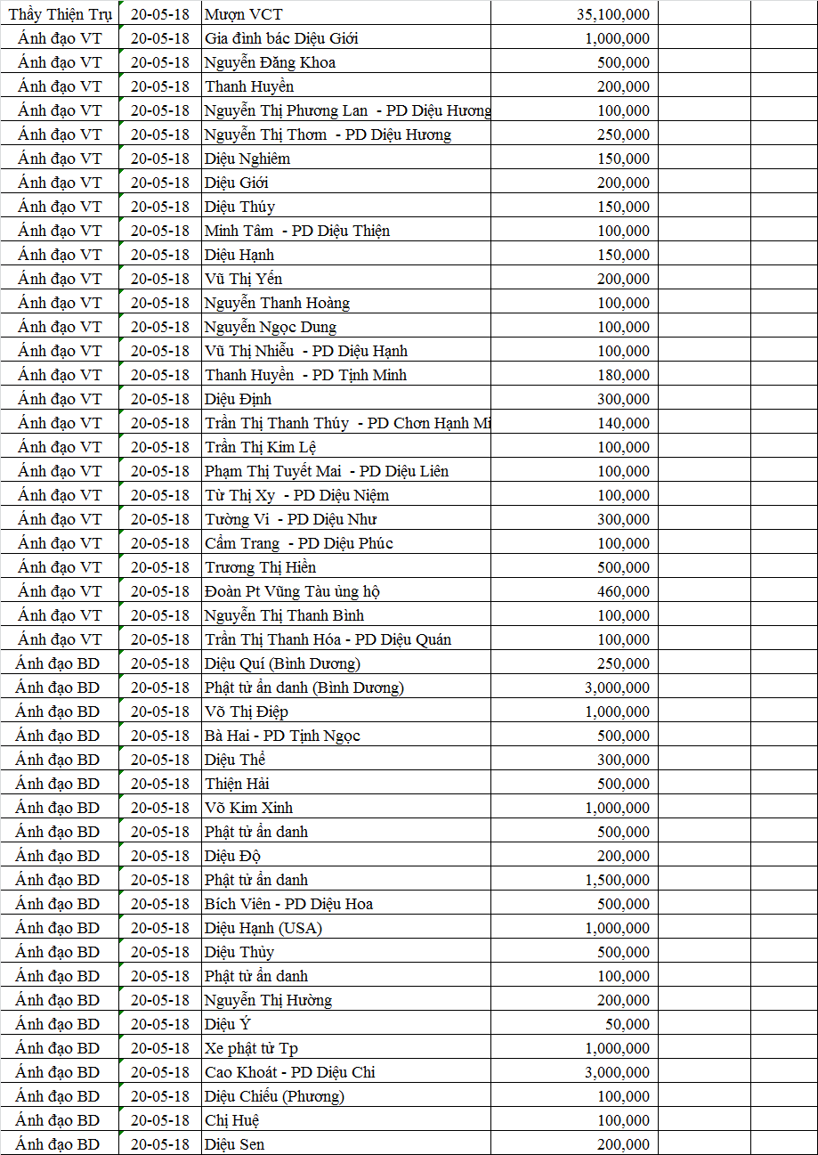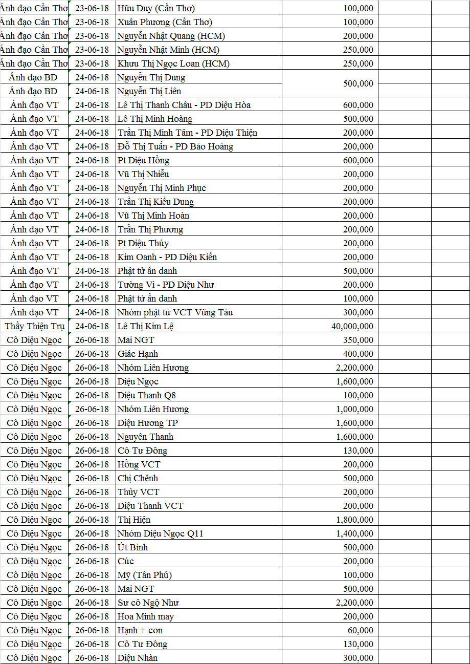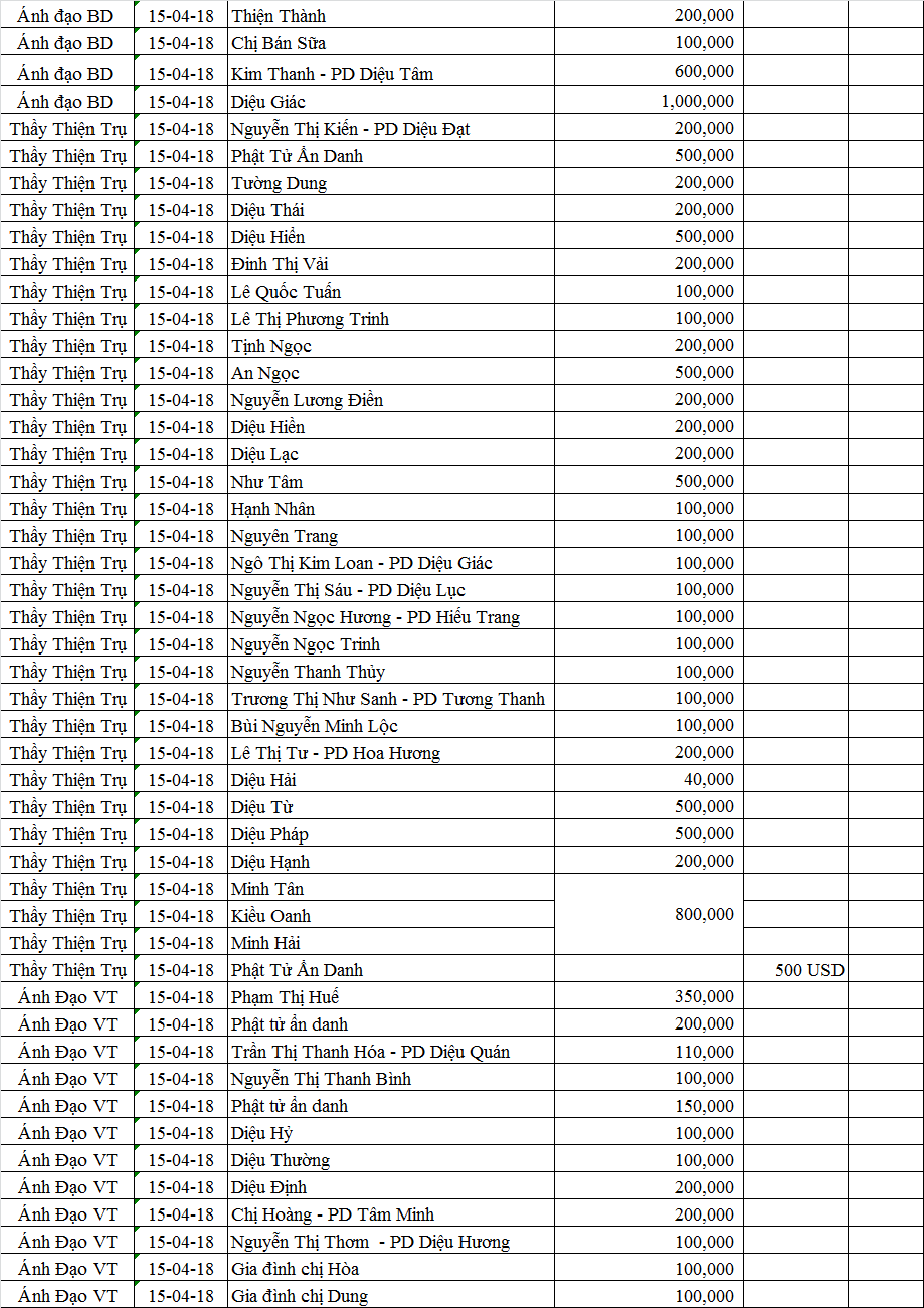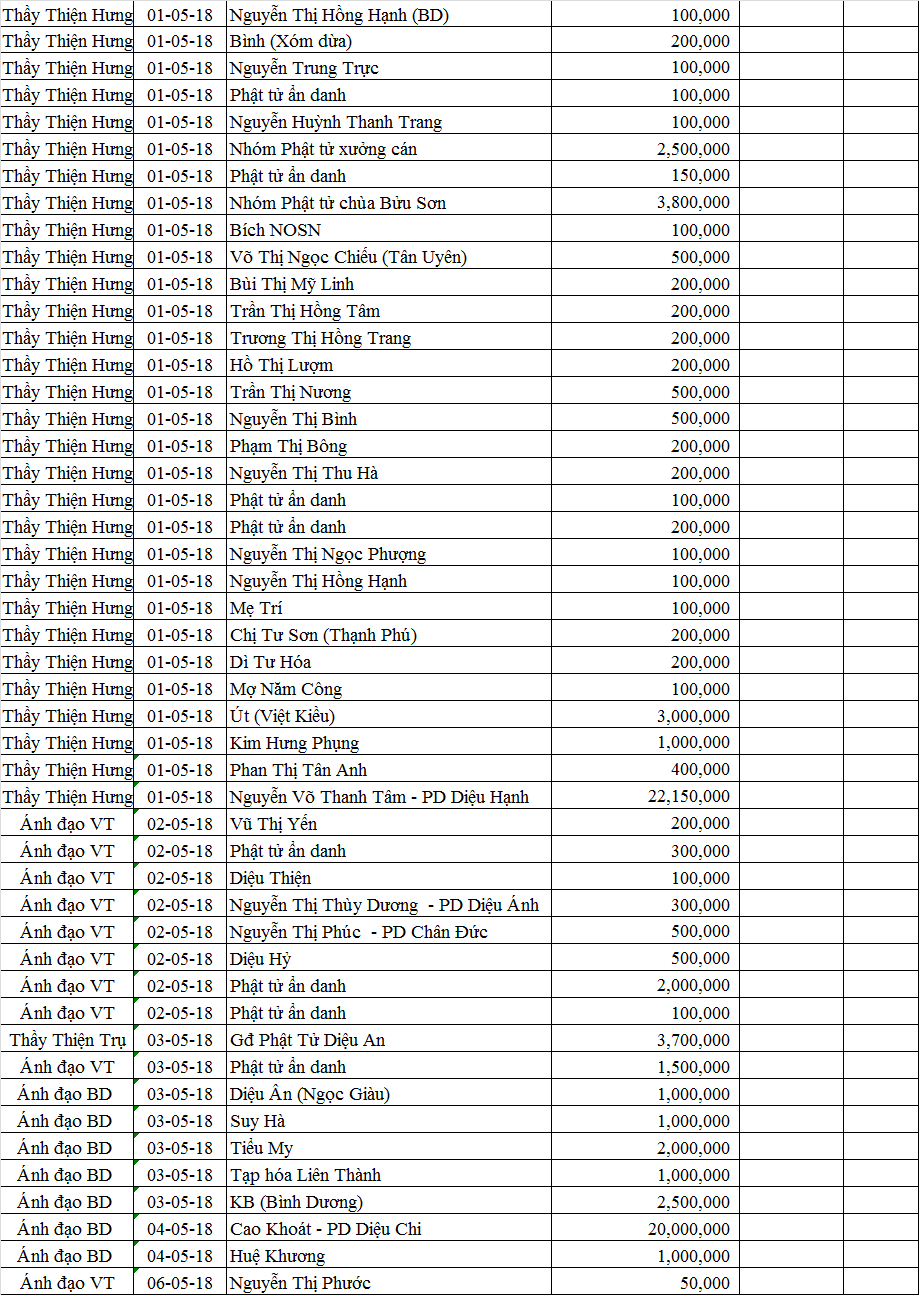 Ban Thiện nguyện Ánh Đạo Báo cáo Tài chánh Quý II – 2018