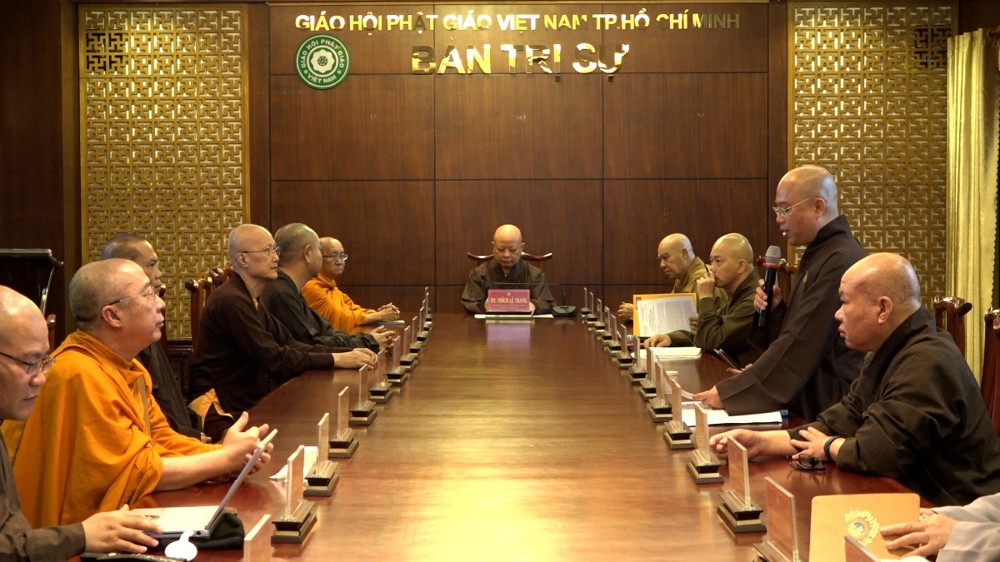 Phiên họp do Hòa thượng Thích Lệ Trang, Trưởng ban Trị sự GHPGVN TP.HCM chủ trì, cùng với sự tham dự của chư Tôn đức Phó ban, thành viên Ban Thường trực.