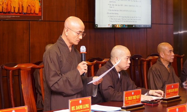 Thượng tọa Thích Thiện Quý, Phó ban kiêm Chánh Thư ký Ban Trị sự đã báo cáo và trình một số dự thảo hoạt động Phật sự trong thời gian tới của GHPGVN TP.HCM.