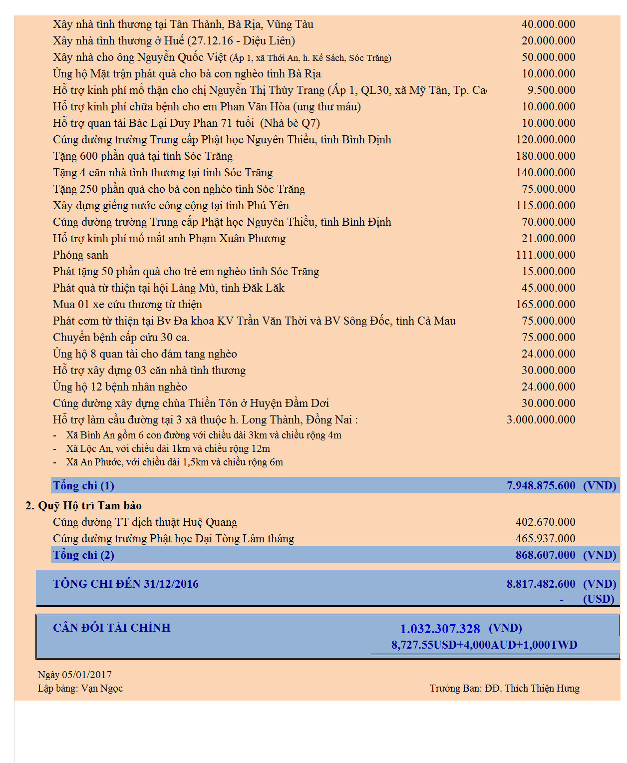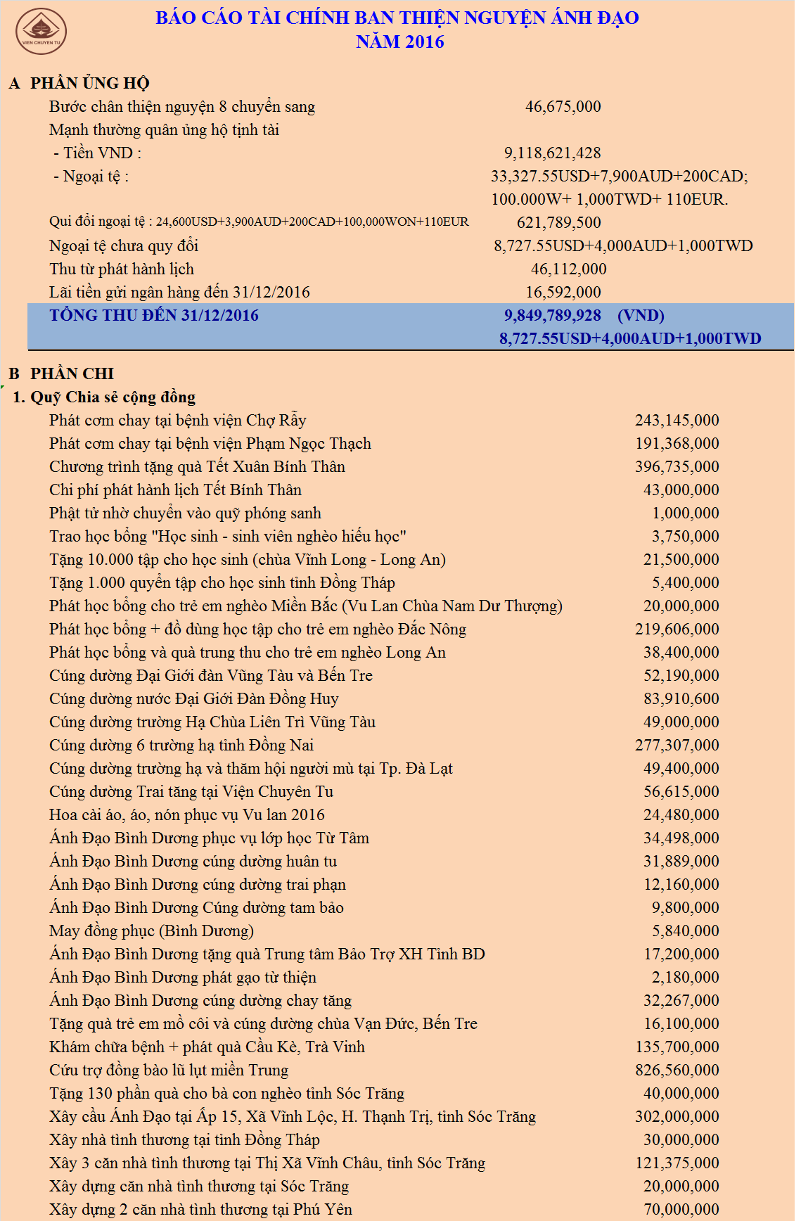 - Lời tri ân – Báo cáo tài chính Phiên chợ quê hương trong lễ Tổng kết tại Viện Chuyên Tu