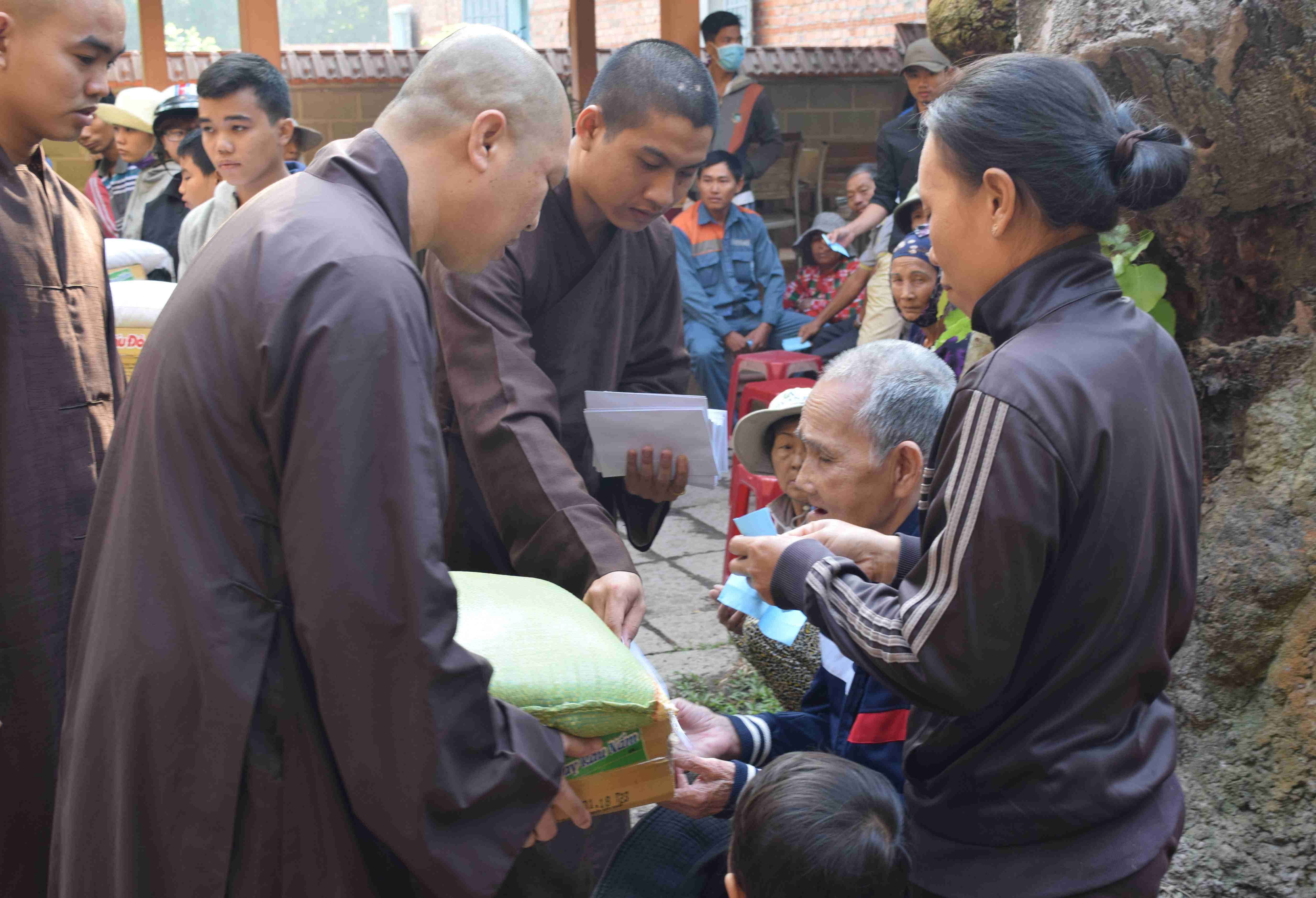 Vào cùng ngày 12.02.2018, lúc 8 giờ 00, BTN Ánh Đạo Viện Chuyên Tu do Thượng tọa Thích Thiện Thuận chủ trì, phối hợp cùng với Hội Chữ Thập Đỏ huyện Tân Thành tổ chức phát quà tết cho bà con nghèo tại khu vực làng Vạn Hạnh, 100 phần quà được trao cho bà con, mỗi phần quà trị giá 400 nghìn đồng.