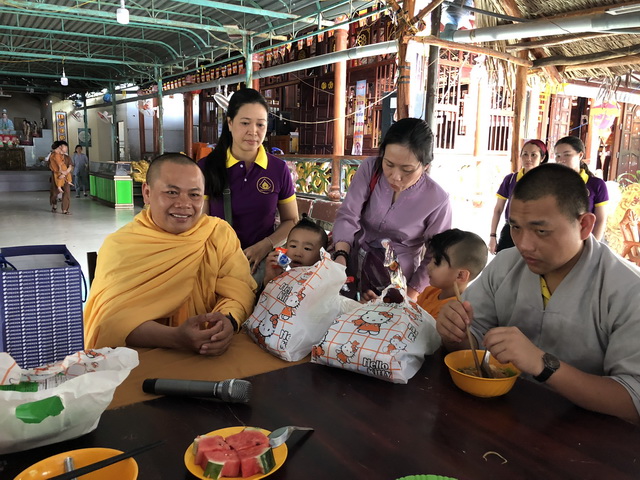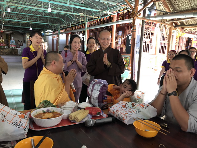 Đại đức Thích Thiện Hưng có lời chào hỏi, chia sẻ đến Ban giám đốc và các em. Đại diện các mạnh thường quân, Phật tử Thánh Khánh trao phần tịnh tài đến Ban giám đốc. Đại đức Thích Thiện Thông thay mặt BTS Thành phố Vũng Tàu, tri ân BTN Ánh Đạo và chúc tốt đẹp đến tất cả phái đoàn cùng Ban giám đốc trung tâm.