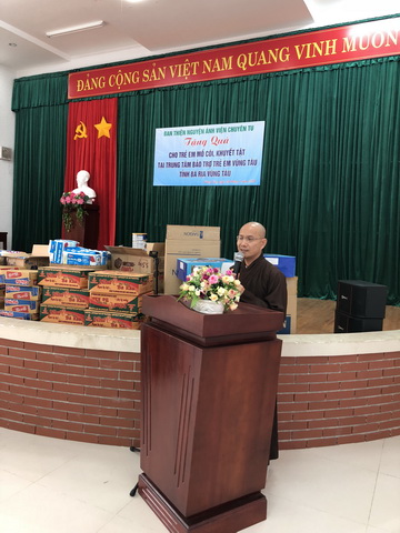 Trong buổi lễ trao quà, bà Chu Thị Thư – Giám đốc Trung Tâm, đã có lời chúc sức khỏe và cảm ơn đến Thượng Tọa trụ trì Viện Chuyên Tu và BTN Ánh Đạo đã quan tâm, chia sẻ cùng Trung Tâm trong việc chăm sóc các cháu.