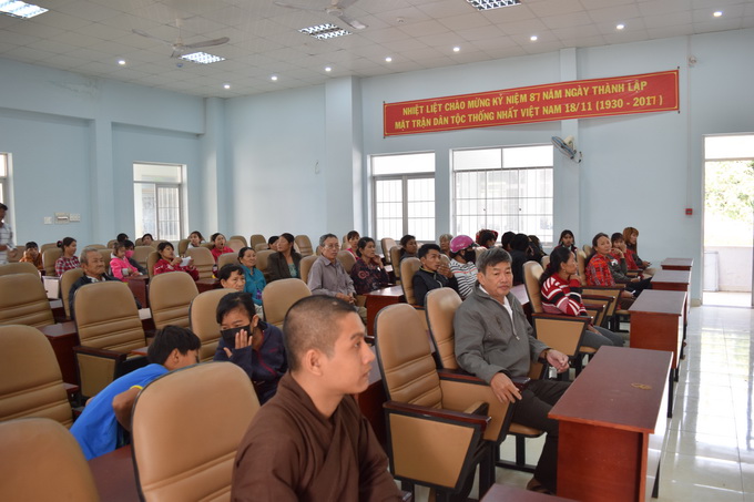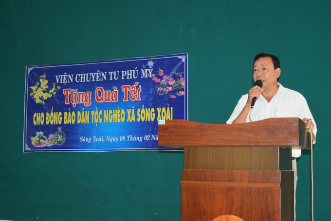 Trong buổi lễ trao quà, ông Nguyễn Văn Thơm – Phó chủ tịch UBND xã sông xoài đã có lời chúc sức khỏe và cảm ơn đến Thượng Tọa trụ trì Viện Chuyên Tu và Ban Thiện Nguyện Ánh Đạo đã quan tâm, chia sẻ đến những bà con nghèo dân tộc Ch’ro trong những ngày tháng cuối năm gần tết Nguyên Đán này.