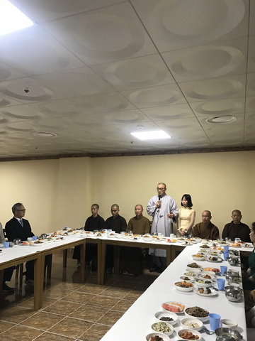Trong buổi tiệc, HT. Yu Cheong đã có lời chào mừng phái đoàn Việt Nam đã đến Hàn Quốc và tổ chức khoá tu học thành công viên mãn. Hoà thượng tán thán tinh thần bi mẫn của đoàn hoằng pháp Viện Chuyên Tu, đặc biệt lòng từ bi rộng lớn của Thượng tọa Trưởng đoàn. Hoà thượng chia sẻ đến quý Phật tử tại chùa Chánh Quang về cuộc sống tha hương của các em Phật tử Việt Nam sang Hàn. Các em gặp nhiều khó khăn mọi mặt. Hoà thượng mong rằng các vị Phật tử tại chùa giúp đỡ và chia sẻ đến cộng đồng Phật tử Việt Nam, nhất là trong các khoá tu học.