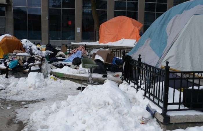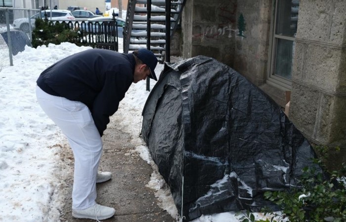 Trong thời tiết khắc nghiệt vào mùa lạnh của vùng Ontario, Canada, tuyết phủ dày đặc khắp nơi, thế nhưng bên ngoài vẫn có không ít người vô gia cư, họ sống tạm bợ trong các túp lều được dựng bằng những tấm bạt. Cuộc sống vô cùng thiếu thốn và khắc nghiệt.