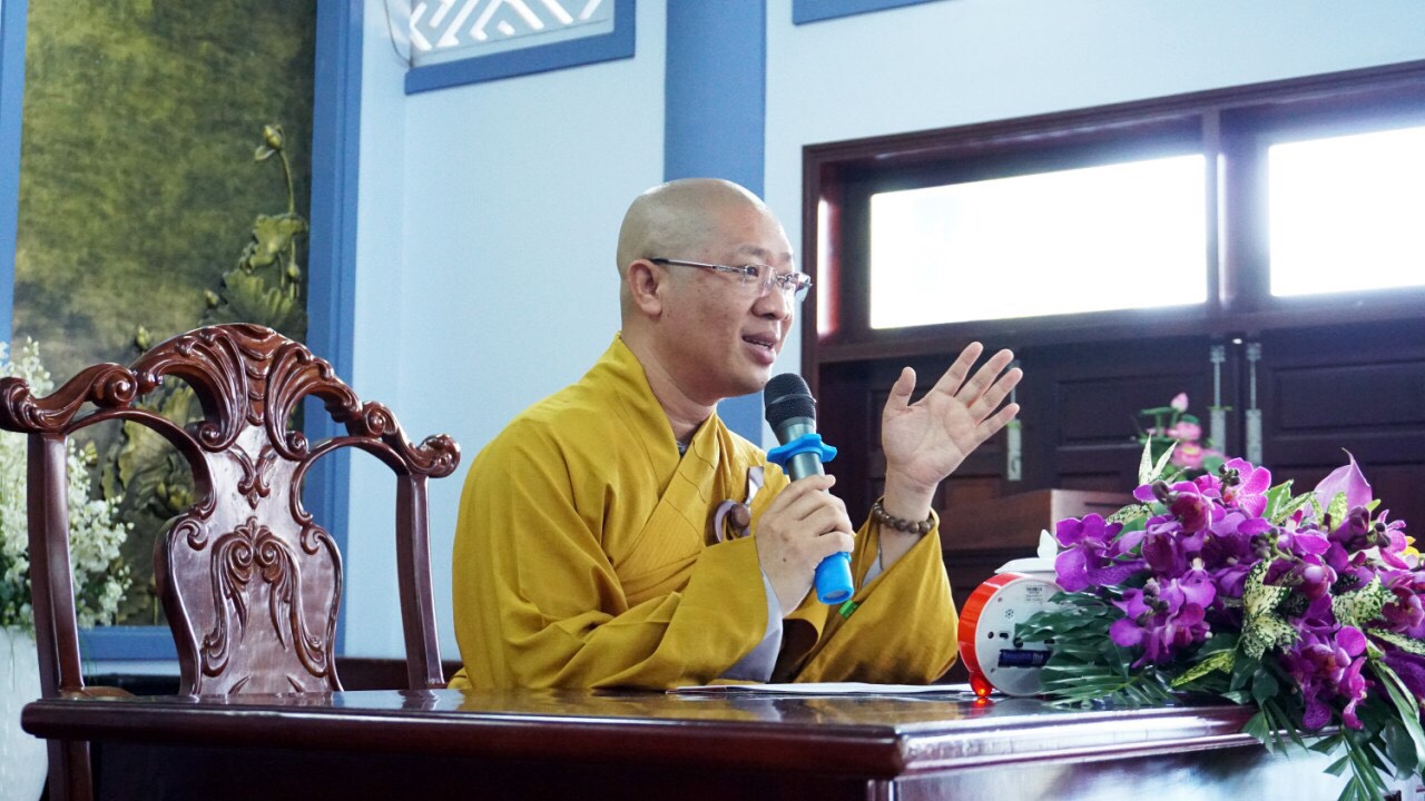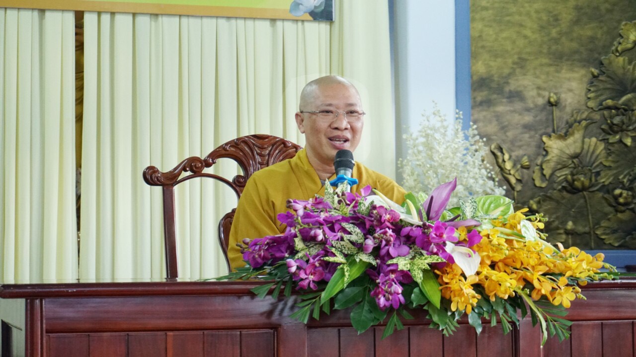 Thượng tọa chia sẻ, người xuất gia thời hiện đại quá vướng bận vào các Phật sự như từ thiện, giáo dục, xây dựng… nên cần phải biết nhiều thứ của thế tục để có thể hòa nhập và tồn tại. Nhưng đã mấy ai biết được rằng, điều đau khổ nhất của người là con người không biết gì cả và ta không là cái gì cả. Biết quá nhiều thứ ngũ dục thế gian, đến khi nhắm mắt mới biết mình không nắm được gì hết. Hãy tập biết như ngài Huệ Năng sau khi được nghe ngũ tổ Hoằng Nhẫn đọc lại kinh Kim Cang đến câu “Ưng vô sở trụ nhi sanh kỳ tâm” mà bất giác thốt lên: “Nào ngờ tự tánh xưa nay thanh tịnh, nào ngờ tự tánh không sanh không diệt, nào ngờ tự tánh vốn tự đầy đủ, nào ngờ tự tánh hay sanh muôn pháp…”