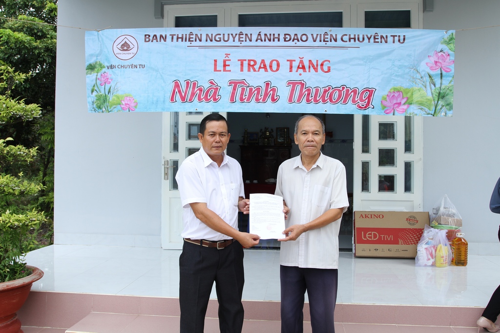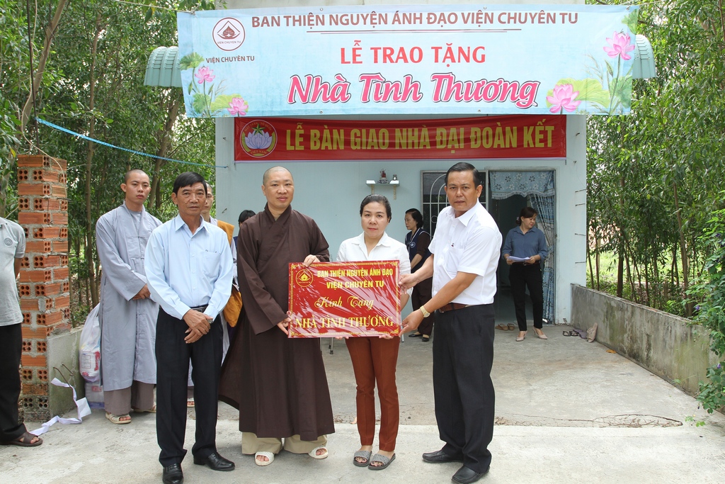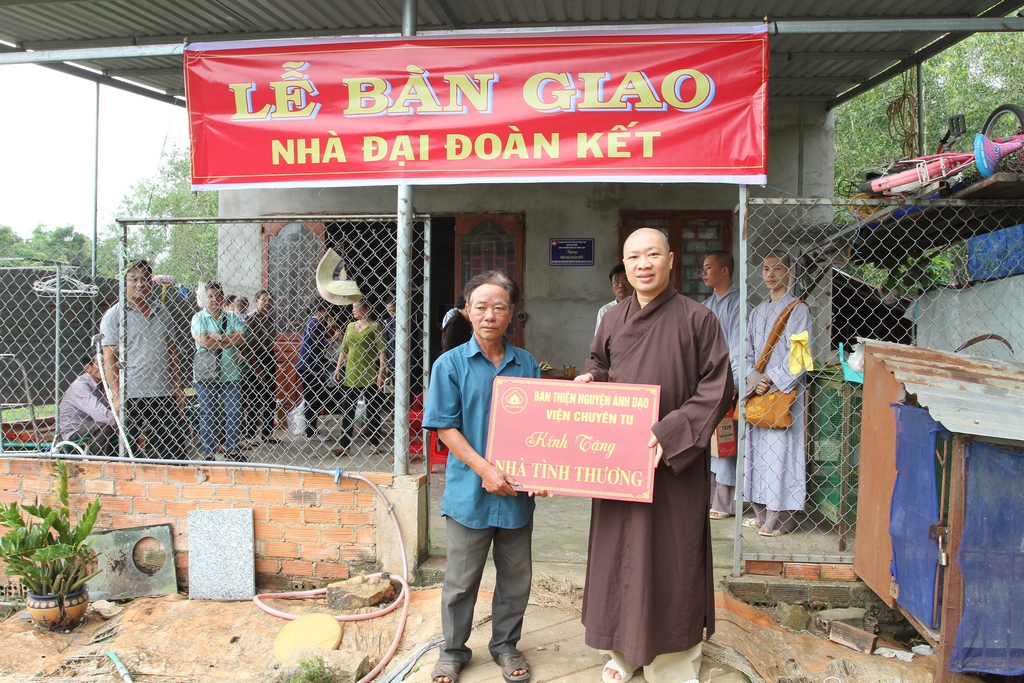 Sáng ngày 14/12/2018, Thượng tọa Thích Thiện Thuận – Cố vấn Ban Thiện nguyện Ánh Đạo phối hợp cùng Phật tử Diệu Hóa – Phó Ban Thiện nguyện Ánh Đạo đã giao 3 căn nhà tình thương cho các gia đình gặp hoàn cảnh khó khăn: