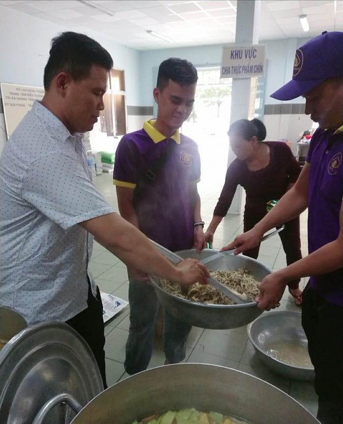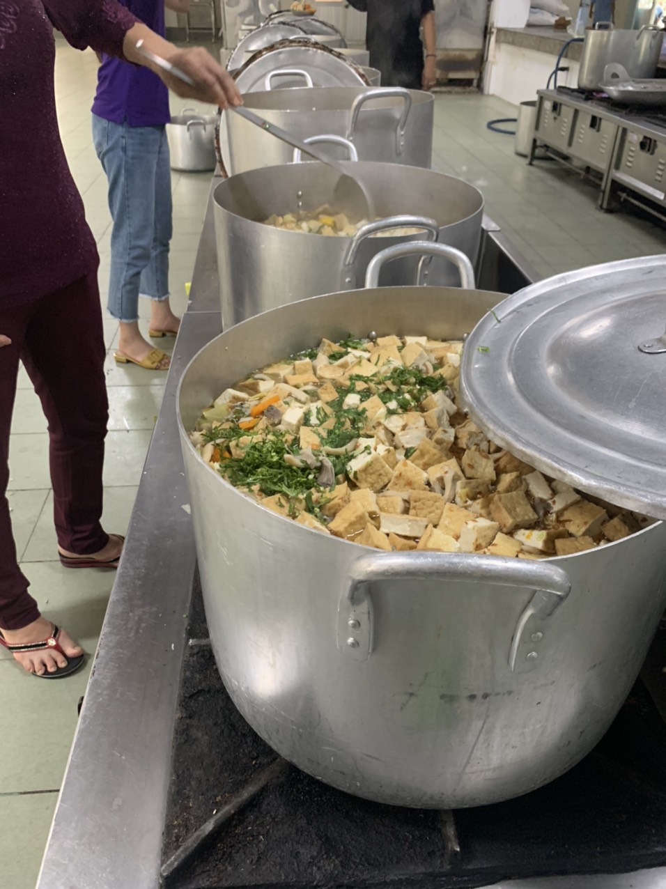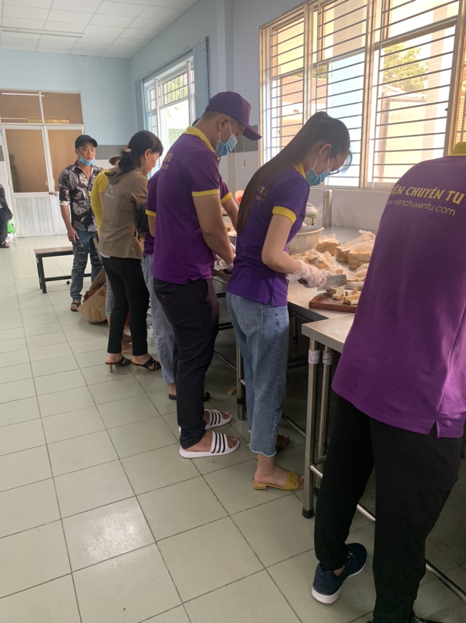 Đúng 13 giờ 30′ chúng tôi có mặt tại Trung tâm, 11 nồi nước đặt trên bếp, bắt đầu nổi lửa lên,15 giờ 30′ thì đã hoàn thành xong, sau đó đoàn chia thức ăn và mang tặng đến các bệnh nhân.