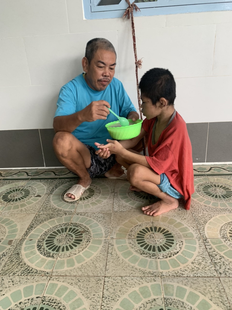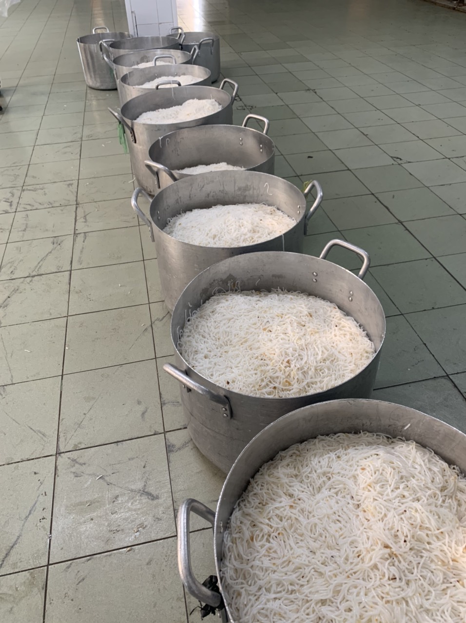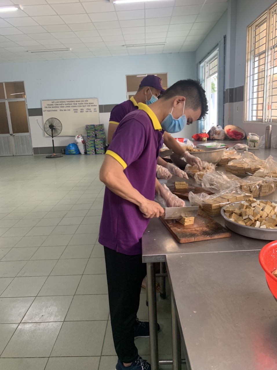 Đúng 13 giờ 30′ chúng tôi có mặt tại Trung tâm, 11 nồi nước đặt trên bếp, bắt đầu nổi lửa lên,15 giờ 30′ thì đã hoàn thành xong, sau đó đoàn chia thức ăn và mang tặng đến các bệnh nhân.
