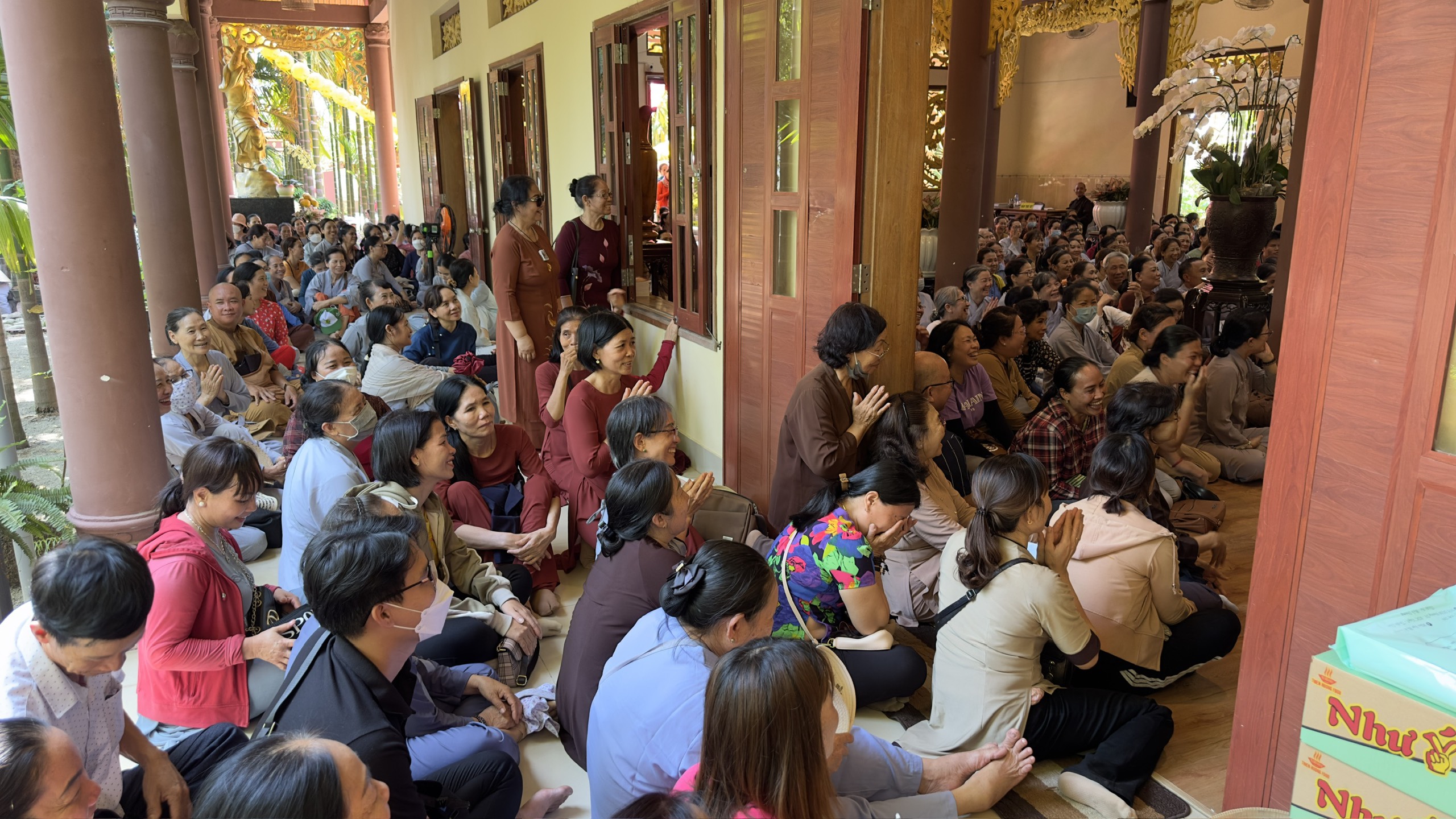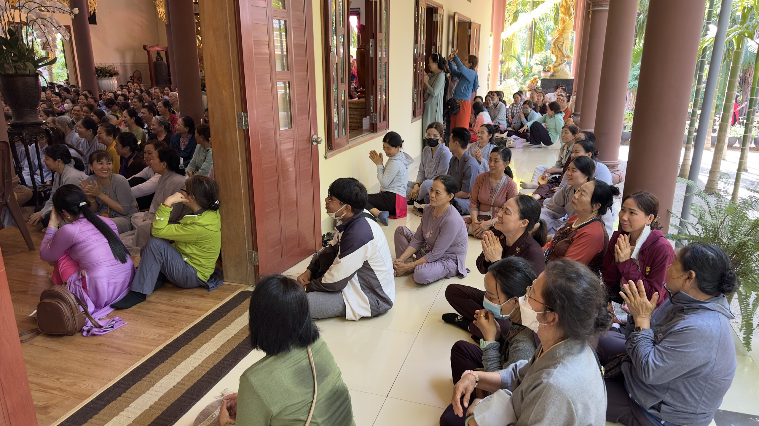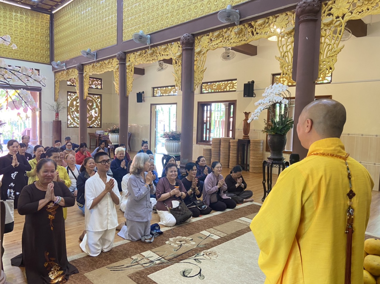 Chùa Vạn Thiện, tuy không phải là một ngôi phạm vũ huy hoàng, một ngôi già lam cổ tự, nhưng nơi đây có những vị tu sĩ tu hành nghiêm tịnh, có đạo hạnh, có trí tuệ, luôn dấn thân hoằng pháp lợi sanh, cho nên trong suốt từ ngày mồng Một đến nay, ngày nào cũng có nhiều Tăng, Ni, Phật tử đến viếng chùa, mừng khánh tuế Thượng tọa Trụ Trì. Đặc biệt, hôm nay, ngày mồng Chín Tết Giáp Thìn, cũng là ngày Chủ nhật, nên số lượng chư Tăng, Ni và Phật tử đến chùa càng đông hơn.