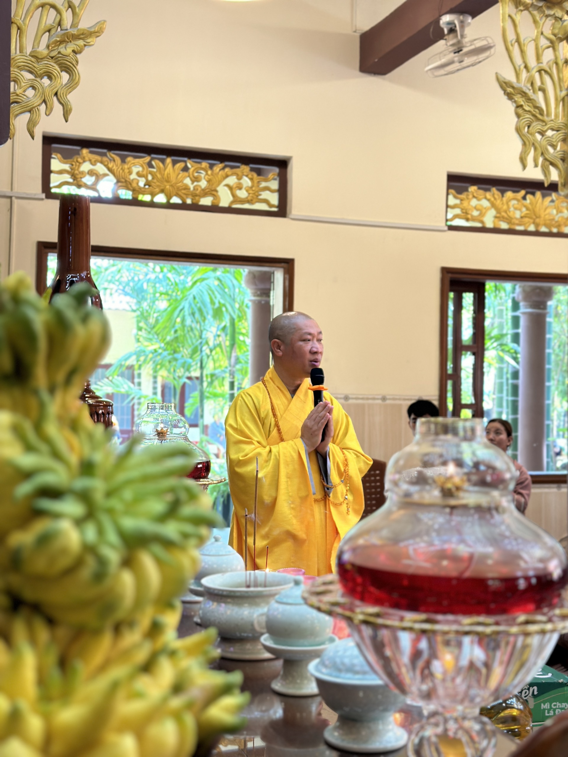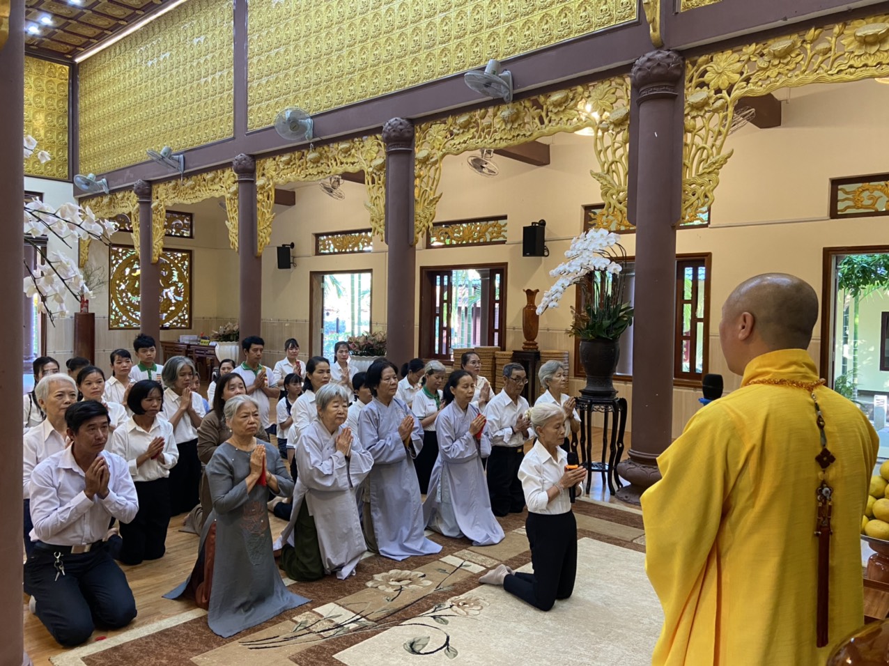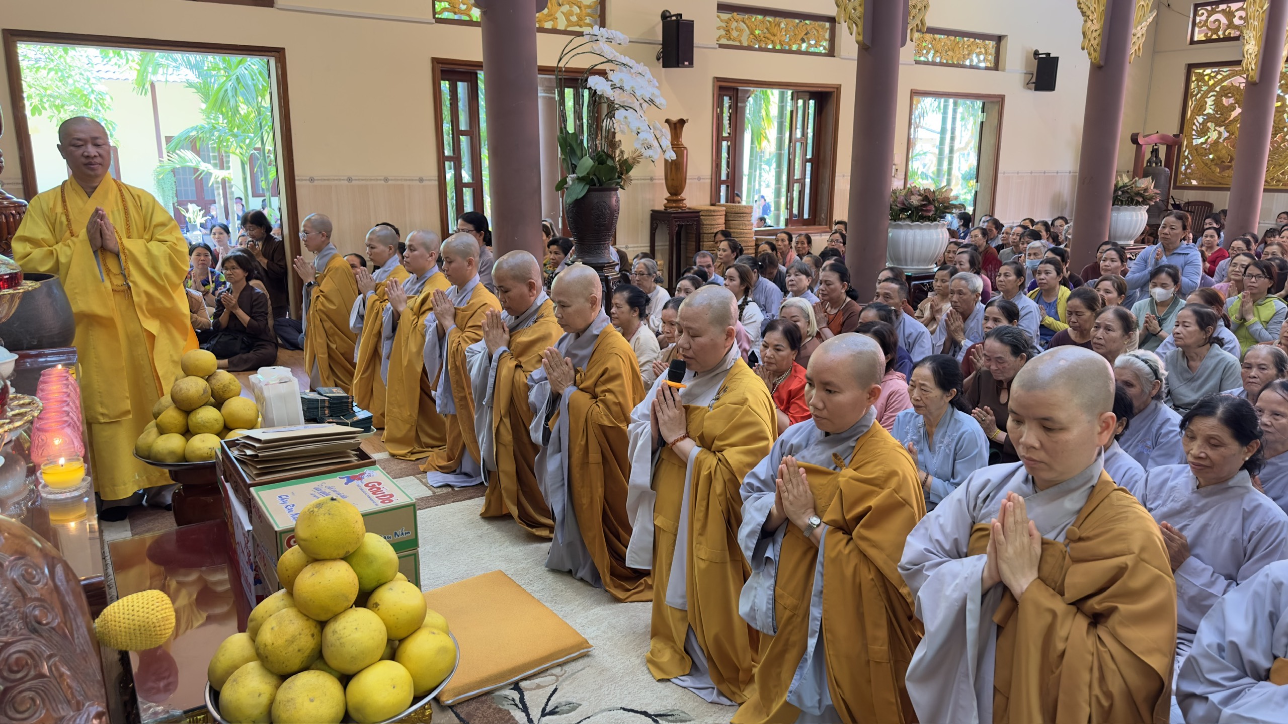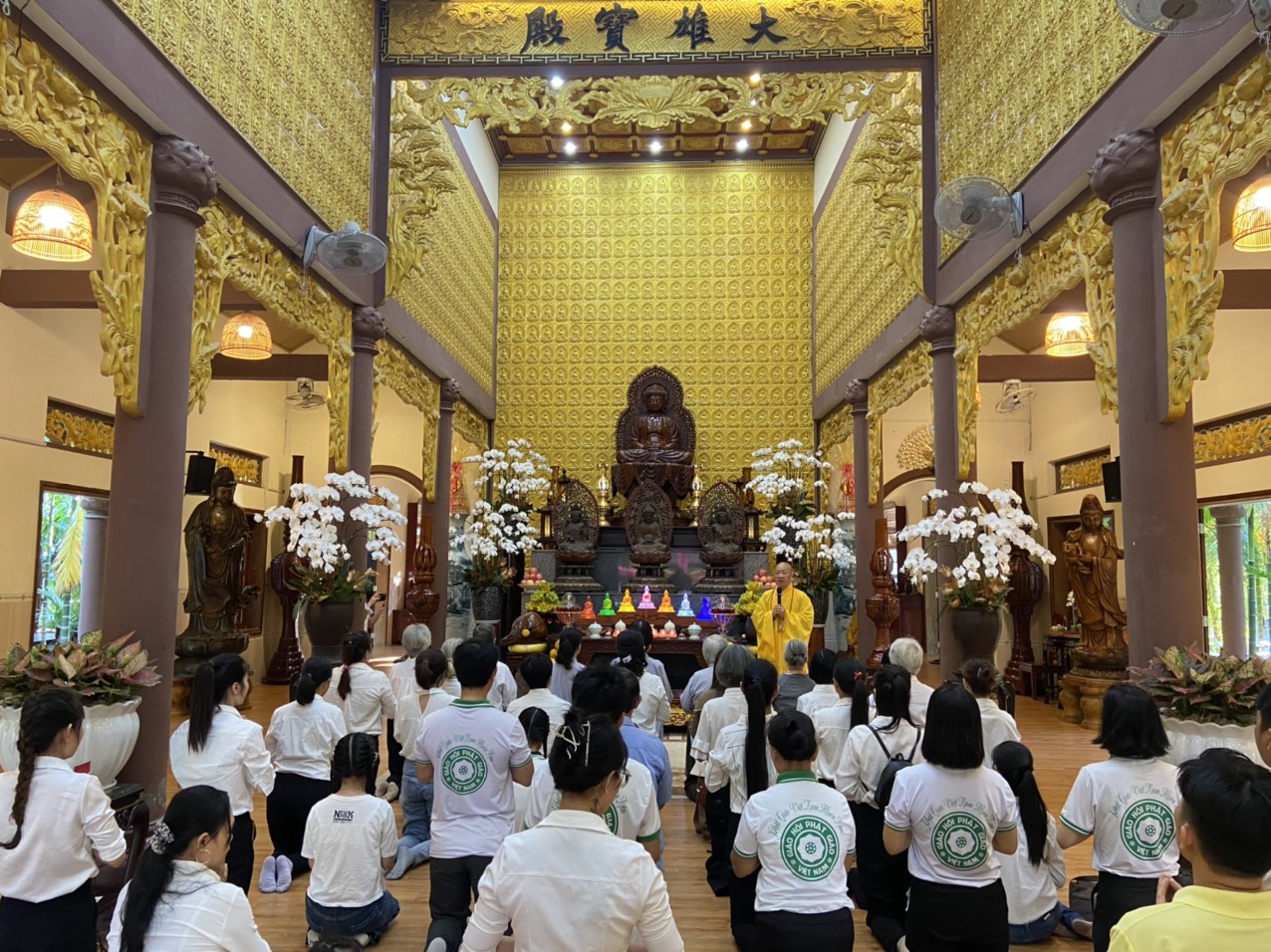 Chùa Vạn Thiện, tuy không phải là một ngôi phạm vũ huy hoàng, một ngôi già lam cổ tự, nhưng nơi đây có những vị tu sĩ tu hành nghiêm tịnh, có đạo hạnh, có trí tuệ, luôn dấn thân hoằng pháp lợi sanh, cho nên trong suốt từ ngày mồng Một đến nay, ngày nào cũng có nhiều Tăng, Ni, Phật tử đến viếng chùa, mừng khánh tuế Thượng tọa Trụ Trì. Đặc biệt, hôm nay, ngày mồng Chín Tết Giáp Thìn, cũng là ngày Chủ nhật, nên số lượng chư Tăng, Ni và Phật tử đến chùa càng đông hơn.