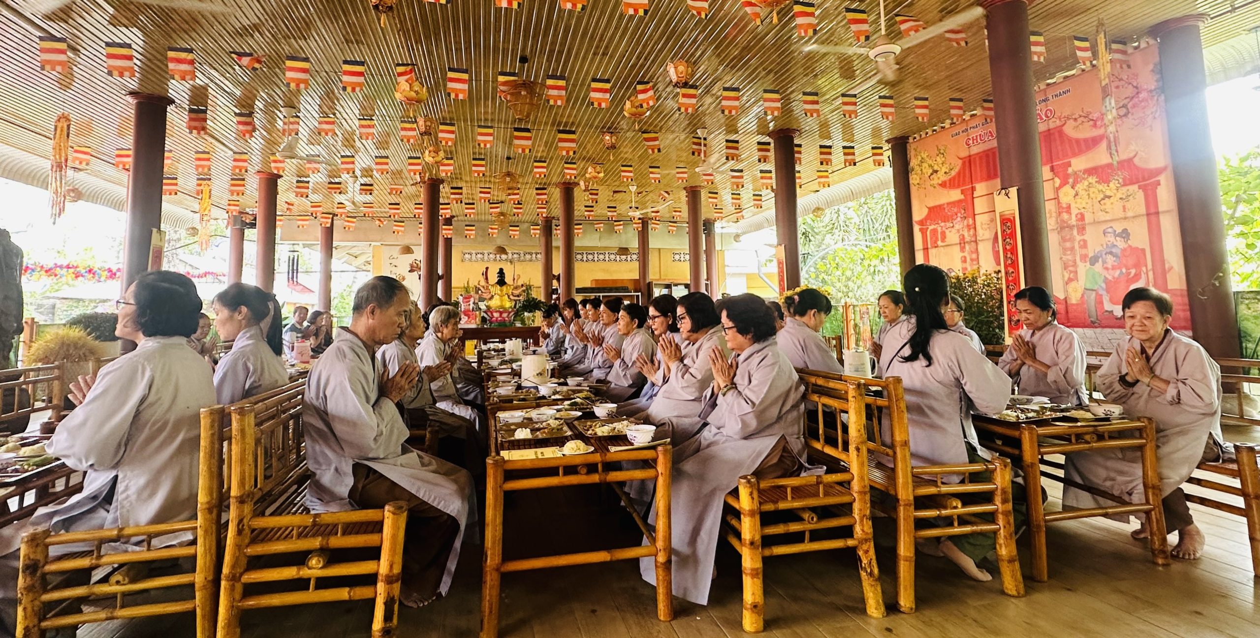 Trong khuôn khổ chương trình của khóa tu, đại chúng đã được thực tập ăn cơm trong niệm theo nghi thức quá đường, đi kinh hành niệm Phật sau khi thọ trai. Bên cạnh đó, đại chúng còn được chư Tăng hướng dẫn tọa thiền, trì niệm hồng danh Đức Phật A Di Đà