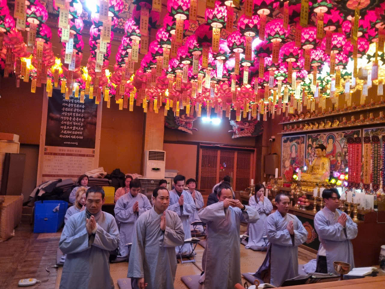 Cùng ngày, Đạo tràng khu vực JinJu cũng đã tham gia Khóa tu cùng chùa Hộ Quốc và tổ chức tụng Kinh A Di Đà.
