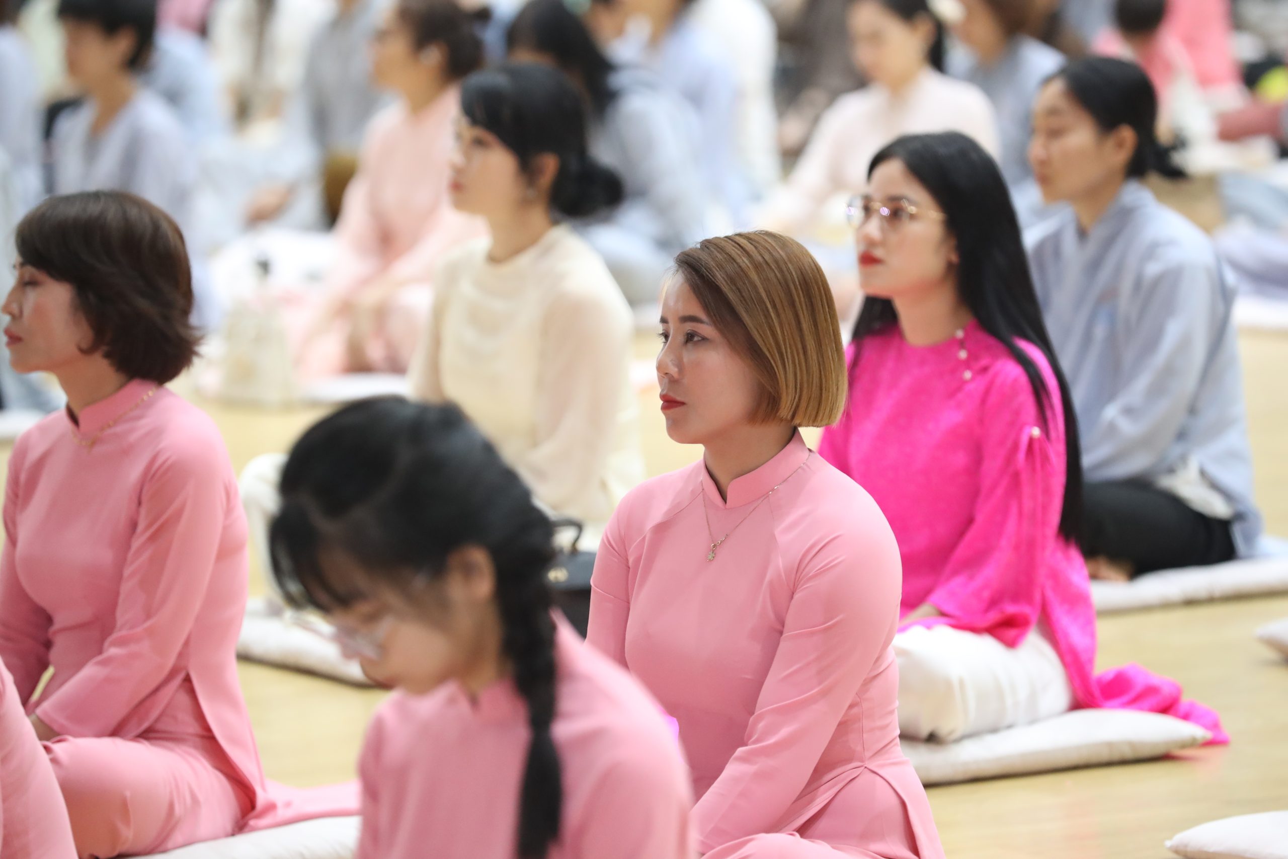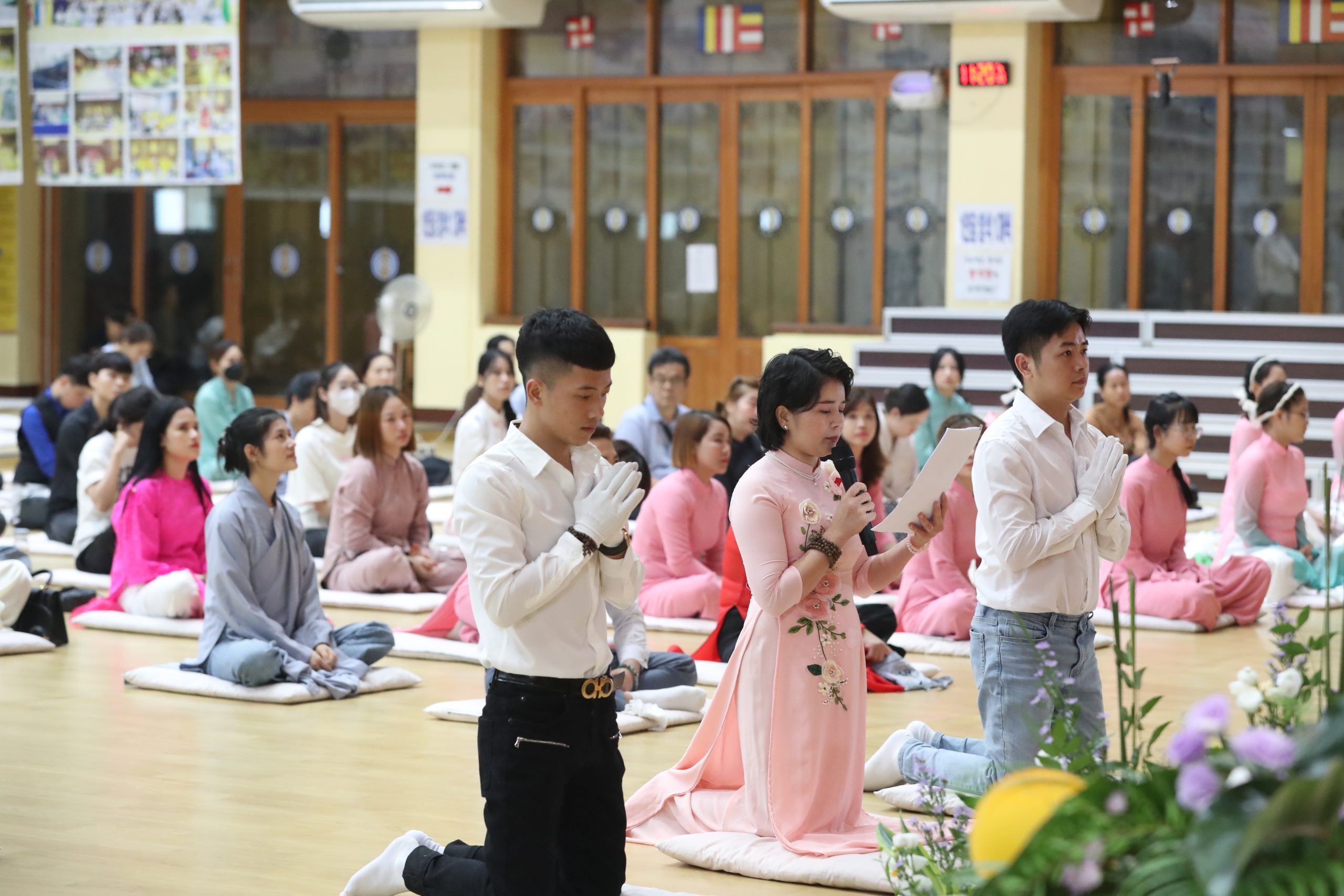 Phát biểu khai mạc buổi lễ, TT. Thích Thiện Thuận – Trưởng BTC đã xúc động chia sẻ khi nhìn lại chặng đường 10 năm đã qua, Thầy cảm nhận được tình cảm người Việt tha hương, lòng biết ơn đối với Tam Bảo và sự nỗ lực cố gắng tu tập không ngừng nghỉ. Từ tận đáy lòng, Thầy vô cùng cảm kích và cảm niệm trước tâm từ rộng lớn của các vị Hoà Thượng Trụ trì và quý vị trong Ban Quản trị đã bao dung, tạo điều kiện giúp đỡ Đạo tràng tổ chức thành công nhiều khoá tu học trên mảnh đất Hàn Quốc xinh đẹp này. Đồng thời, Thượng tọa cũng đã sách tấn hàng đệ tử hãy luôn giữ tâm học hỏi, trau dồi kiến thức Phật pháp, ươm mầm giải thoát và hướng đến cuộc sống chân thiện mĩ.