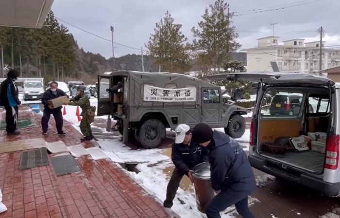 mặt đất phủ đầy tuyết, đi lại khó khăn, nhưng các tình nguyện viên của Hội Từ Tế vẫn quyết tâm mang cơm nóng đến trao cho người dân. Trong ngày 16/01, Hội Từ Tế đã cung cấp hơn 500 suất cơm nóng đến cho người dân trong các khu sơ tán tại thị trấn Anamizu, Nhật Bản.