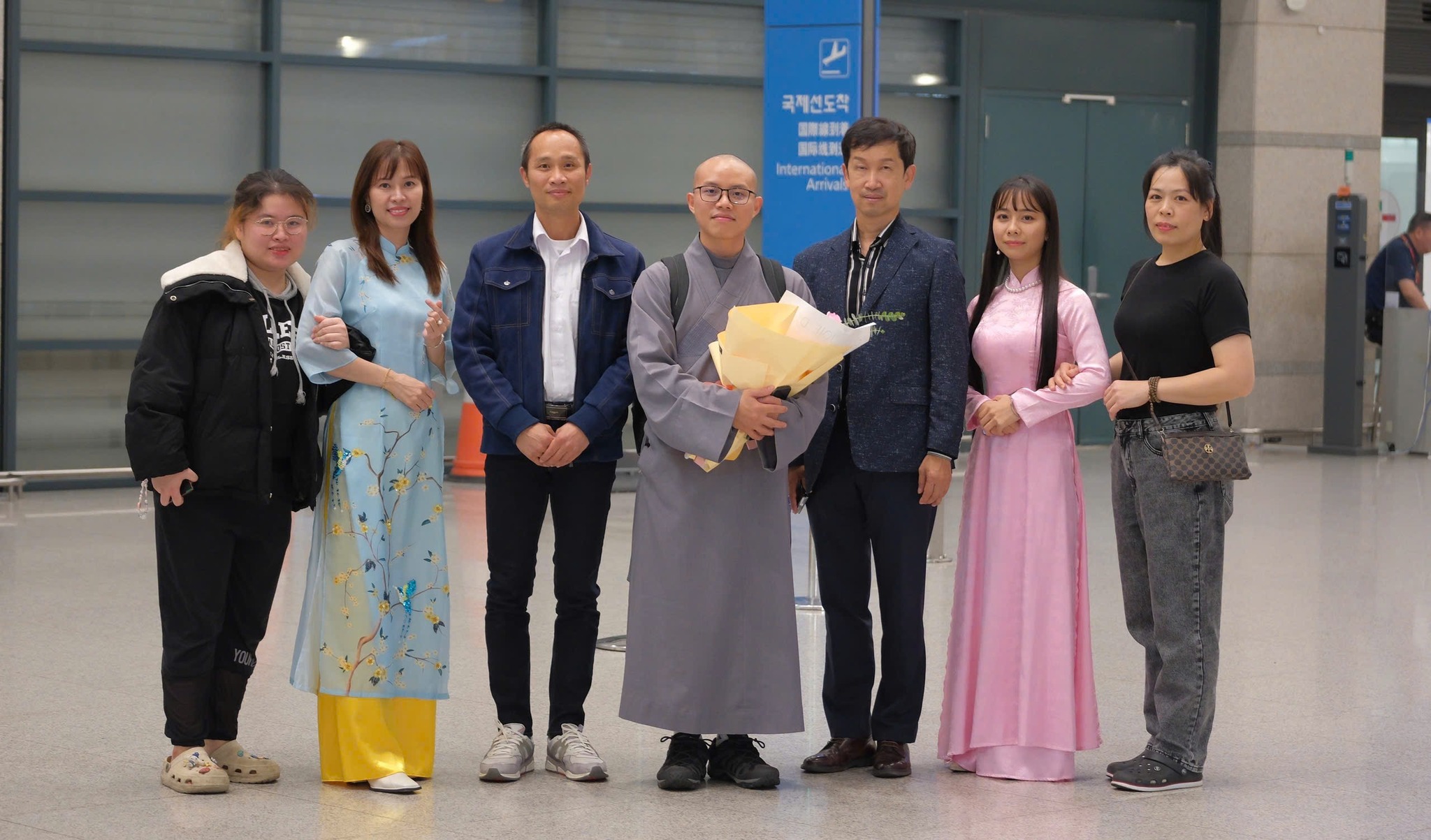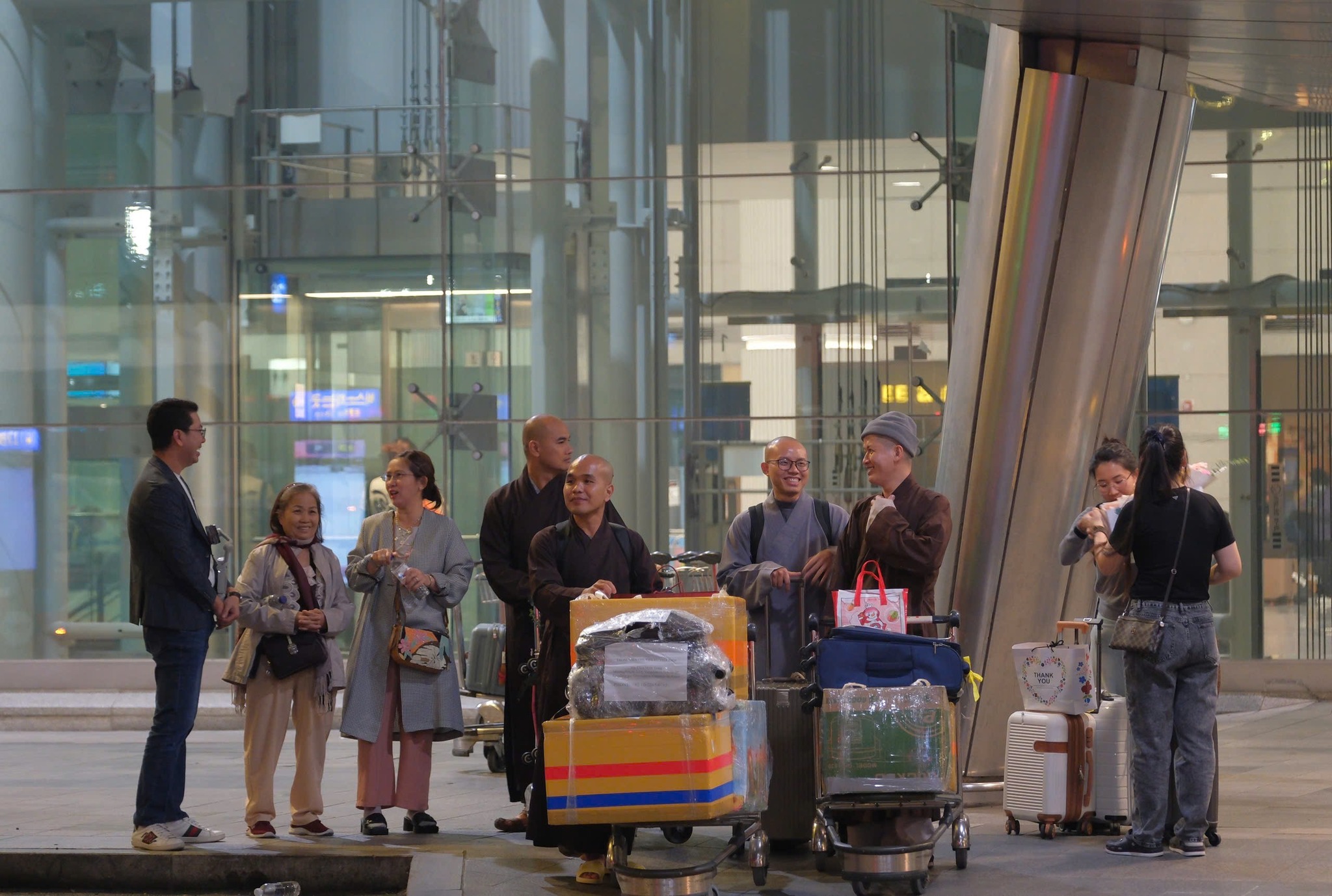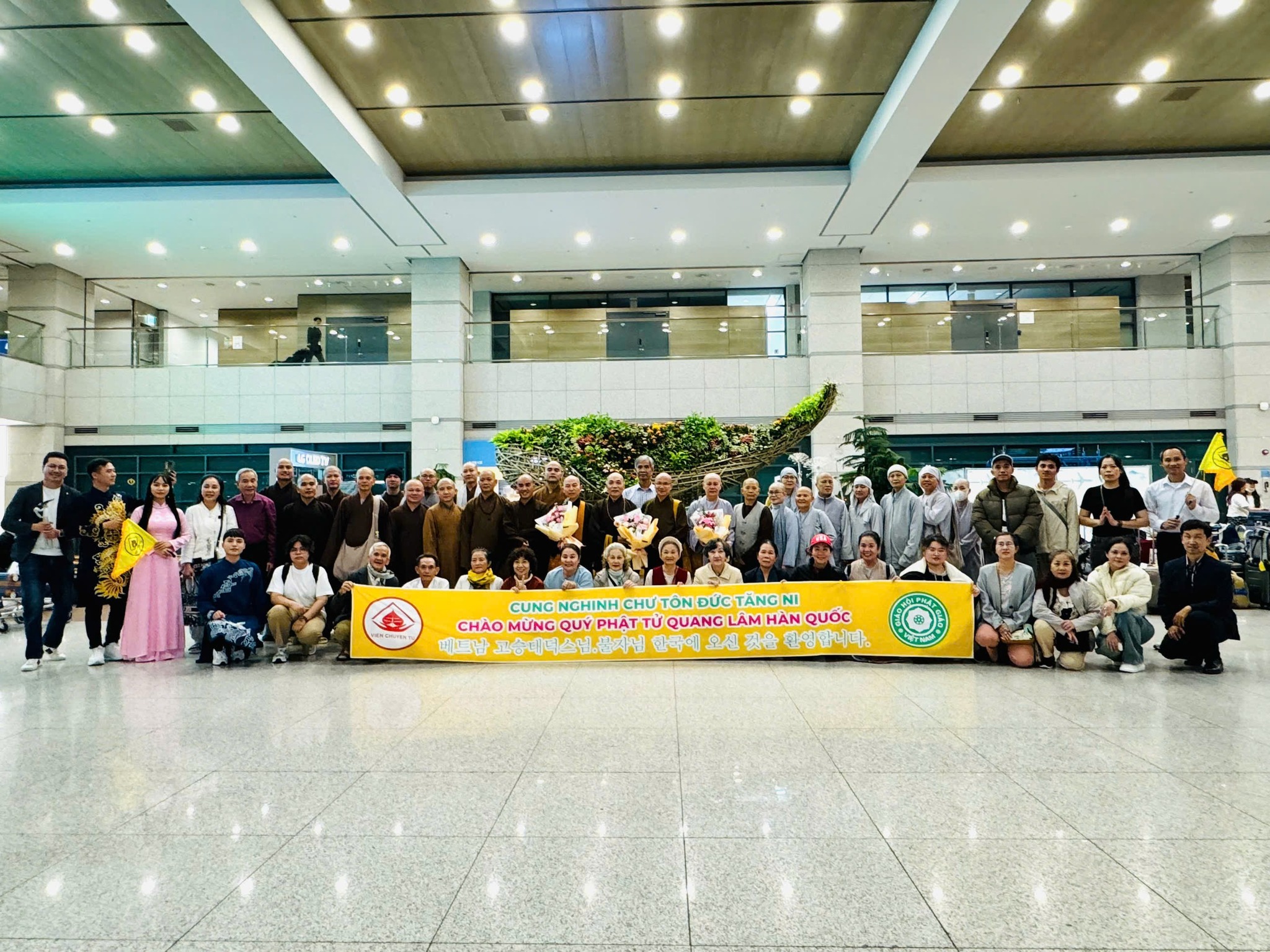 Anh chị em Cộng đồng Phật tử Viện Chuyên Tu tại Hàn Quốc từ rất sớm đã đến sân bay Incheon, tất cả đều háo hức, trông chờ được diện kiến Chư Tôn Đức và Đoàn Phật tử từ Việt Nam. Lúc 20 giờ 00, Đoàn Hoằng pháp đã đáp chuyến bay ASIANA số hiệu OZ732 tại Incheon Hàn Quốc. Đạo tràng được cung đón sự hiện diện của TT. Thích Thường Tín – Trụ trì Tổ đình Long Sơn (Nha Trang), TT. Thích Trúc Thái Thường – Trú xứ chùa Tam Bảo (Đồng Nai) cùng Chư Tôn Đức Tăng Ni – Trụ trì các Tự viện và Quý Phật tử tại Việt Nam, tại Mỹ Quốc, tại Canada. Đoàn đã khởi hành về chùa Minh Trang (Myeongjangsa: 2-13, Yongdam-ro 31 beon-gil, Sangdang-gu, Cheongju-si, Chunbuk-do, Korea) – Nơi sẽ tổ chức khóa tu học Phật pháp lần thứ 15 chủ đề: “Tìm về bên Phật”.