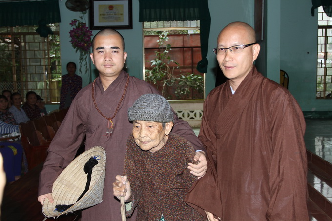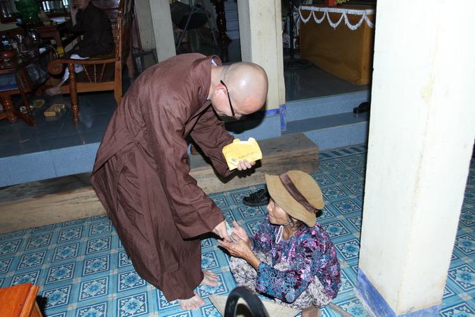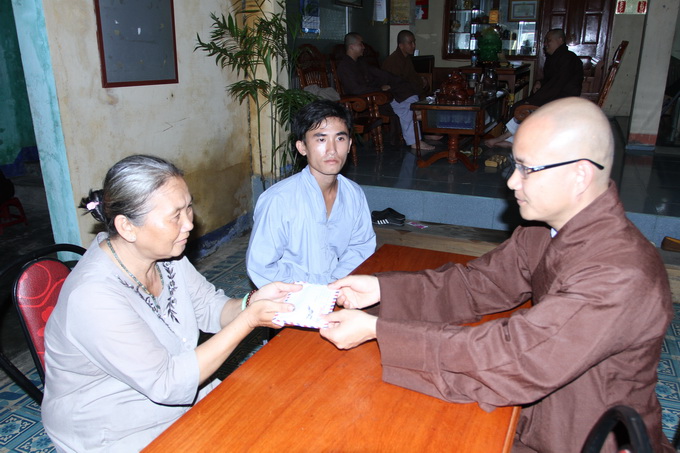 ĐĐ. Thích Thiện Hưng đã thăm hỏi, an ủi, động viên và gửi tặng 2 triệu đồng đến hộ gia đình bà Nguyễn Thị Dư.
