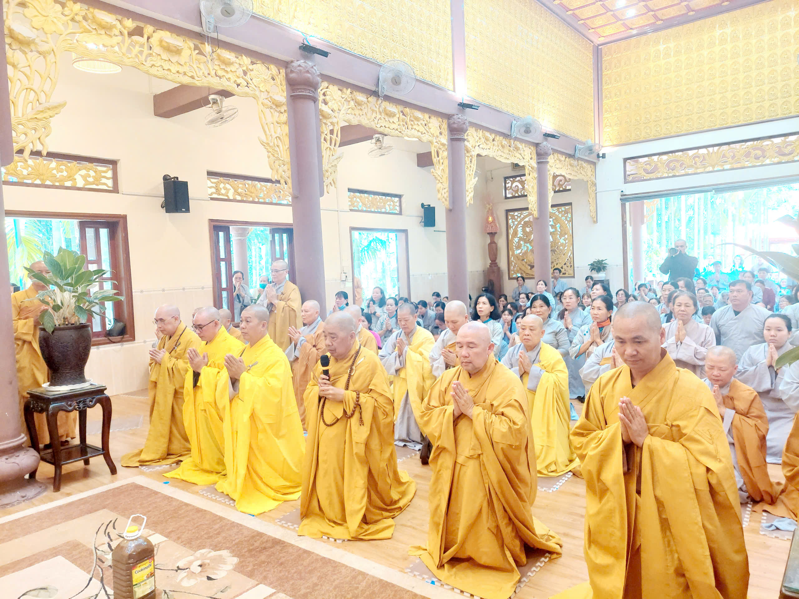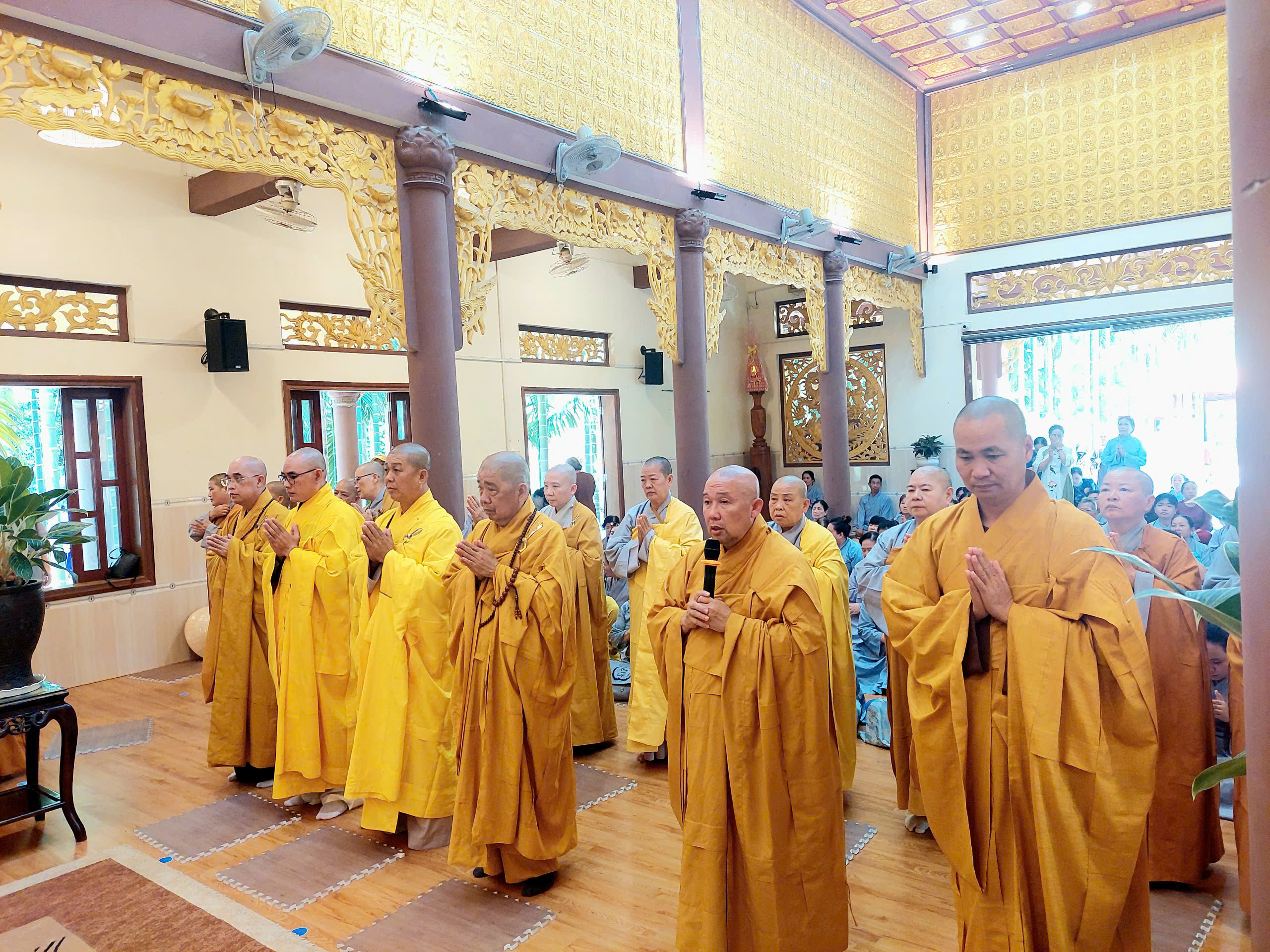 Trước Tam Bảo trang nghiêm thanh tịnh, hòa quyện cùng khói hương nguyện tỏa, Thượng tọa Thích Chơn Trí – Phó Trưởng Ban thường trực BTS, kiêm Trưởng Ban từ thiện xã hội GHPG tỉnh Đồng Tháp đã thay mặt cho chư Tôn Hòa thượng, chư Tôn thiền đức Tăng ni trong phái Đoàn tác pháp cúng dường. Thượng tọa đã nhắc lại điển tích đức Phật chế định giới luật, chế định việc an cư kiết hạ. Thực hành lời dạy của đức Phật lúc còn tại thế nên sau khi đón mừng Đại Lễ Phật Đản, chư Tôn thiền đức Tăng Ni khắp mọi miền đất nước sẽ tìm về các trú xứ để thực hiện 3 tháng an cư kiết hạ. Đây là khoảng thời gian mà các chư Tôn đức Tăng Ni thực hành cấm túc để thúc liễm thân tâm, trau dồi giới đức, tấn tu đạo quả. Có thể nói, đây là cũng là khoảng thời gian quan trọng, là nhân duyên thù thắng, vô lượng phước điền để quý Phật tử giao duyên, cúng dường Tam Bảo.