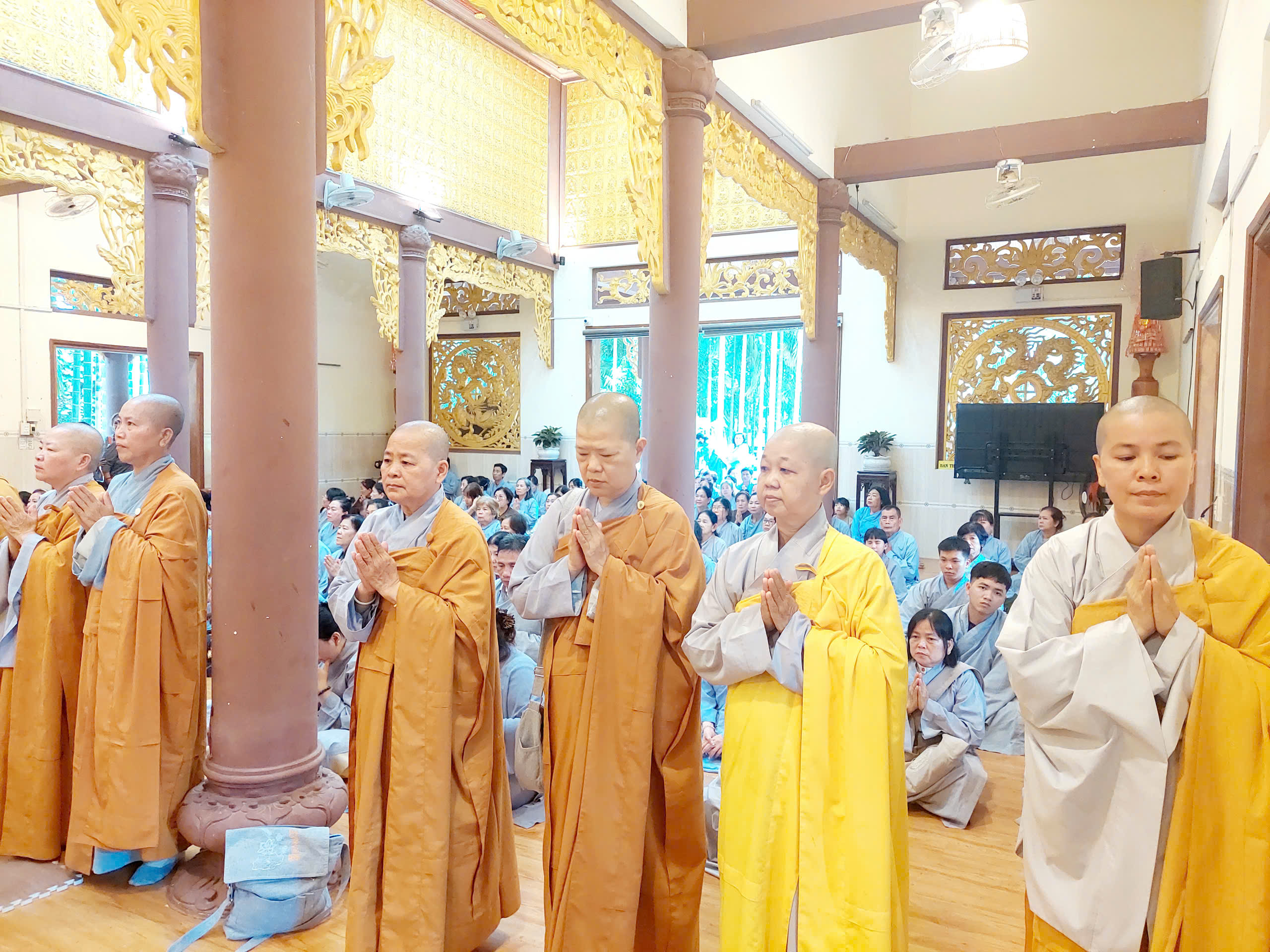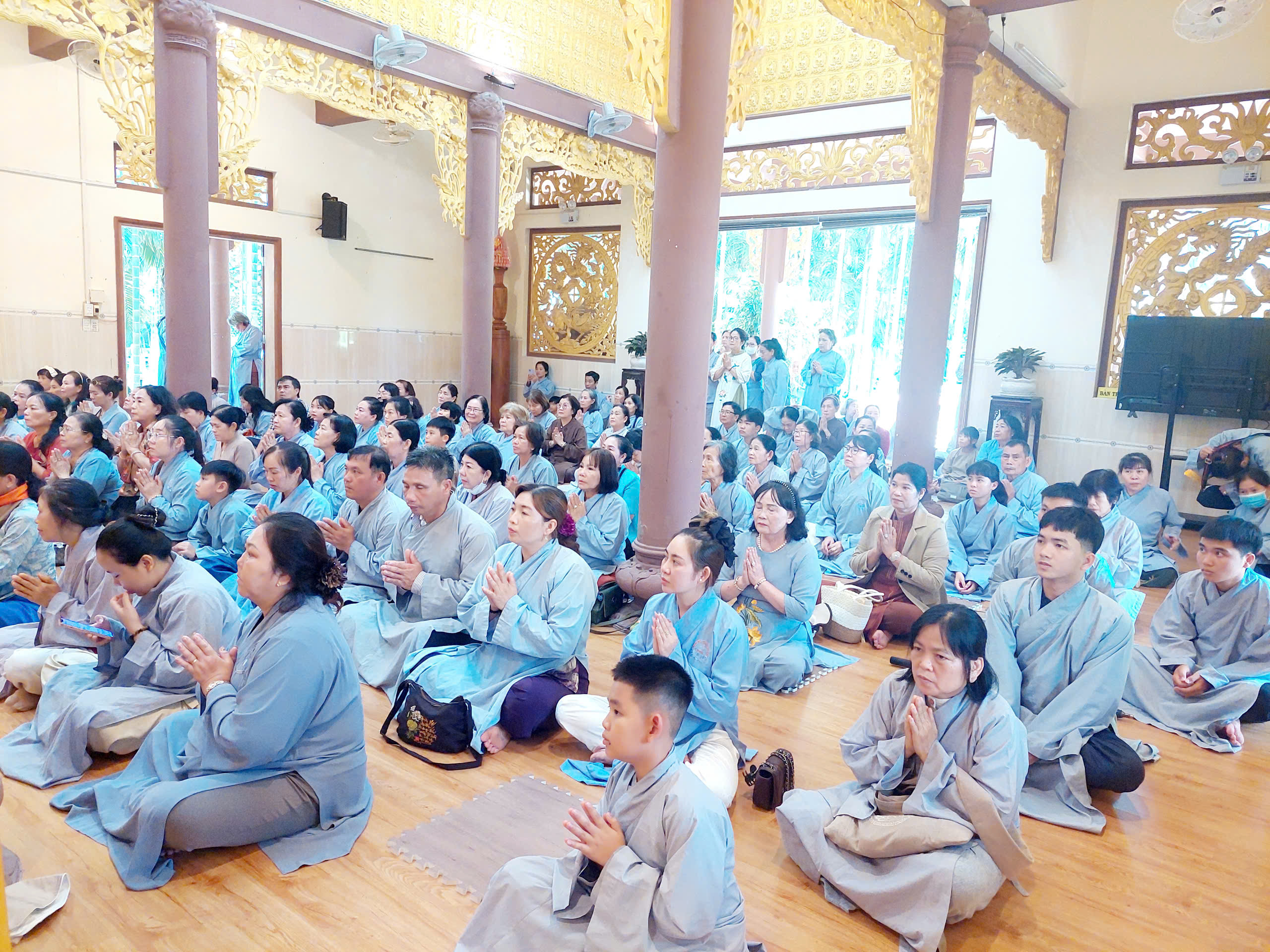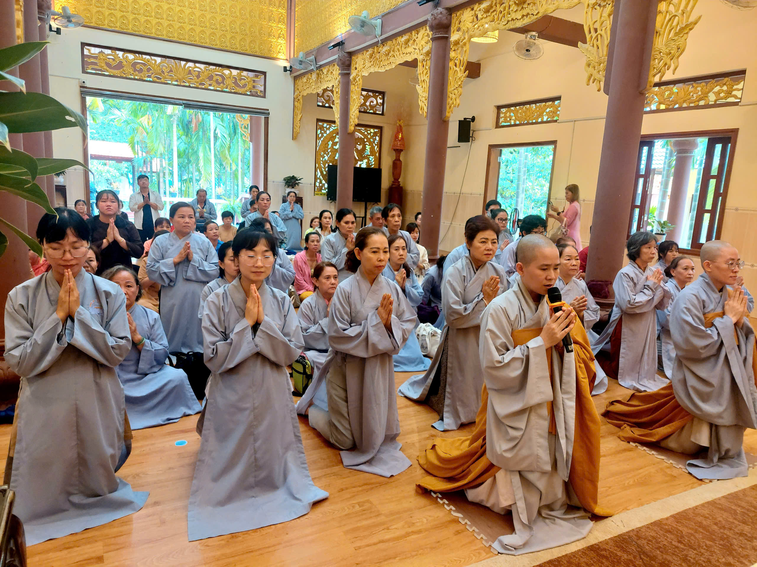 Cùng ngày, Phật tử chùa Quan Âm, (quận 11 cũ), TP. Hồ Chí Minh dưới sự hướng dẫn của nhị vị Sư Cô đã vân tập về trường hạ chùa Vạn Thiện để cúng dường Tam Bảo. Thượng tọa Thích Đức Minh, phó Thiền chủ hạ trường và chư Tôn đức hành giả an cư đã thân mật tiếp Đoàn, cũng như hoan hỷ thọ nhận phẩm vật cúng dường và gửi lời tri ân sâu sắc đến phái Đoàn.
