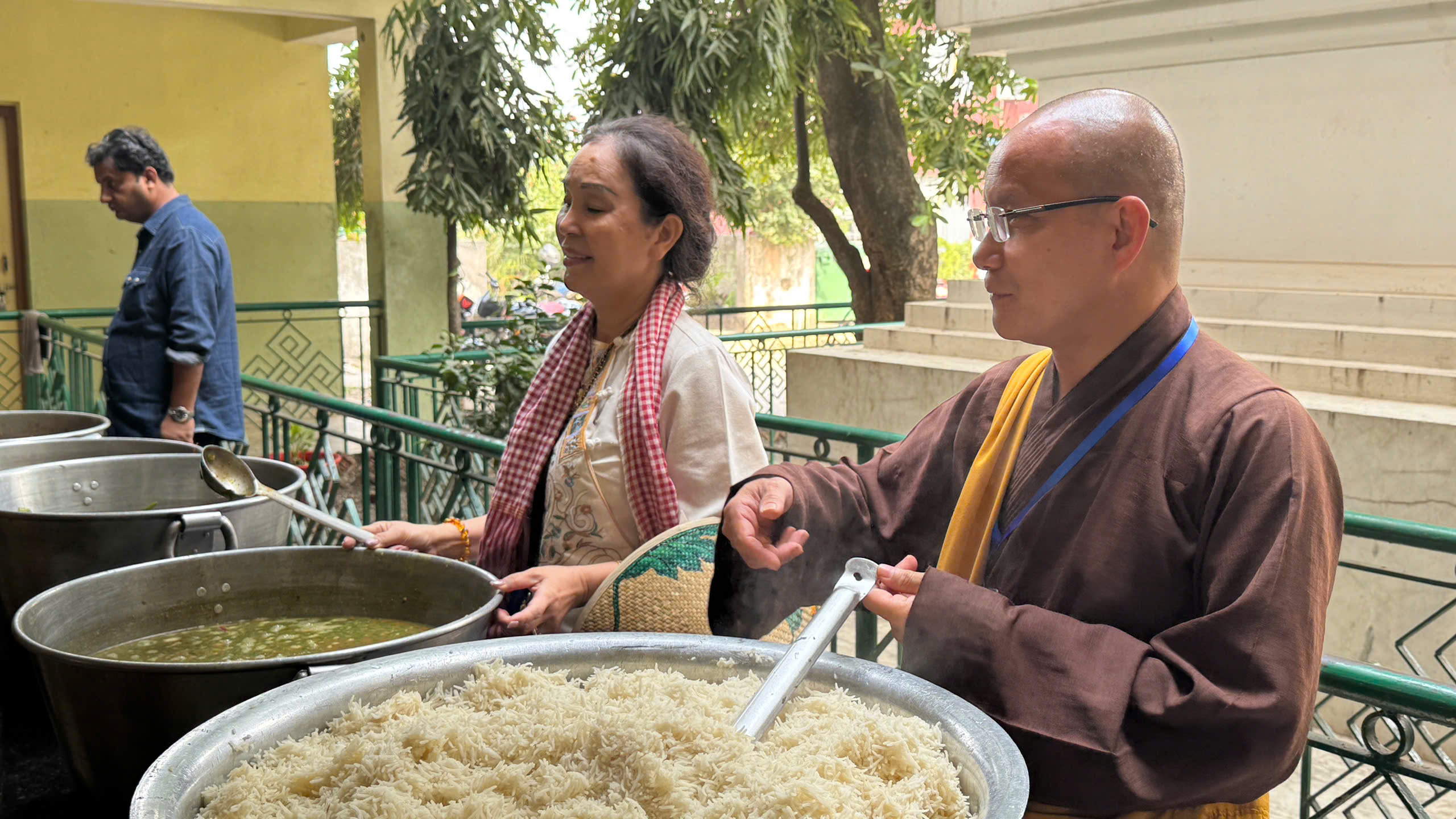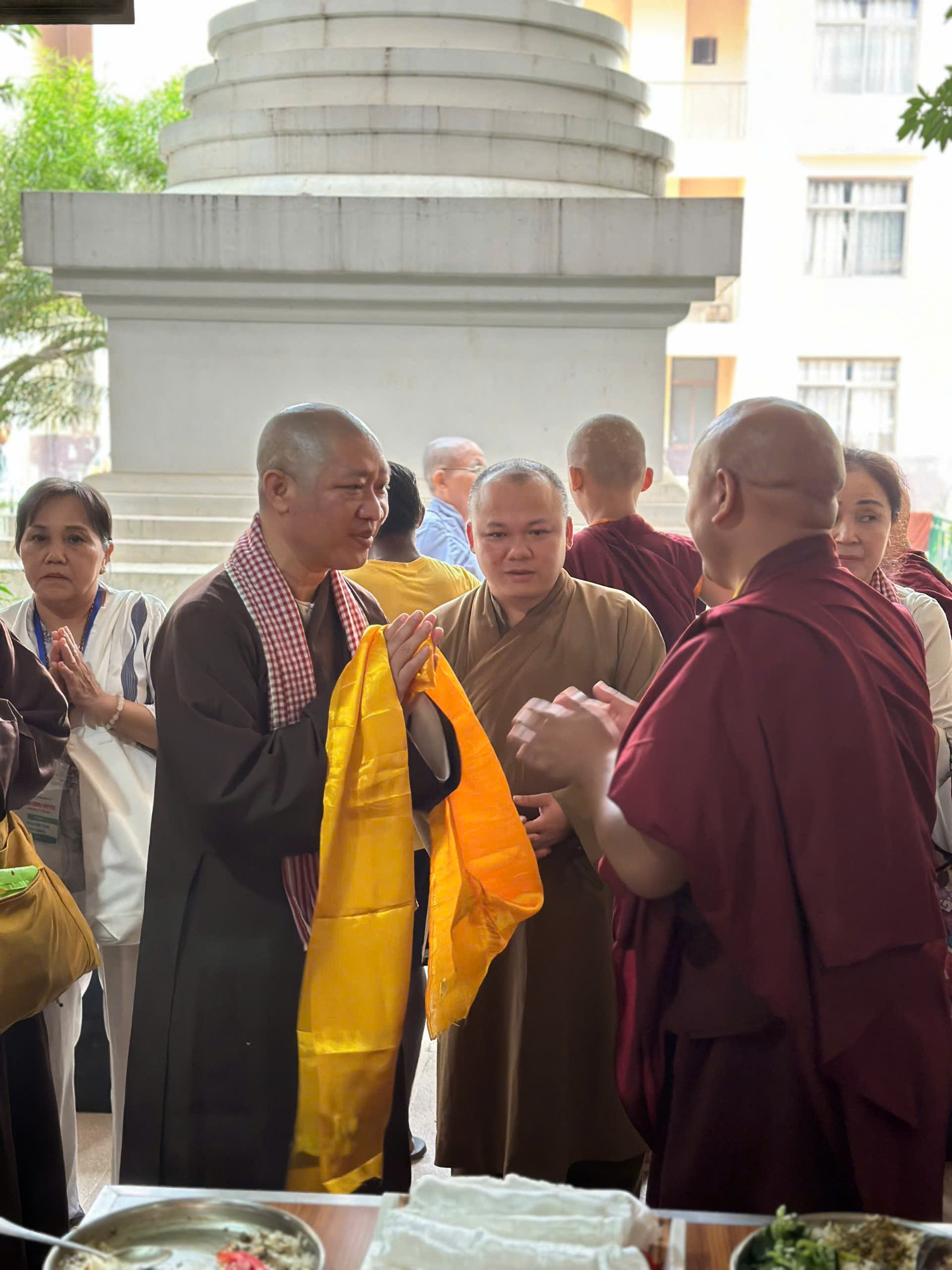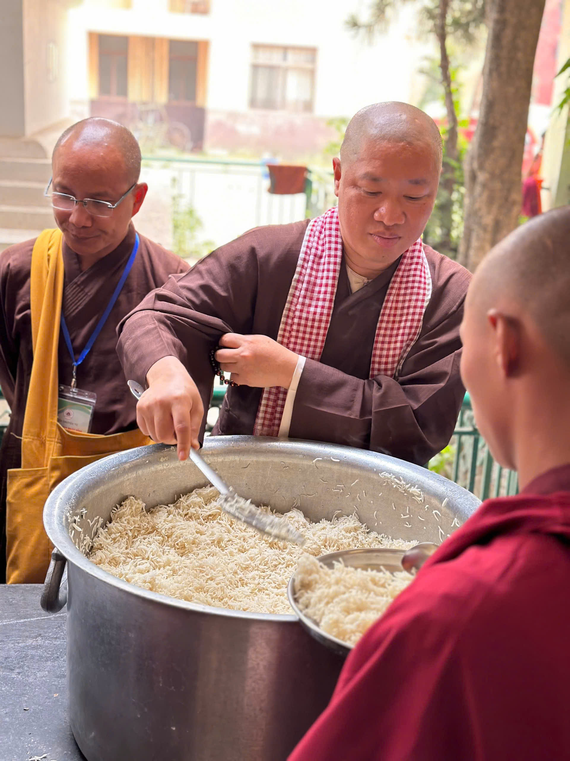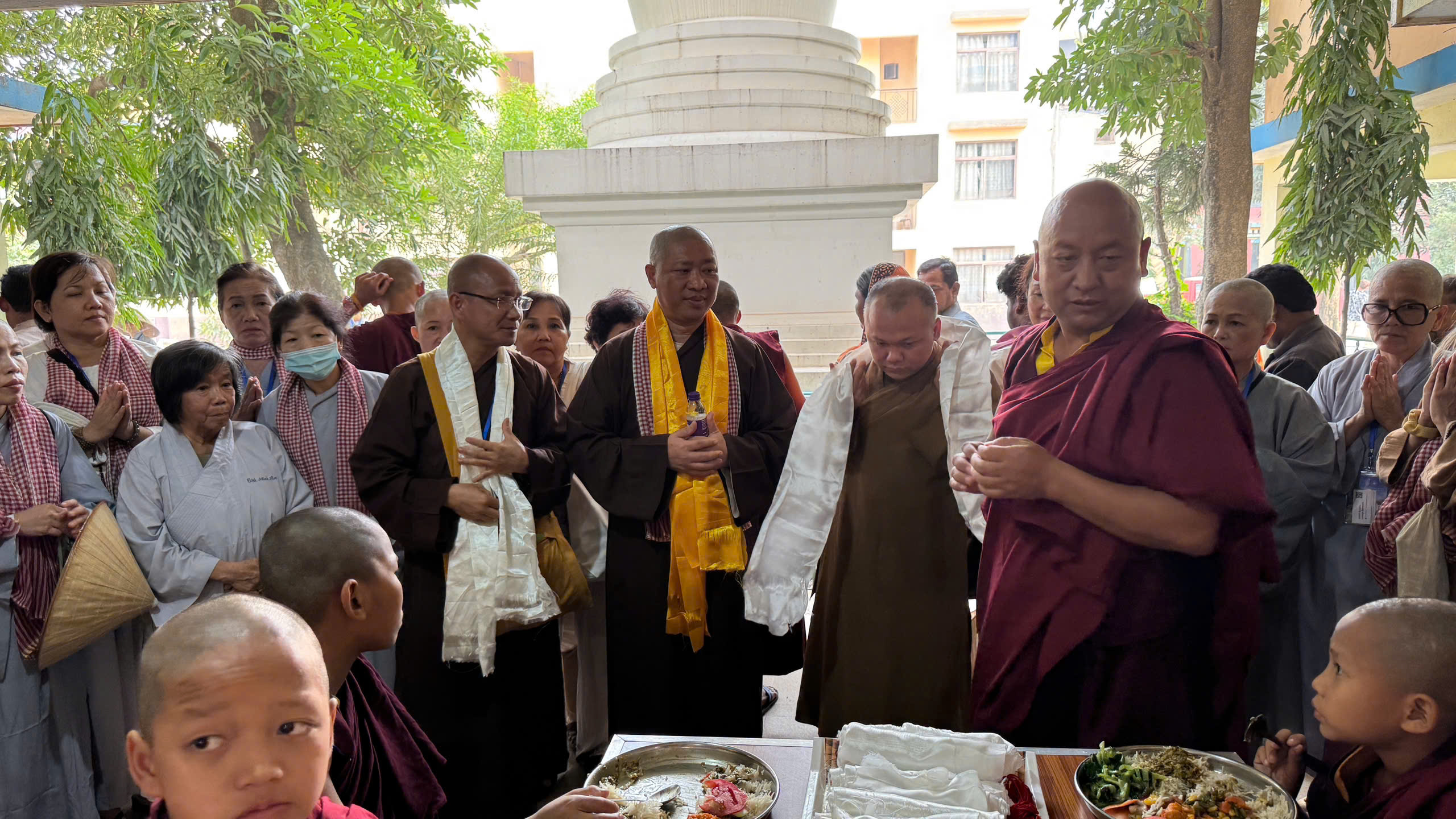 Cùng ngày, tại chùa Kramapa thứ 17 – khu vực Bồ Đề Đạo Tràng, Đoàn đã cúng dường Trai phạn đến các vị Lạt Ma Tây Tạng và cúng tịnh tài tại chùa. Được biết, đây là nơi tu học của 200 vị tu sĩ.