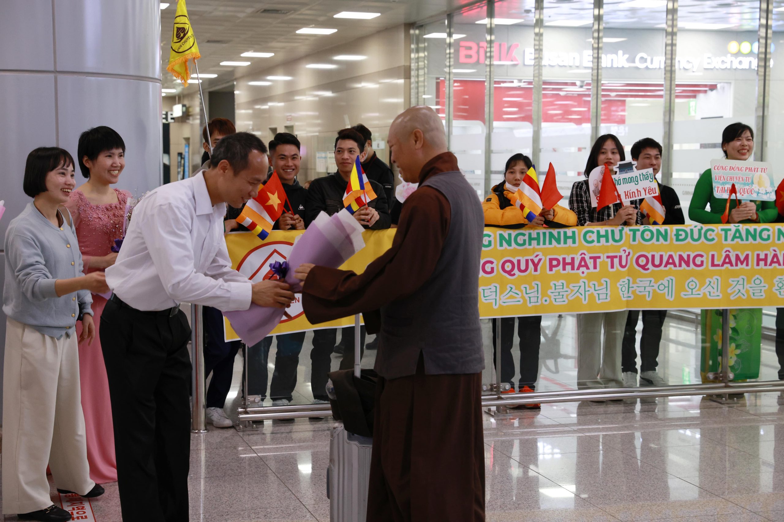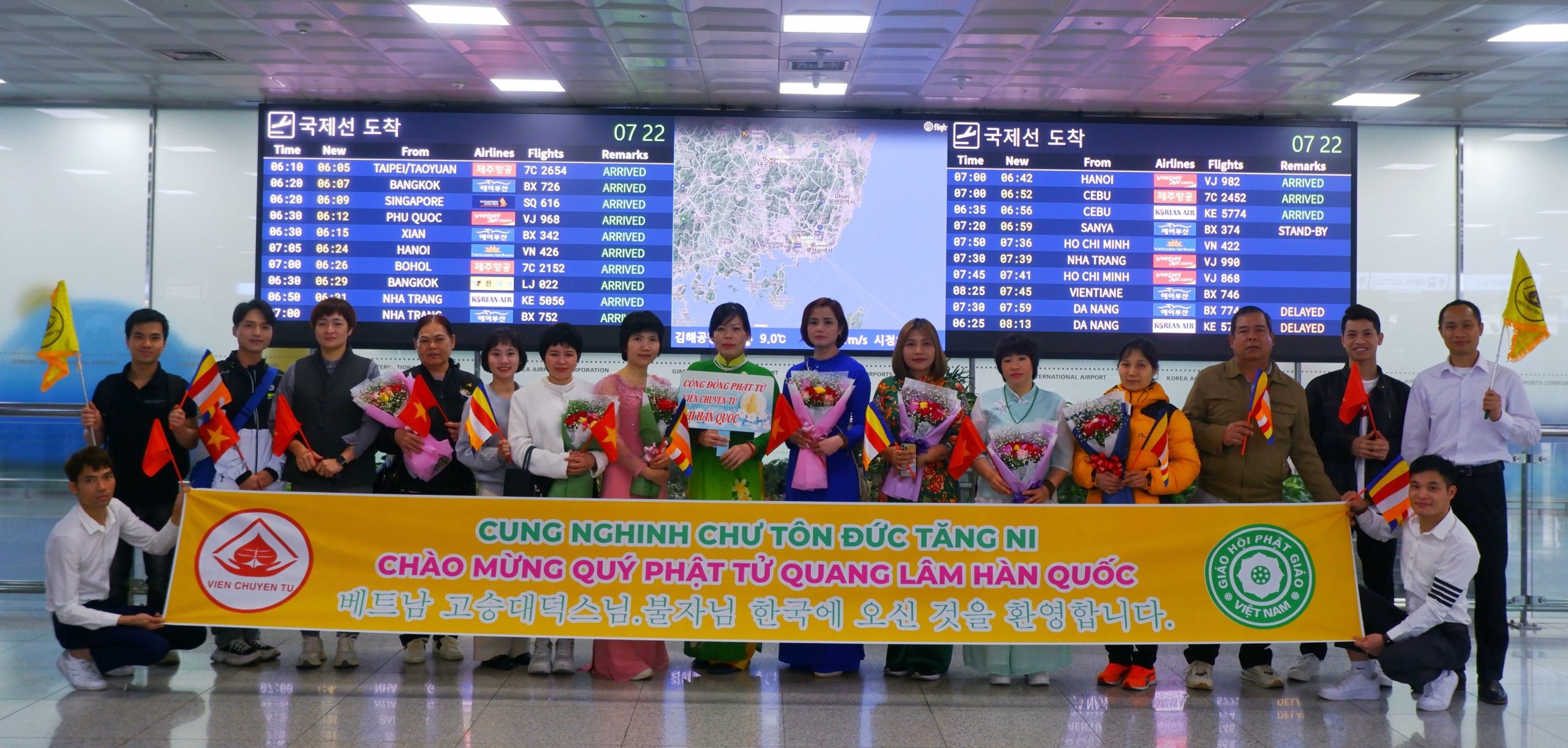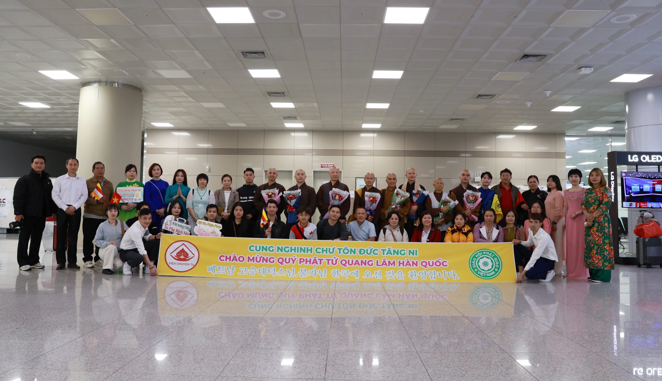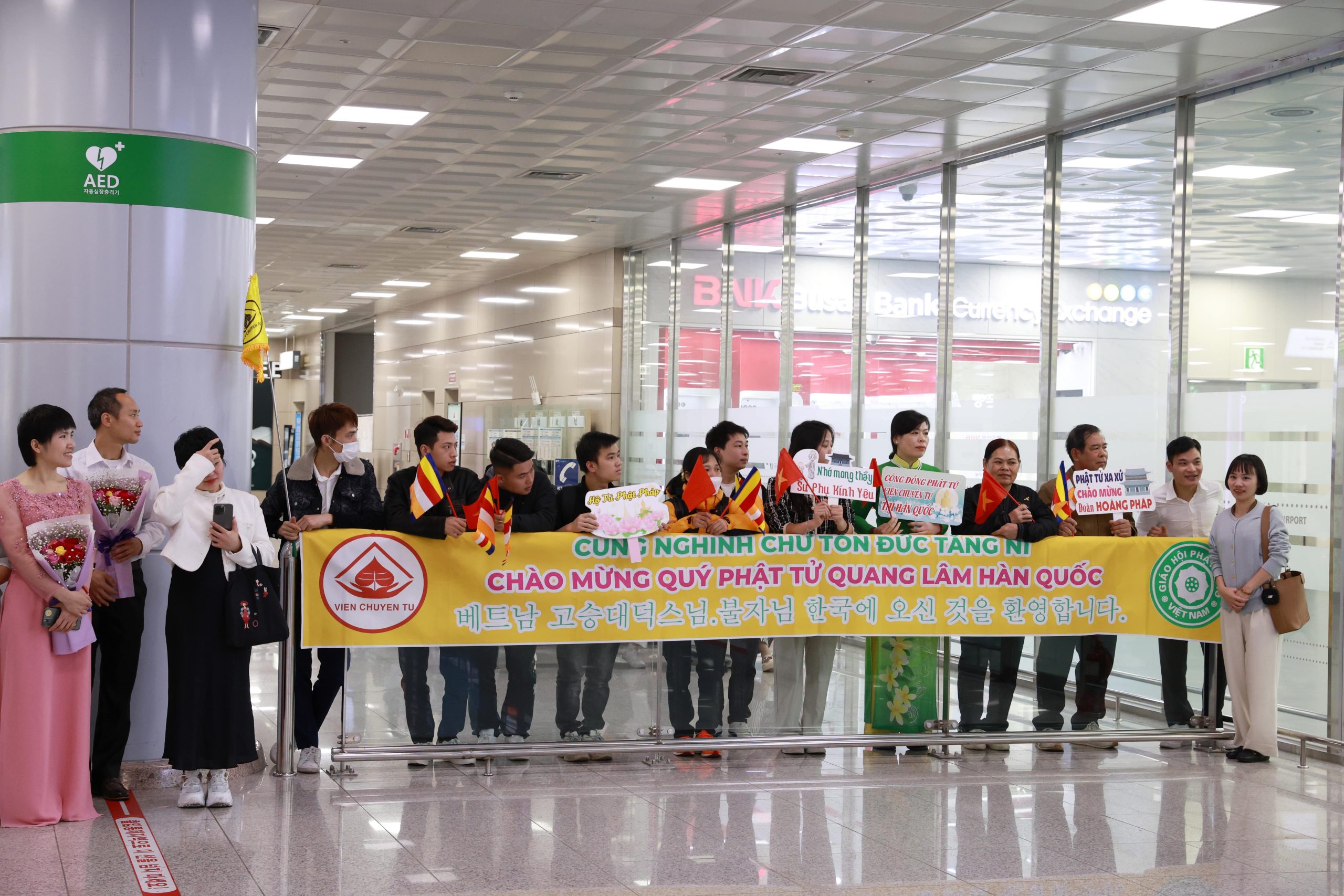Sáng ngày 11/4/2024, Cộng đồng Phật tử Viện Chuyên Tu tại Hàn Quốc đã xuất phát từ chùa Hải Tinh đến sân bay Quốc tế Kimhea, cung đón Đoàn hoằng pháp Viện Chuyên Tu từ Việt Nam quang lâm đến Hàn Quốc, chứng minh và hướng dẫn khóa tu học Phật pháp lần thứ 14, với chủ đề: “Kiến tạo bình an” dành cho các thiện nam tín nữ Phật tử và bà con người Việt đang sinh sống và làm việc tại Hàn Quốc.