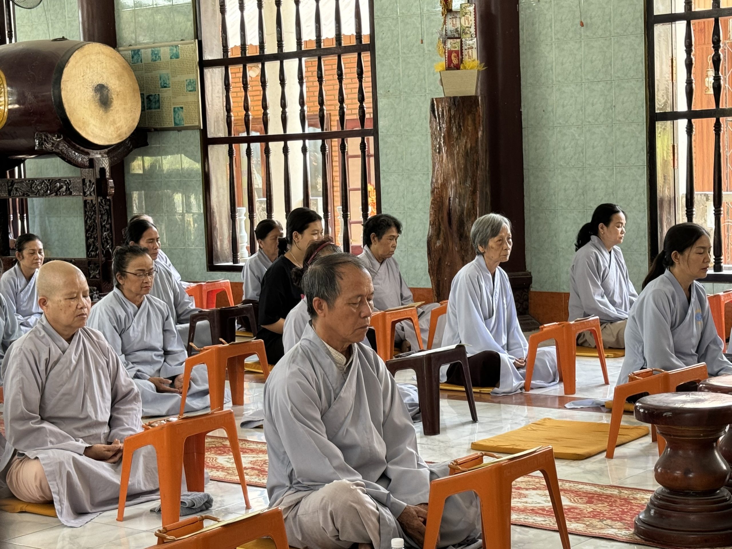 Sau giờ chỉ tịnh, lúc 13 giờ 30 đại chúng được hướng dẫn ngồi tĩnh tọa niệm Phật 30 phút, và tiếp tục trì niệm hồng danh Đức Phật A Di Đà.