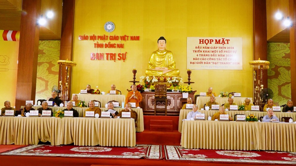 Sáng ngày 11/03/2024, nhằm ngày 02 tháng 02 năm Giáp Thìn, tại chùa Tỉnh Hội – Trụ sở Ban Trị sự GHPGVN tỉnh Đồng Nai, Tp.Biên Hòa đã diễn ra buổi họp mặt đầu năm Giáp Thìn, triển khai Phật sự 6 tháng đầu năm và báo cáo công tác chuẩn bị cho việc tổ chức đại giới đàn Đạt Thanh 2024.