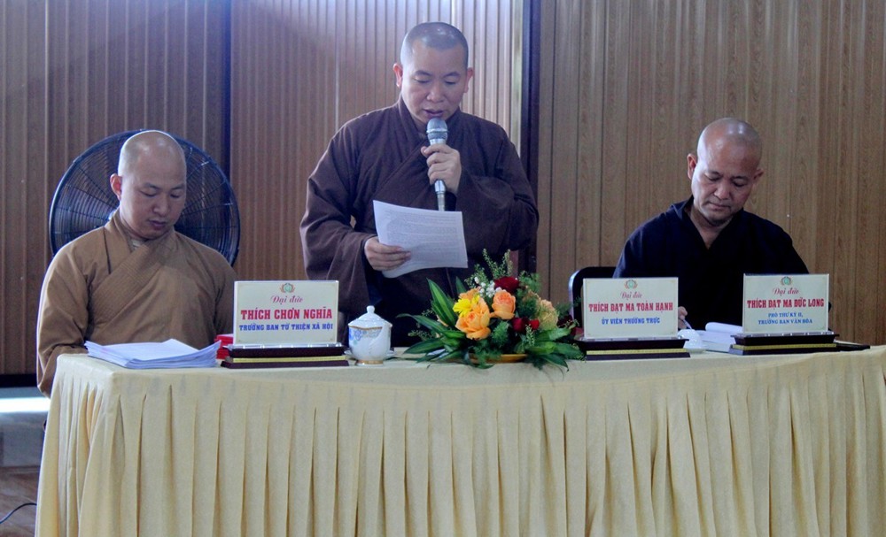 ĐĐ Thích Thiện Trí – Chánh Văn phòng báo cáo sơ lược về công tác Đại Giới đàn Đạt Thanh. Ban Trị sự đã tiếp nhận 700 bộ hồ sơ, đã gửi thiệp cung thỉnh hội đồng thập sư. Để góp phần cho Đại Giới đàn thành tựu, Thiền viện Thường Chiếu, chùa Thiên Chơn và các mạnh thường quân phát tâm cúng dường tịnh vật 1.500 phần.