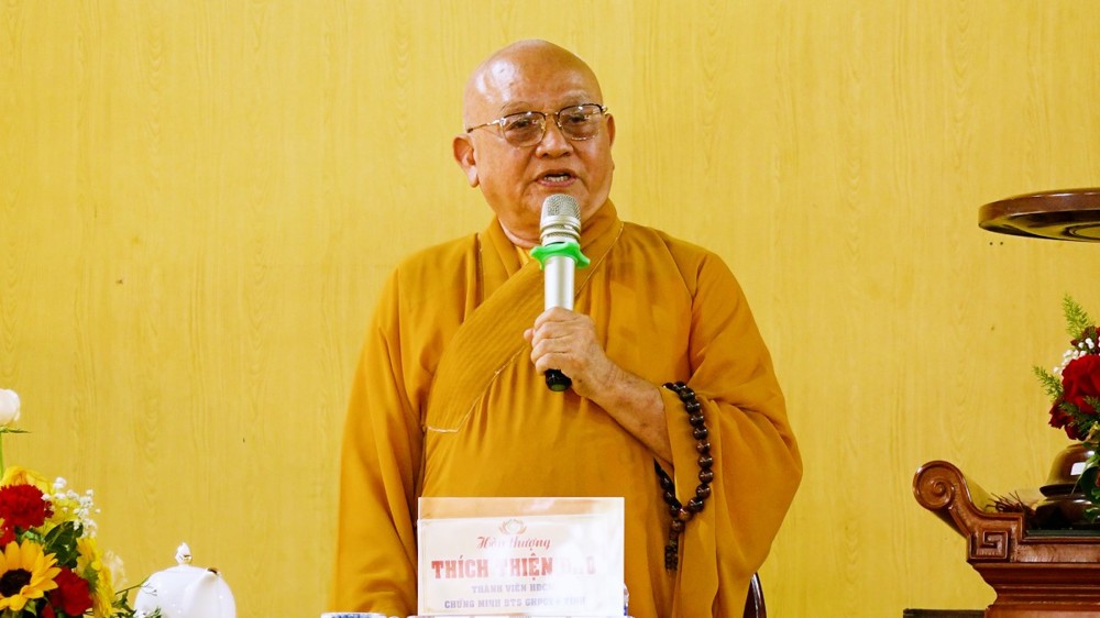 ĐĐ. Thích Thiện Trí báo cáo về công tác Đại Giới đàn Đạt Thanh