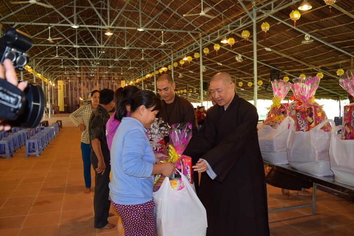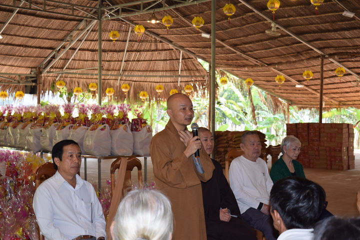 ĐĐ. Thích Minh Hạnh phát biểu tán thán tri ân và chia sẻ đến BTC cùng Thượng tọa trụ trì Viện Chuyên Tu và các cấp chính quyền tham dự. Ông Đinh Văn Bất đại diện các cấp chính quyền có lời cảm tạ BTC cùng Chư Tôn đức đã tạo điều kiện tốt cho bà con có điều kiện đón xuân Bính Thân. Cô Huỳnh Thị Hằng đại diện bà con có lời tri ân đến Chư Tôn đức, BTC cùng các cấp chính quyền đã giúp đở chia sẻ cho bà con quà để phần nào giúp bà con đón xuân đầy ý nghĩa. Sau cùng TT. Thích Thiện Thuận đại diện chùa tri ân các cấp chính quyền cùng ĐĐ. Thích Minh Hạnh đã tạo điều kiện để BTC gửi quà đến bà con. Thượng tọa chia sẻ cùng bà con: “chúng ta có thể không có tiền nhưng không thể thiếu tình thương, tình thương là chất liệu ngọt ngào giúp ta quên đi những mặc cảm của dòng đời bất hạnh”. Thượng tọa mong rằng bà con sống hạnh phúc an lành và đón mùa xuân đầy an vui trong sự cảm thông và chia sẻ.
