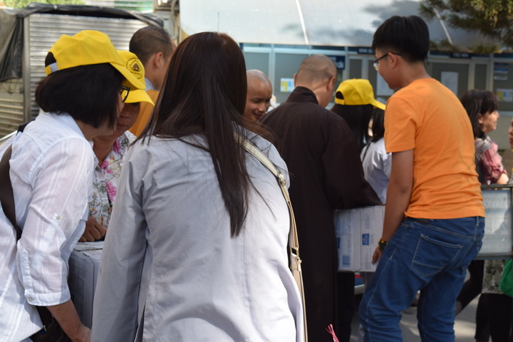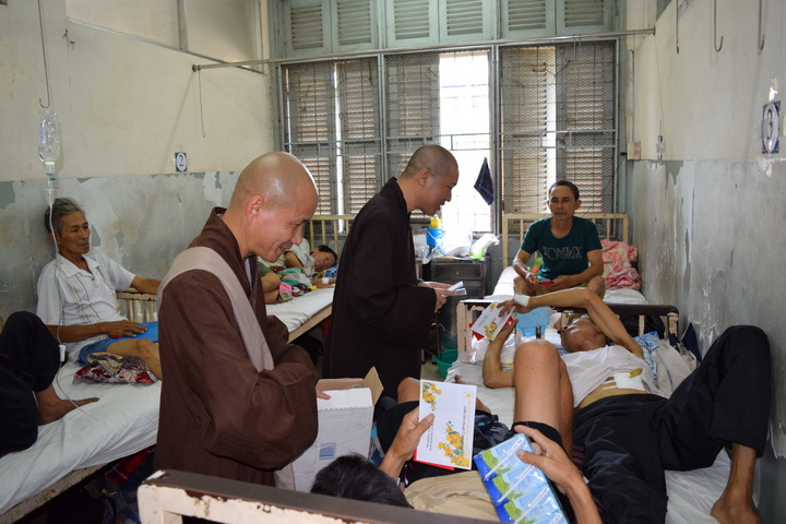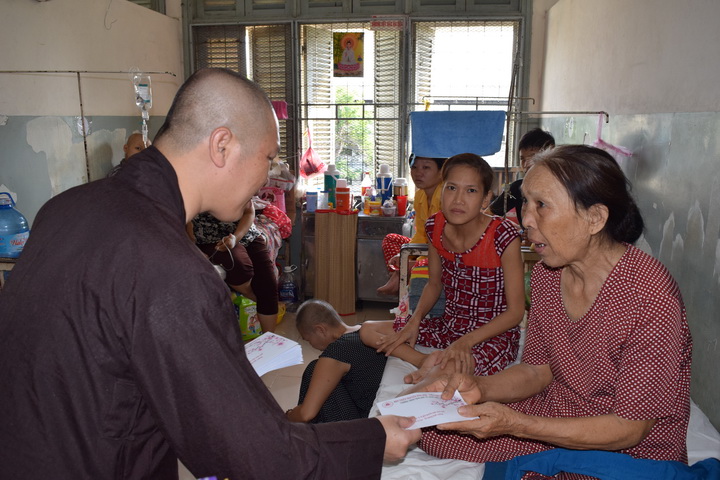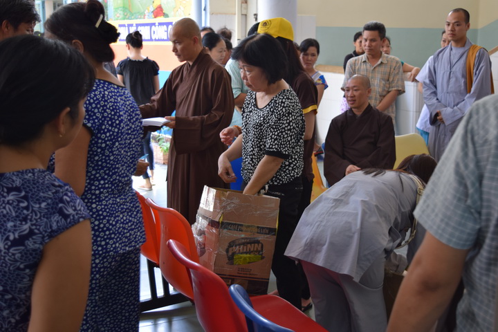 Lúc 15 giờ 00, Ban Thiện nguyện đã gửi đến các bệnh nhân tại Bệnh Viện Ung Bứu Tp. HCM hơn 200 phần quà gồm tiền và sữa, mỗi phần trị giá 350.000VND.