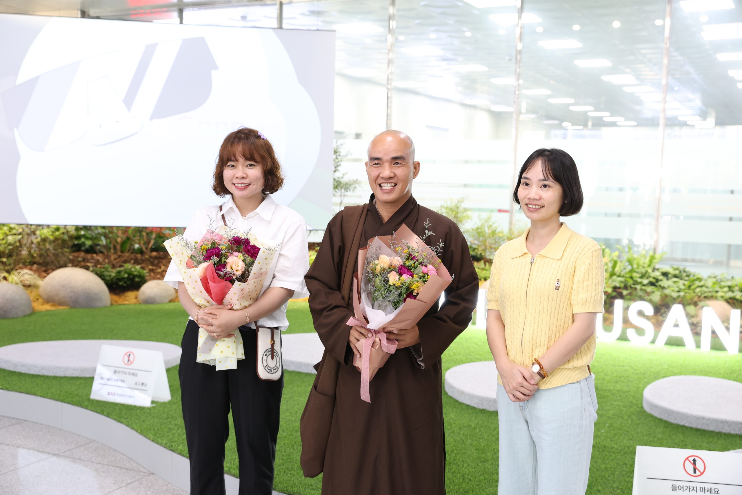 Phái đoàn có sự hiện diện của TT. Thích Thiện Thuận – Trụ trì Viện Chuyên Tu – Chứng minh Đạo tràng tại Hàn Quốc ; ĐĐ. Thích Thiện Hưng – Tổng Điều phối Đạo tràng tại Hàn Quốc – Trụ trì chùa Tam Bảo; ĐĐ. Thích Thiện Quán – Trụ trì Tu viện Lăng Nghiêm; ĐĐ. Thích Thiện Long – Trú xứ chùa Bình Quang; Ni sư Thích nữ Diệu Lành – Trụ trì chùa Bửu Lâm.