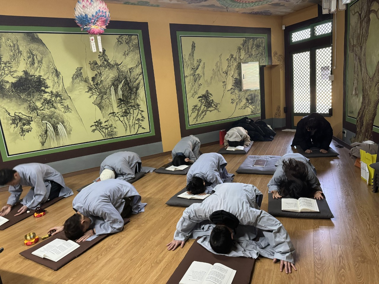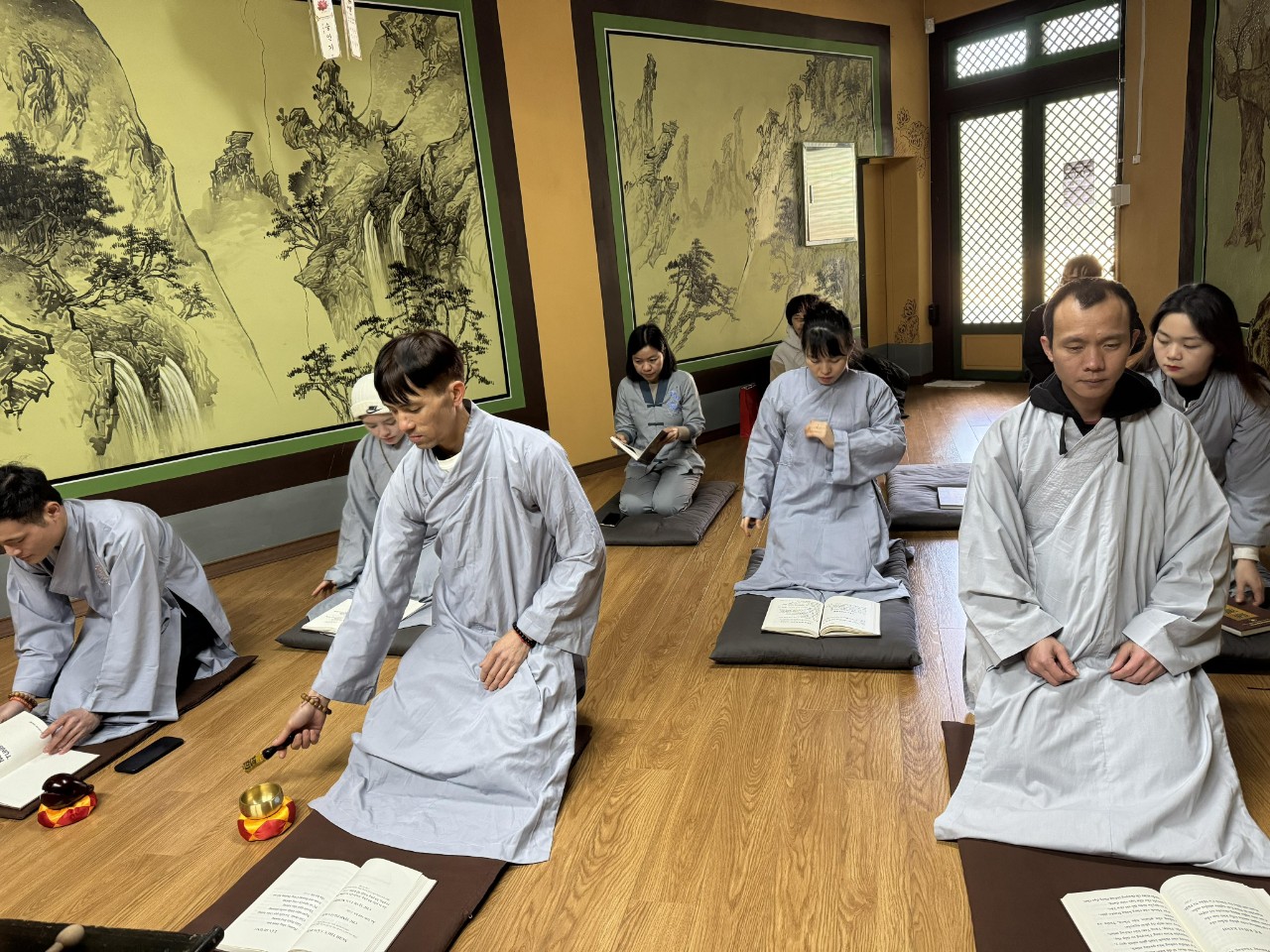 Ngày 14/01/2024 Giáp Thìn, tại chùa Cửu Long Tự Địa chỉ : Chùa 덕천동440 Cộng đồng Phật tử Viện Chuyên Tu-khu vực Busan đã tổ chức “KHOÁ TU MỘT NGÀY AN LẠC”. Sau một tuần vất vả mưu sinh trôi qua, anh chị em Phật tử chúng con lại được tề tựu về dưới mái chùa thân thương trong không khí se lạnh của ngày đông đầu năm. Vào 12 giờ 00 tất cả anh chị em chúng con đã vân tập đầy đủ về chùa Cửu Long Tự, những gương mặt ửng hồng do thời tiết ngày đông. Nhưng trên khuôn mặt của mọi người ai cũng tràn gập niềm vui hân hoan và hạnh phúc vì được gặp gỡ giao lưu, tham gia khoá tu sau những ngày làm việc áp lực mệt mỏi. Tu tập không chỉ là một ngày, hai ngày mà là cả quá trình diễn ra niêm mật tinh tấn. Vẫn như thường lệ vào 13 giờ 00, đại chúng bắt đầu bằng thời khoá Sám Hối và tụng kinh Phổ Môn. Kết thúc thời khoá là những câu chuyện và những lời chia sẻ, những tiếng cười vui vẻ mà mọi người cùng kể cho nhau nghe.
