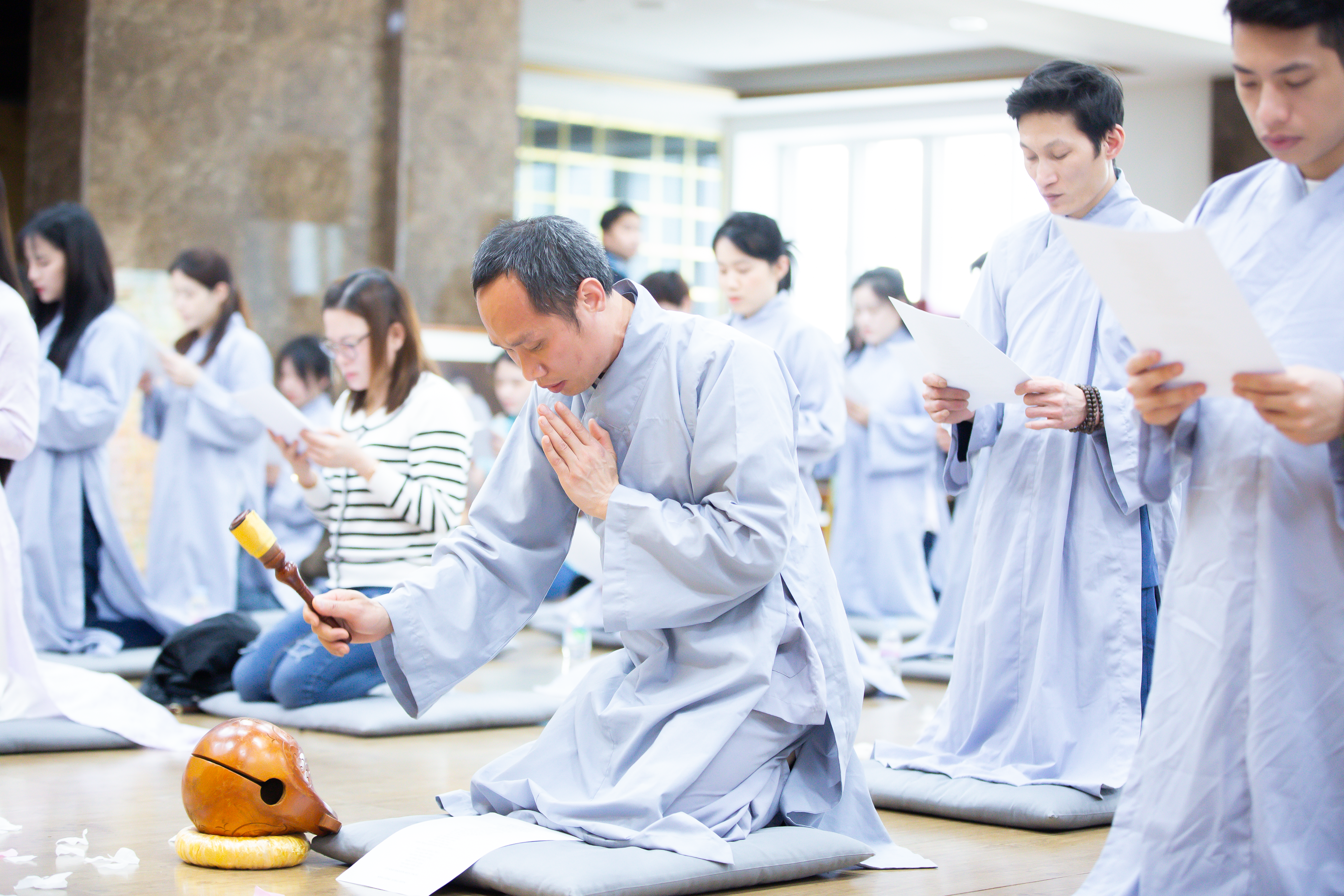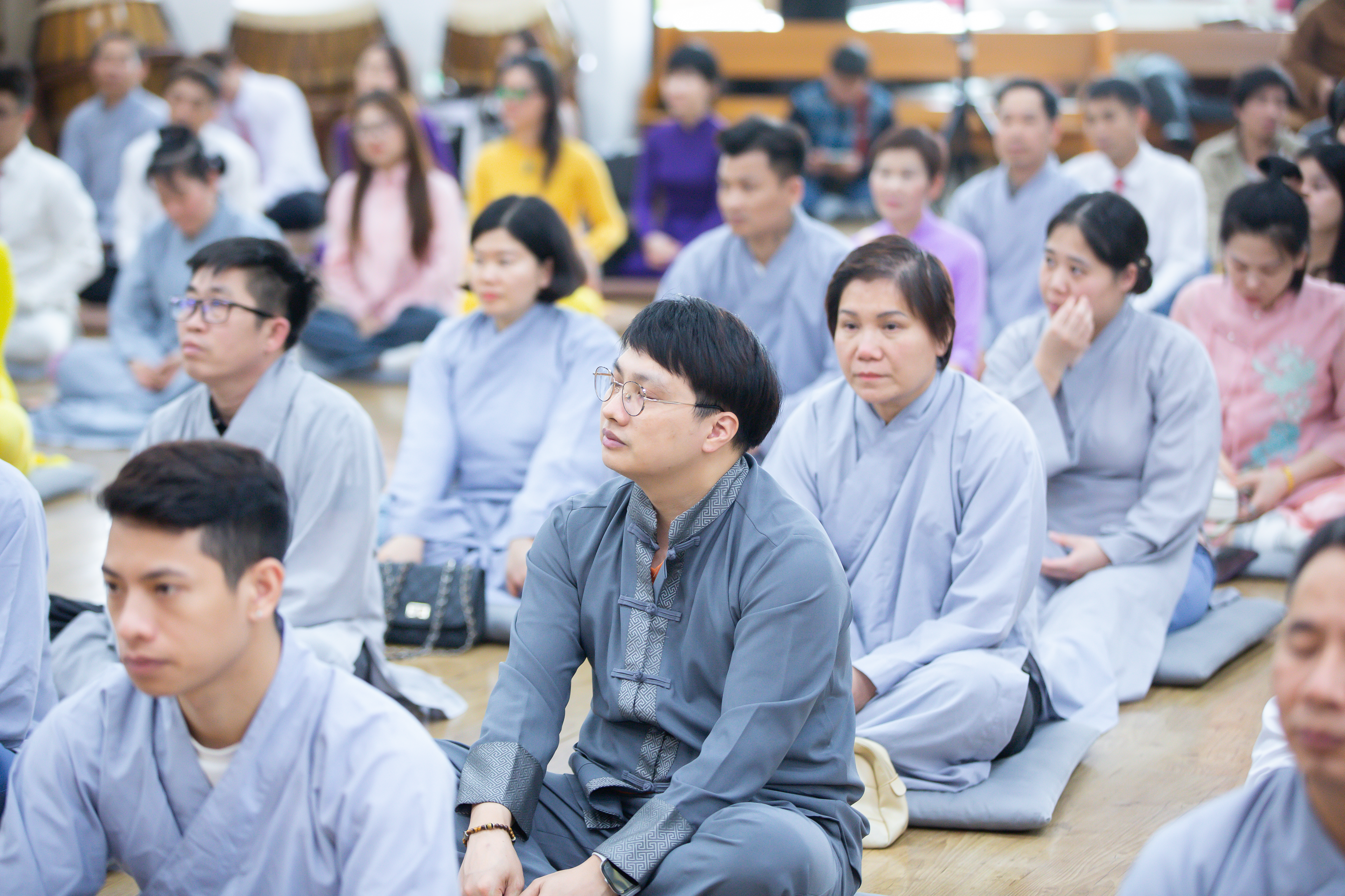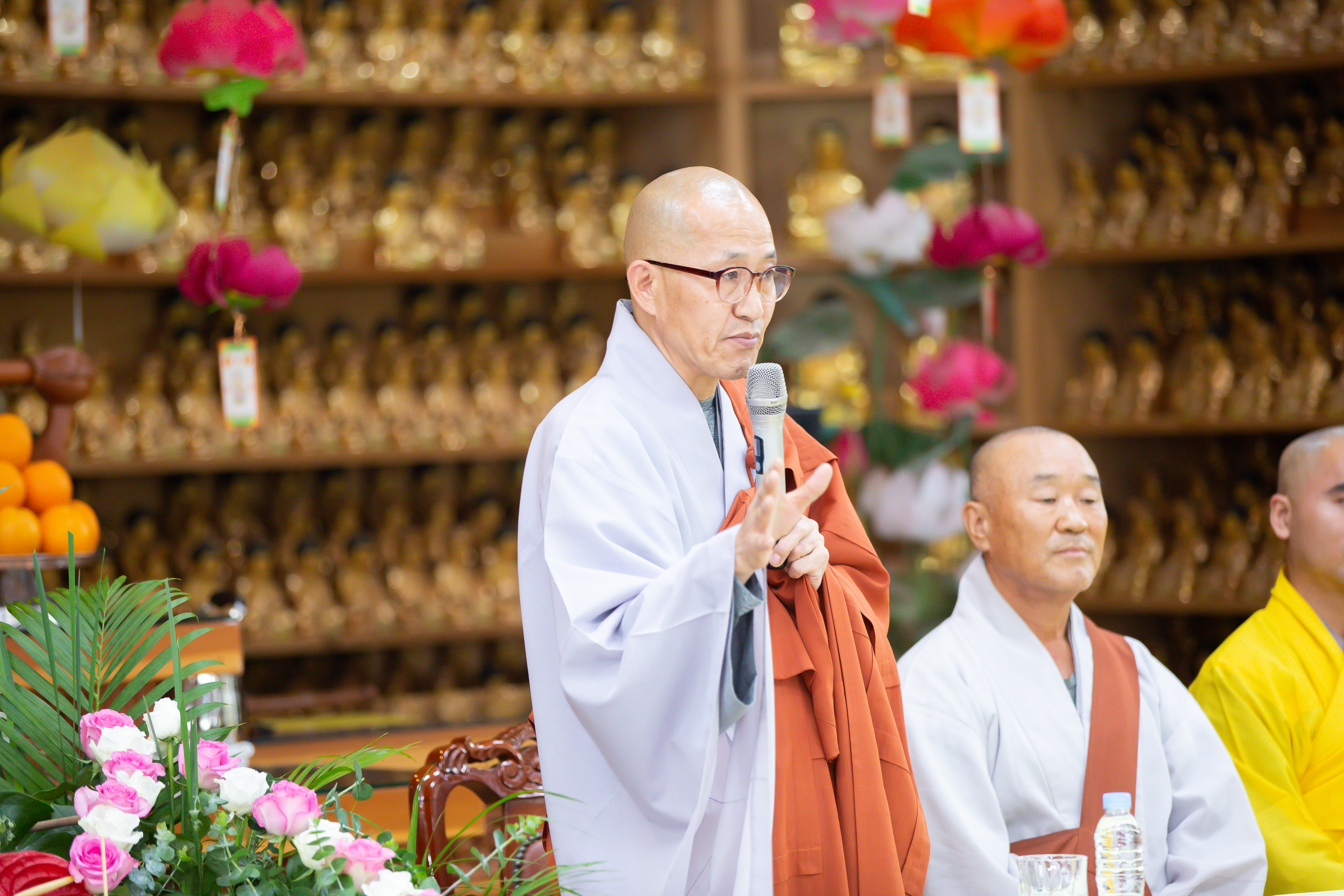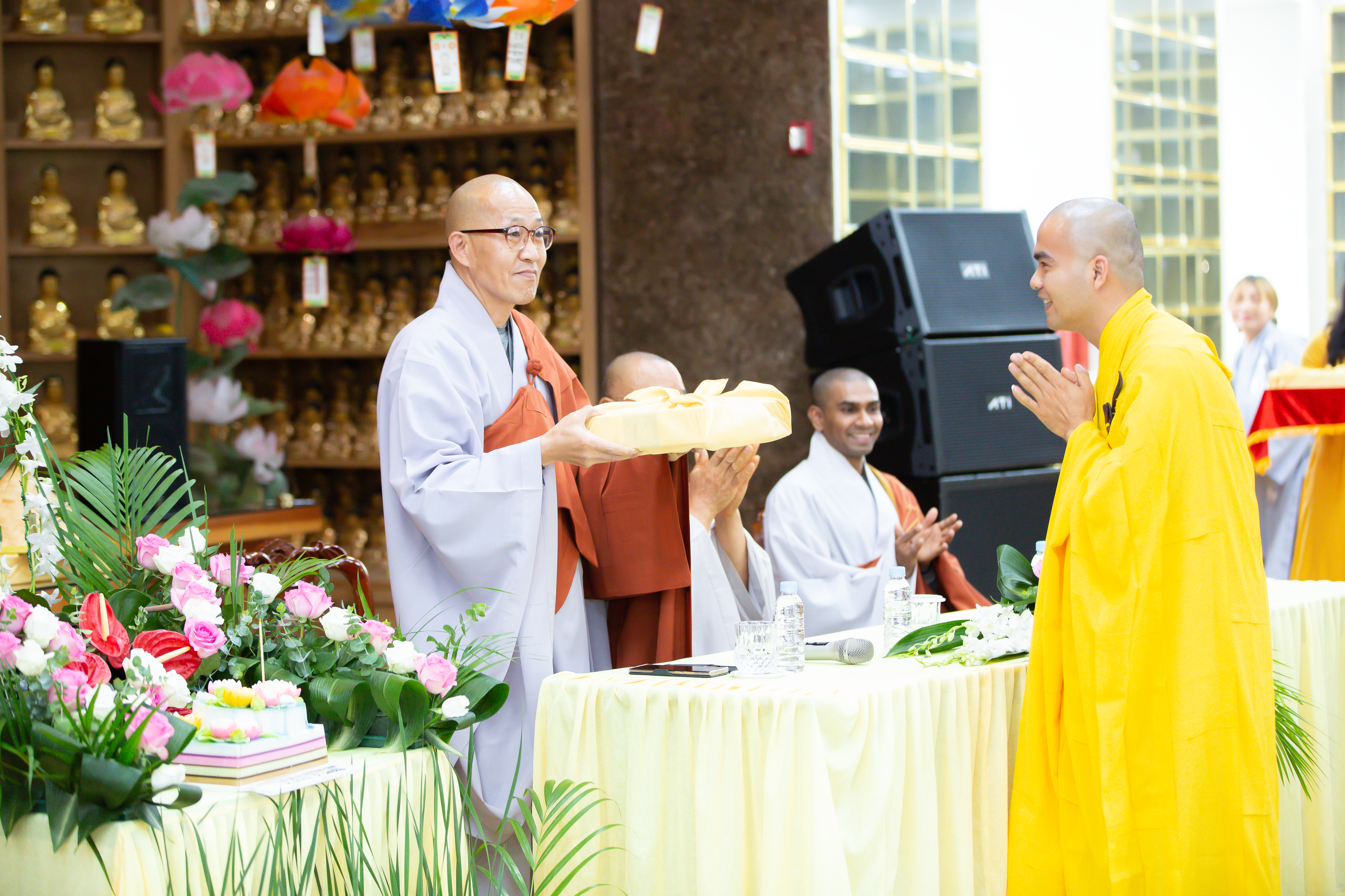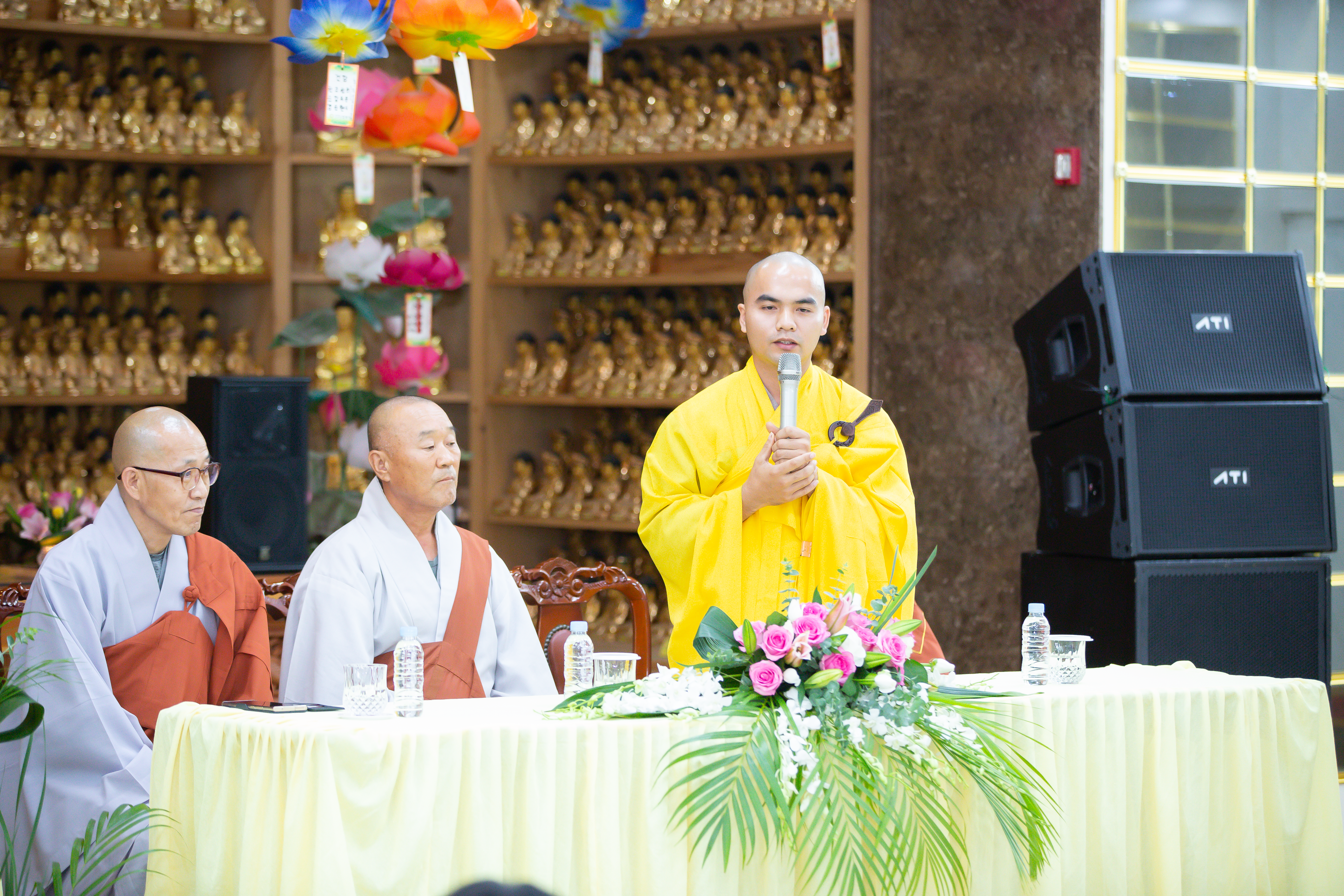 Buổi chiều vào lúc 1 giờ 30, buổi lễ bắt đầu và có sự tham gia của HT. Sil-Sang trụ trì chùa Pháp vương, HT Min Hae Trụ trì Chùa Ngoạ Long, Đại Đức Ji-Dam trú xứ Chùa Ngoạ Long cùng đông đảo bà con Phật tử người Việt đang sinh sống, học tập và làm việc tại Hàn Quốc. Trong buổi lễ, HT. đã có đôi lời động viên, khích lệ tinh thần các Phật tử và bày tỏ tình cảm trân trọng tinh thần cầu pháp của những Phật tử Việt Nam xa xứ. Hòa thượng chia sẻ: “Là người Phật tử tu tập, không đi soi xét điểm không tốt của người khác mà đi tìm điểm chung, điểm để đưa Cộng đồng tu tập cùng phát triển lẫn nhau. Tu tập giúp cho bản thân được an lạc hạnh phúc, bên cạnh đó giúp cho người xung quanh mình dù bất kể là người Hàn Quốc, người Việt Nam hay người của bất kỳ một quốc gia nào khác cũng được hạnh phúc, an vui như mình. Đó là tinh thần tự lợi, lợi tha của người con Phật.”.