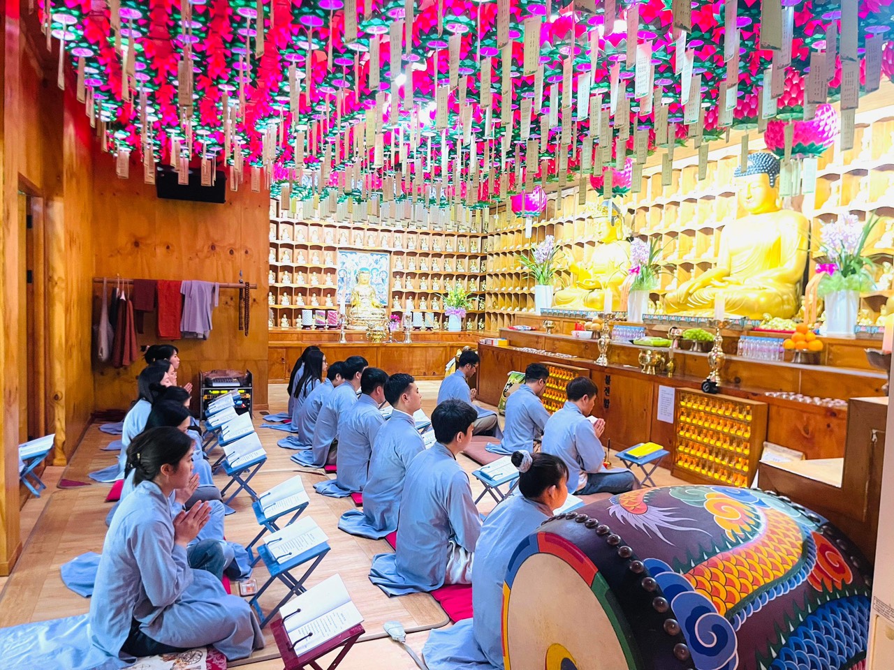 Ngày 18/02/2024 Giáp Thìn, tại chùa Đức Hưng (16-8, Dongmun-ro 53beon-gil, Yeonil-eup, Nam-gu, Pohang-si, Gyeongsangbuk-do, Republic of KoreaKorea), Cộng đồng Phật tử Viện Chuyên Tu-khu vực Pohang đã tổ chức “Khóa tu một ngày an lạc lần thứ 11 – khai kinh Dược Sư cầu an đầu năm. Trong tiết xuân, thời điểm nảy chồi của những lộc non khoe sắc. người Việt Nam có truyền thống đến chùa lễ Phật, cầu cho một năm được bình an, công việc suôn sẻ và cùng hướng về những điều thiện. Truyền thống đó đã trở thành một nét văn hóa rất đẹp của người Việt Nam.