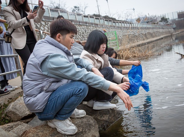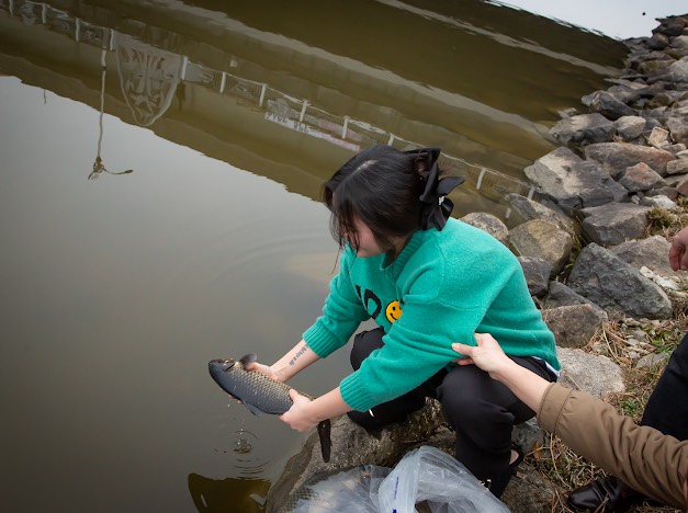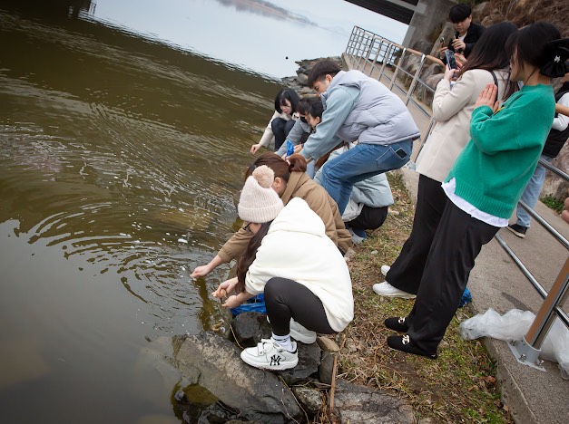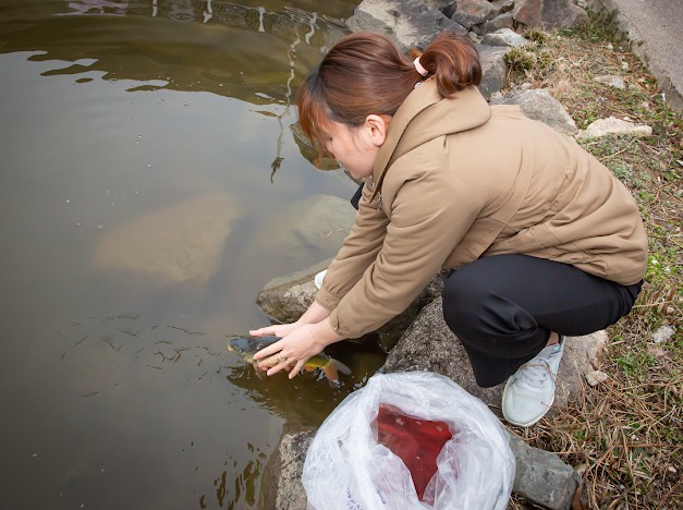 Sau buổi lễ tụng kinh anh chị em Phật tử cùng nhau thưởng thức món Kimpap Hàn Quốc, xôi Việt và cùng trò chuyện đàm đạo về tu tập. 15 giờ 00 đại chúng cùng đi mua cá và thực hiện nghi thức phóng sanh nguyện cầu cho Quốc Thái dân an, gia đình, gia đạo được vạn sự bình an, năm mới được gặp nhiều may mắn và thuận duyên trên mọi nẻo đường…