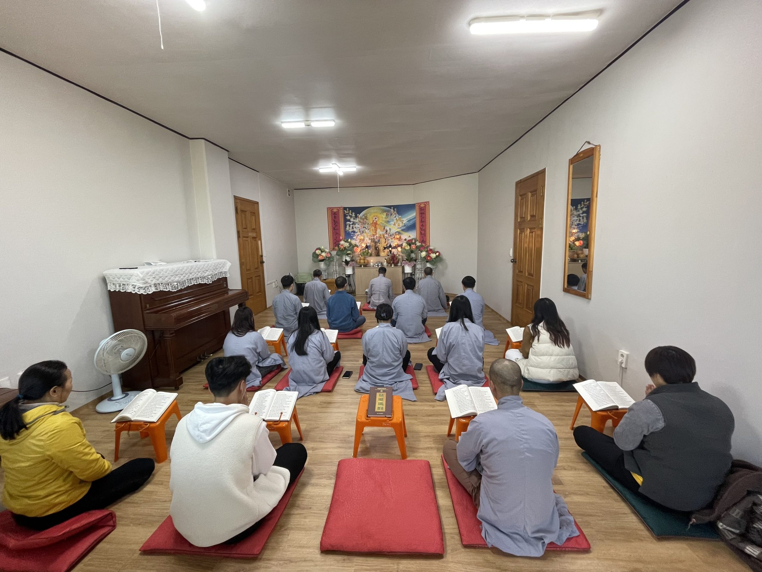 Ngày 11 và 12 tháng 11 năm 2023 Cộng đồng Phật tử Viện Chuyên Tu tại Hàn Quốc đã tổ chức khóa tu một ngày an lạc tại chùa Trang Nghiêm Tp. Gyeonsan (경산). Trong không khí giá lạnh kèm theo những cơn mưa đầu Đông tại xứ sở Kim Chi, nhưng quý Phật tử cũng vân tập về chùa tham gia khóa tu một ngày an lạc. Đúng 15 giờ ngày 11 tháng 11, quý bà con Phật tử tập trung về chánh điện cùng nhau tụng Đại bi Thập chú. Sau đó cùng nhau trà thiền, giao lưu ca nhạc Phật giáo với nhiều tiết mục đặc sắc, chia sẻ những nỗi niềm trong cuộc sống để niềm vui được lan tỏa và nỗi buồn được chia vơi.