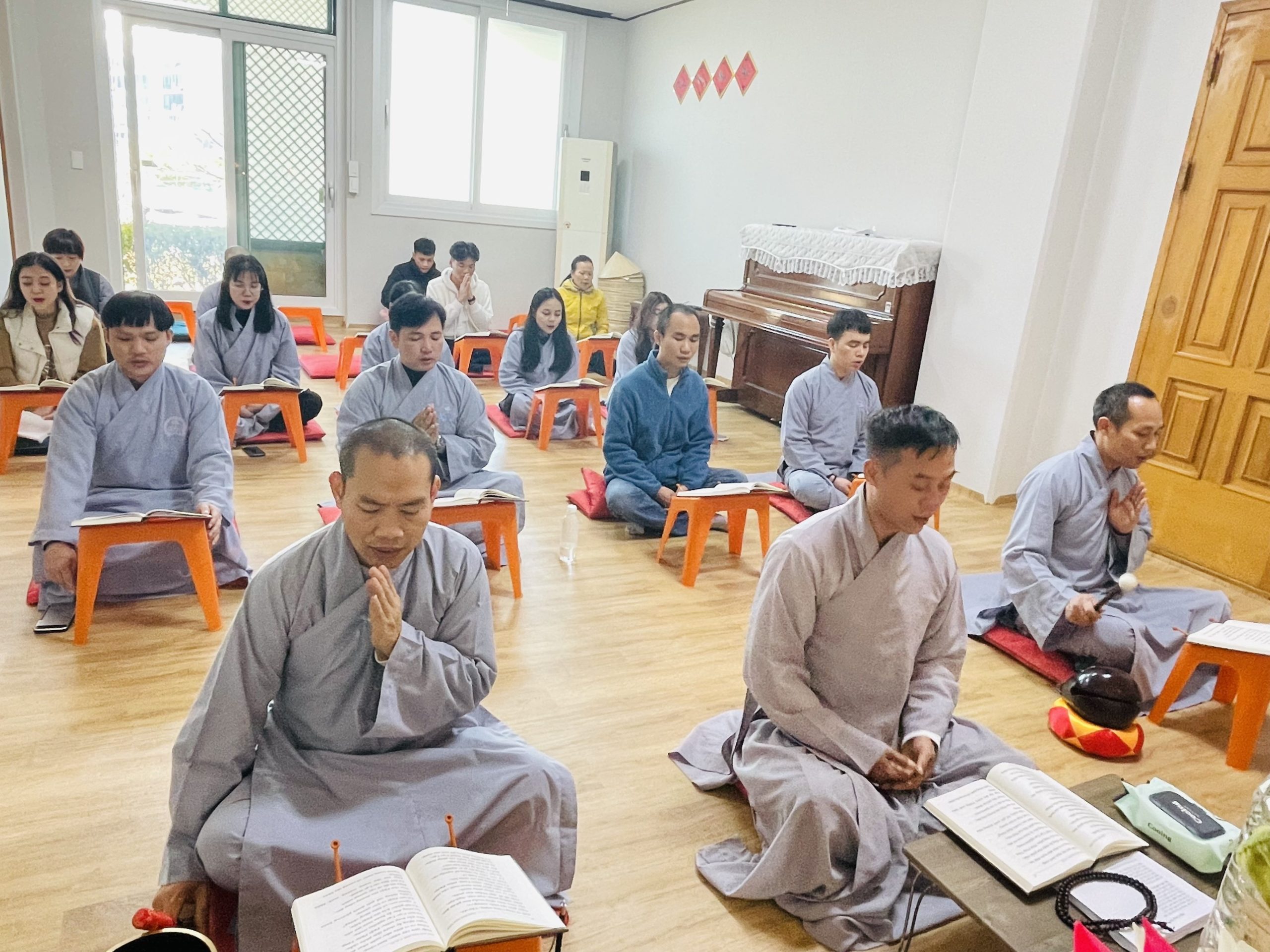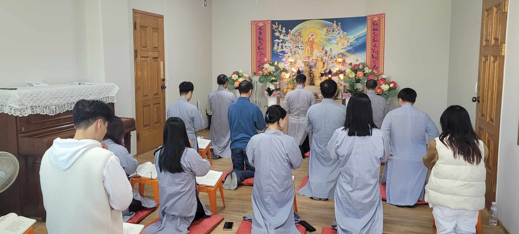 Chủ nhật ngày 12 tháng 11, đúng 5 giờ sáng, mặc dù sương sớm còn chưa tan nhưng đạo tràng đã tập trung về chánh điện tụng thời kinh Sám hối, quay về kiểm lại tâm mình, cải ác tùng thiện cho đời sống được thêm phần an lạc.