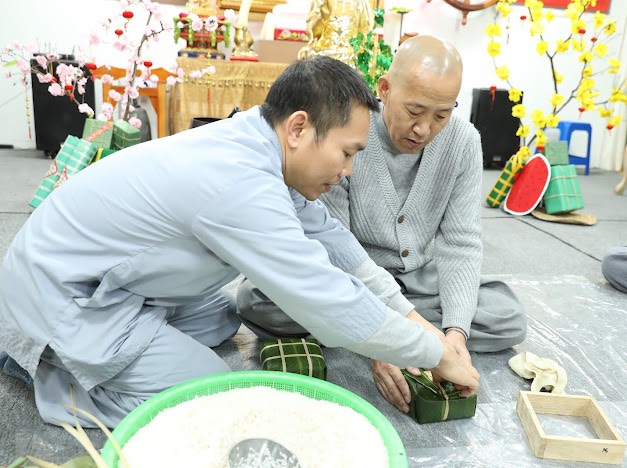 Mỗi khi tết đến xuân về, bánh chưng đã trở thành một nét văn hóa, một món ăn truyền thống và lâu đời ở Việt Nam. Với những người con xa xứ, Tết Nguyên đán luôn là dịp đặc biệt để cùng nhau hướng về quê hương, gặp gỡ, chia sẻ tình người.  Mái chùa thân thương là nơi che chở cho tâm hồn của những người con tha hương, cùng với tình yêu thương bao la của Thầy trụ trì đã dang rộng cánh tay chào đón chúng con trở về sau một năm mưu sinh làm việc vất vả. Trong niềm hân hoan, háo hức của anh chị em Phật tử chúng con khi được về  dưới mái chùa thân thương, được cùng nhau vui chơi, cười nói, cùng nhau làm công quả và làm các công việc Phật sự khác. Thật vinh dự cho chúng con lễ hội gói bánh Chưng bánh Tét có mặt của Hoà Thượng  trụ trì chùa Ngọa Long, và anh chị em Phật tử, đã tạo cho chúng con  càng gần gũi với nhau hơn nữa, mong rằng trên đường đời mưu sinh dù có vất vả như thế nào cũng luôn giữ được tình bạn đạo trong sáng và lành mạnh. Chúng con xin tri ân sự trợ duyên của Hoà Thượng trụ trì chùa Ngoạ Long, đã tạo điều kiện tốt nhất cho chúng con được về chùa tu tập, còn được nghe sự sách tấn của Hoà Thượng để chúng con lấy đó làm hành trang trên bước đường tu tập và phụng sự đạo pháp. Xin tri ân quý Phật tử gần xa đã về chùa tham gia lễ hội cùng với đại chúng. Nguyện cầu chư Phật mười phương luôn gia hộ cho quý vị và gia quyến thân tâm thường an lạc, tinh tấn trên con đường tu nhân học đạo. Kính chúc quý vị có thật nhiều thuận duyên trong cuộc sống, bình an và hạnh phúc. Hẹn gặp lại quý anh chị em vào lễ cầu an đêm giao thừa và mùng 1 mùng 2 âm lịch năm Giáp Thìn tại chùa Ngọa long